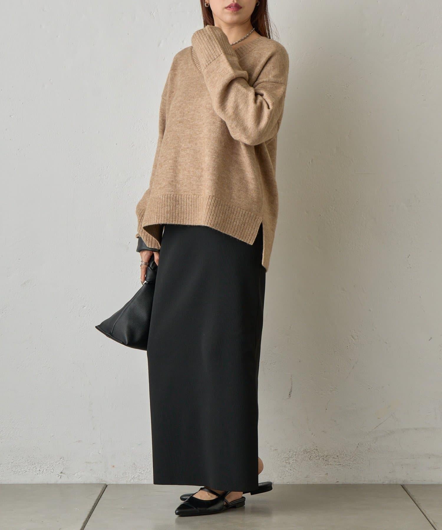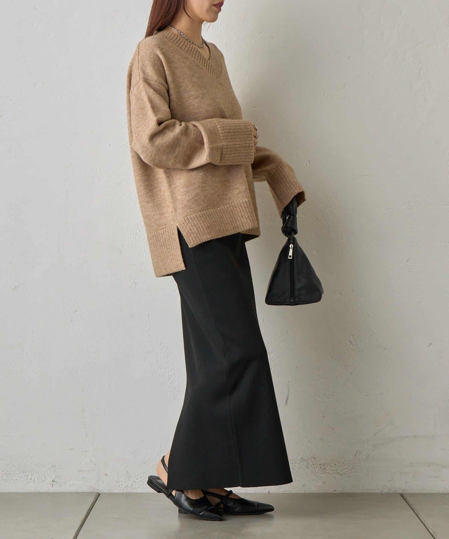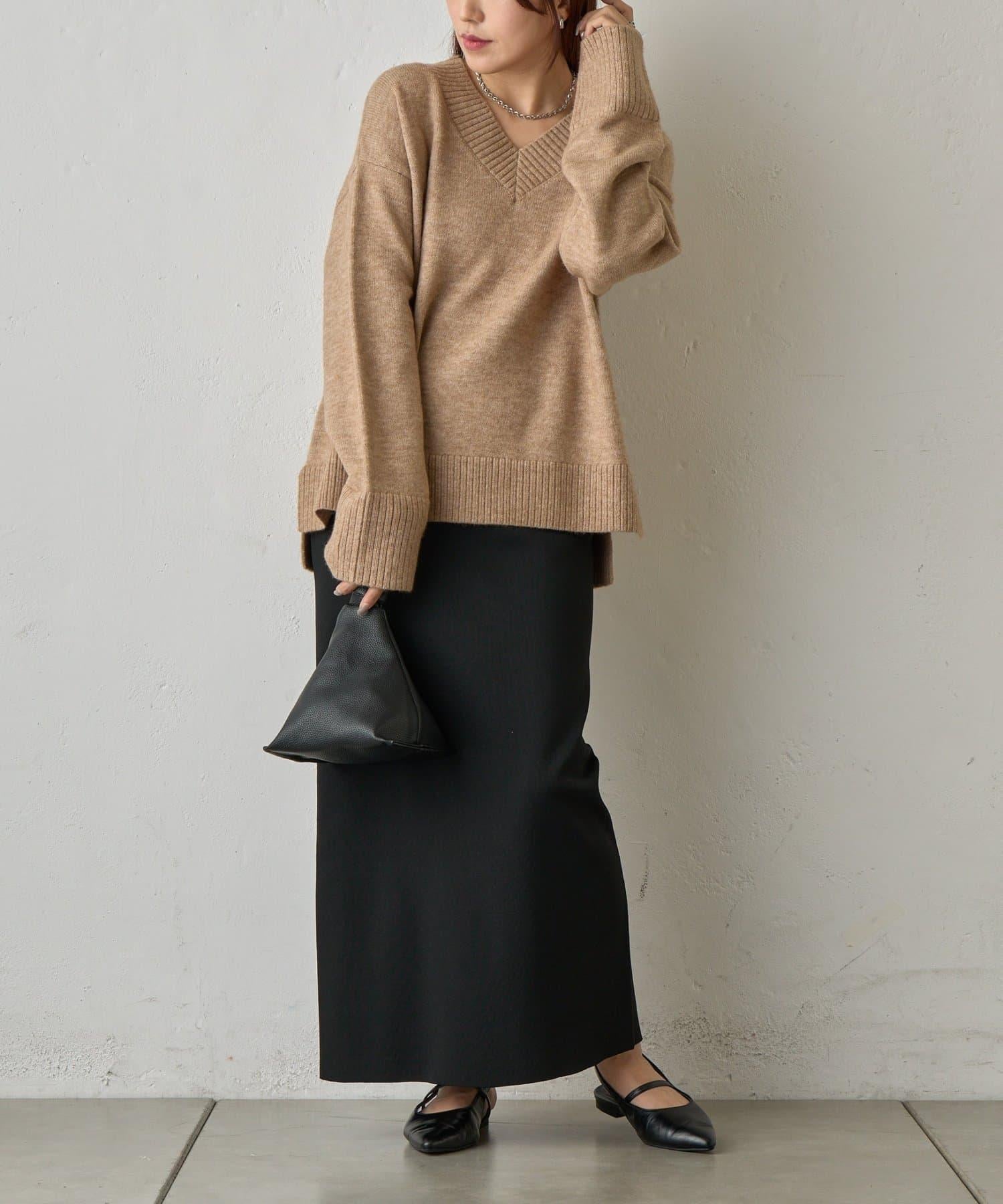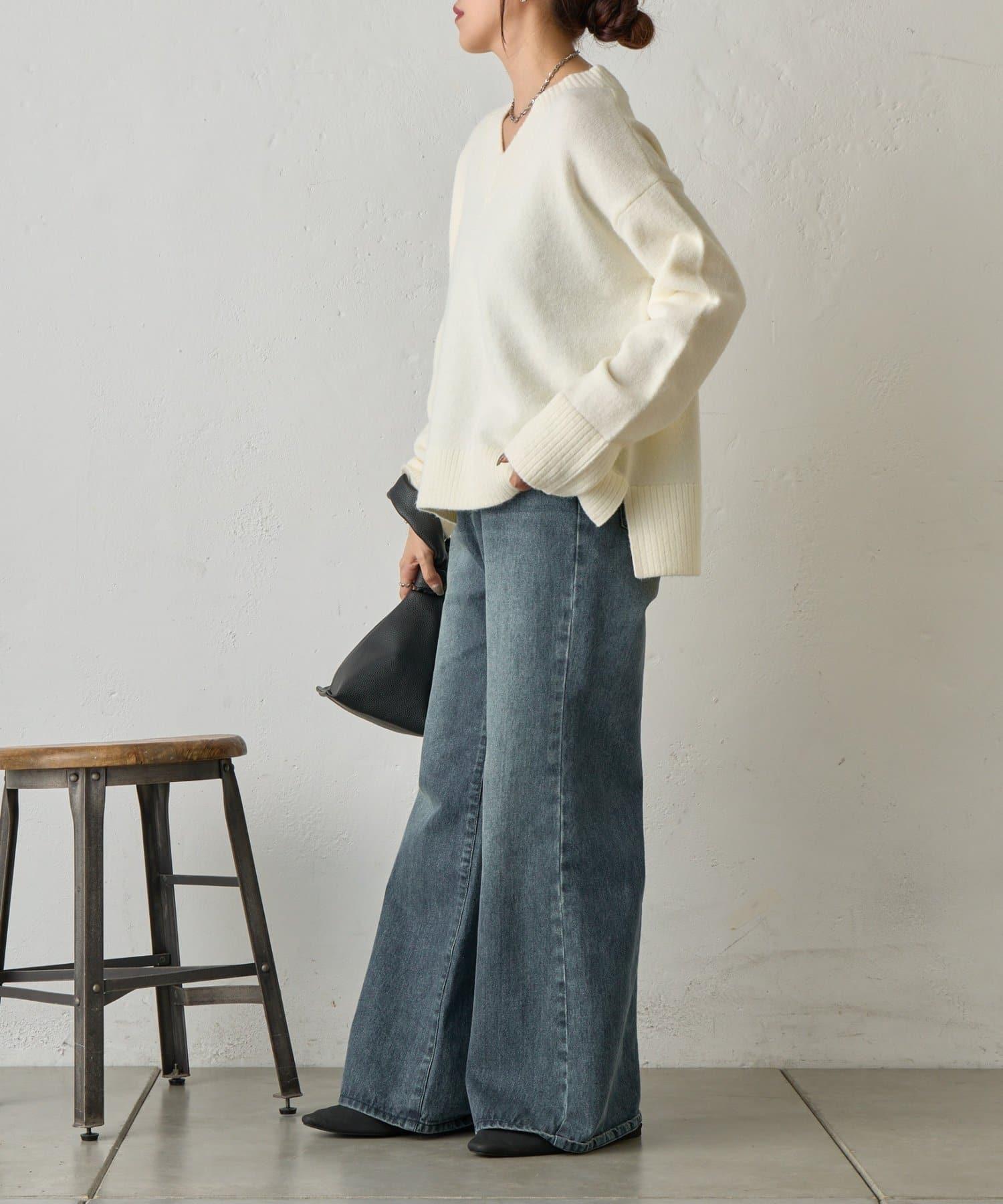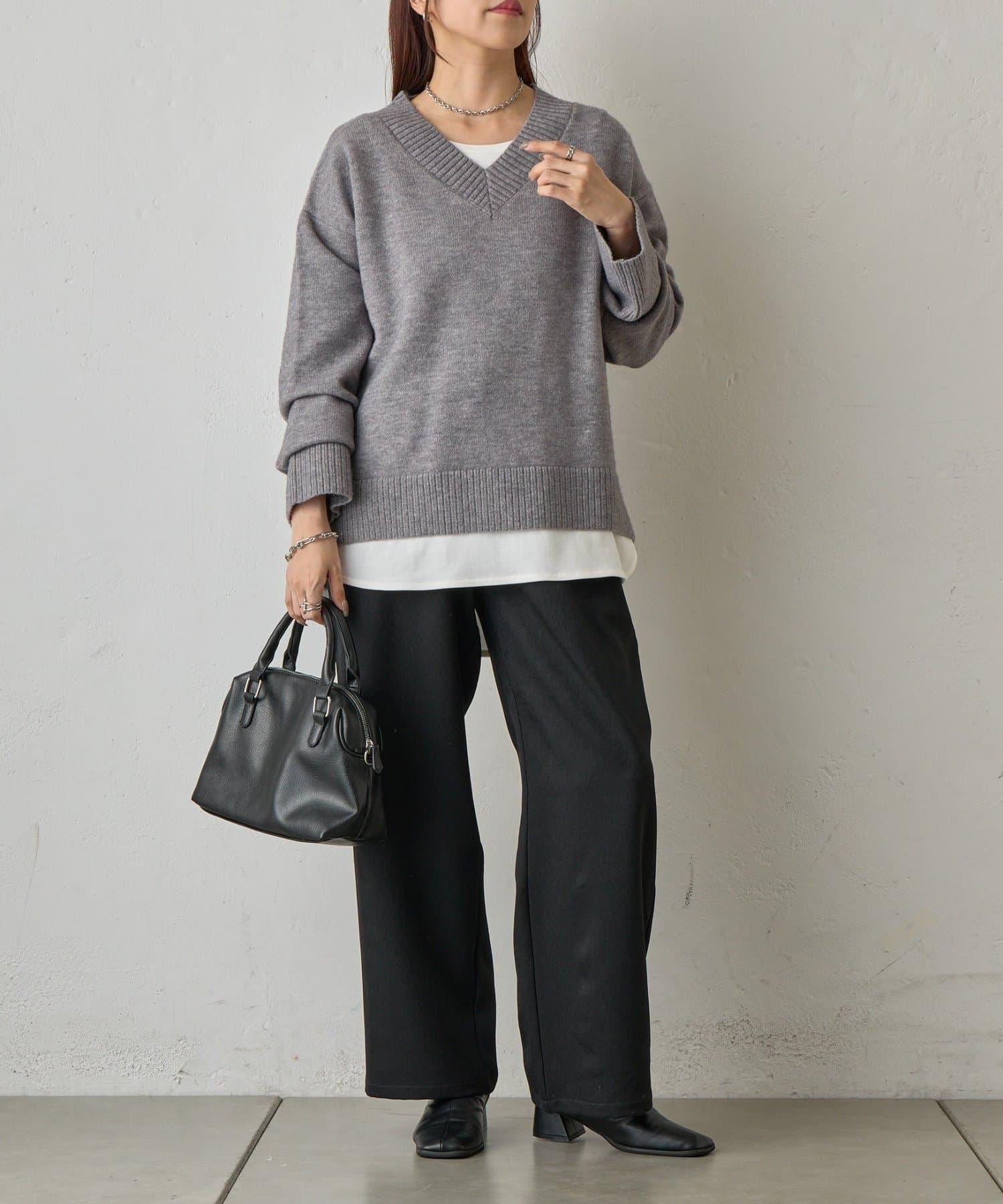 [寬鬆 V 領針織衫,蓬鬆觸感]