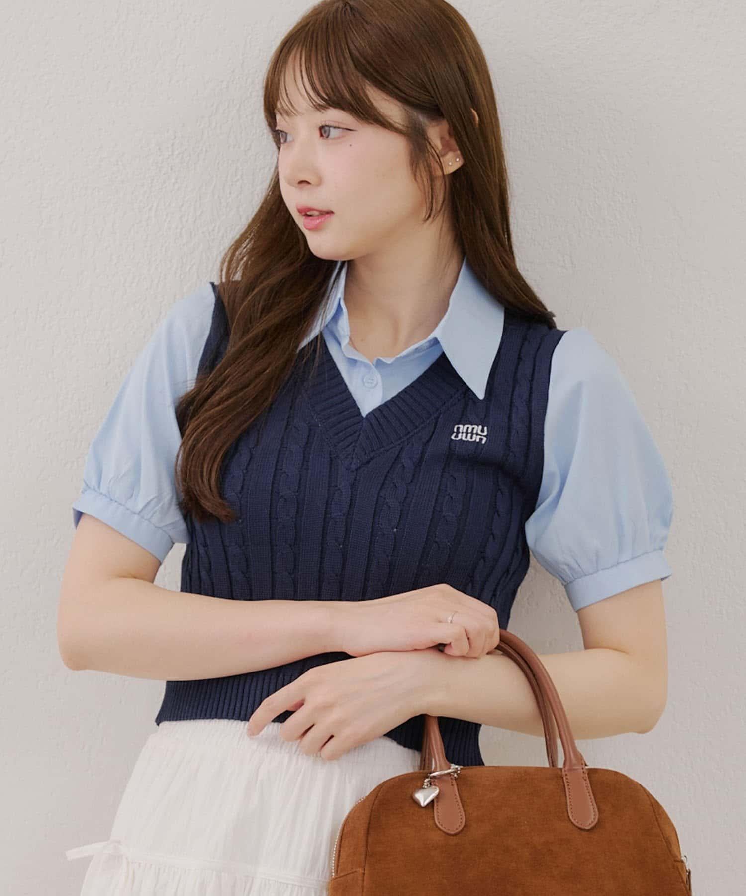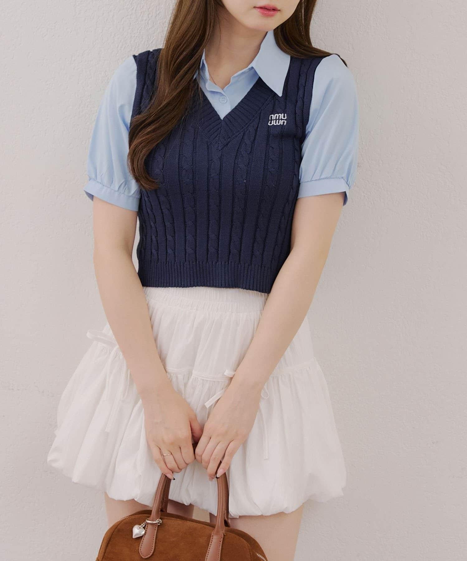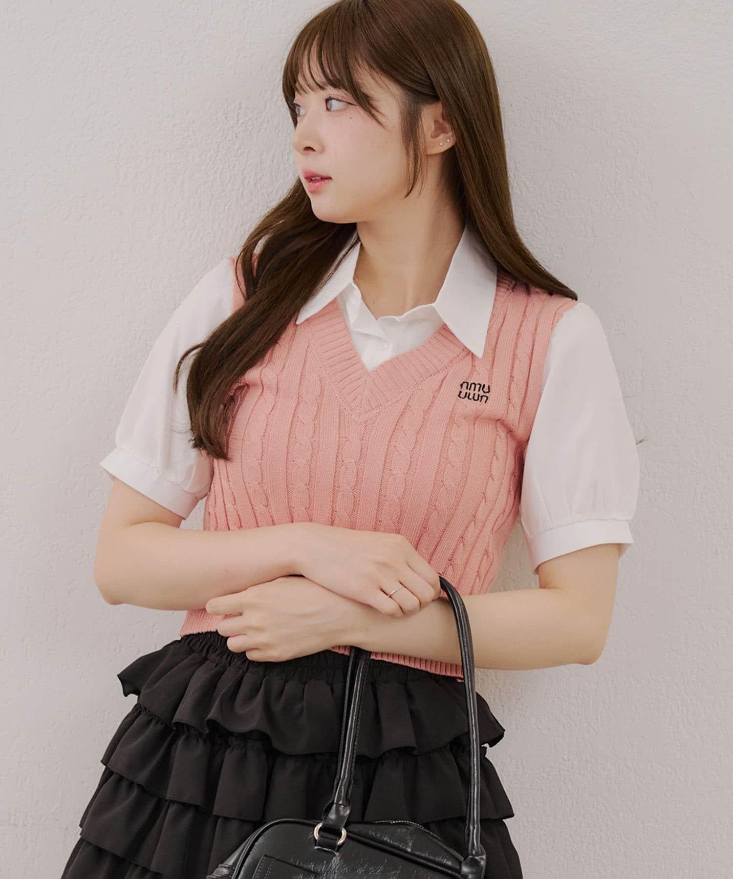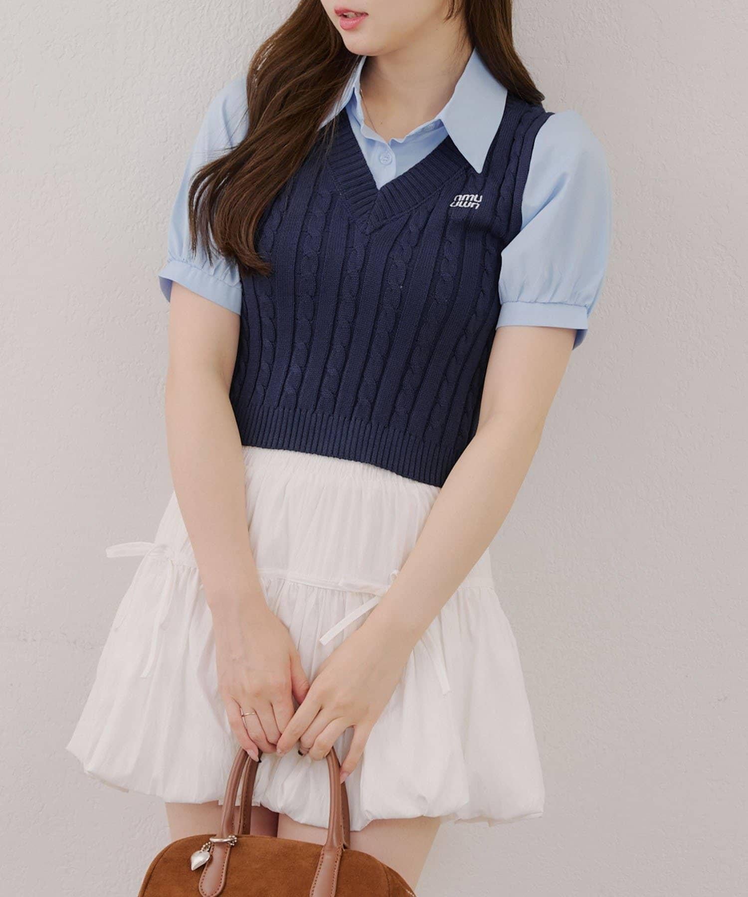 這是一件只需穿一件就能讓你展現韓國風情的對接式上衣。