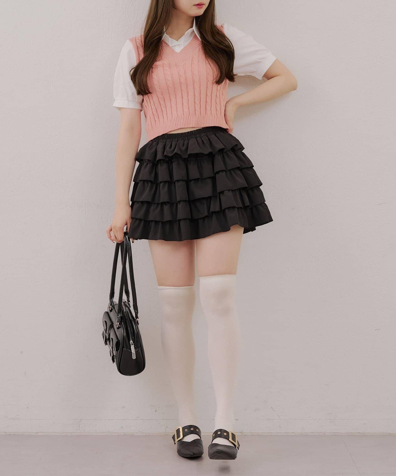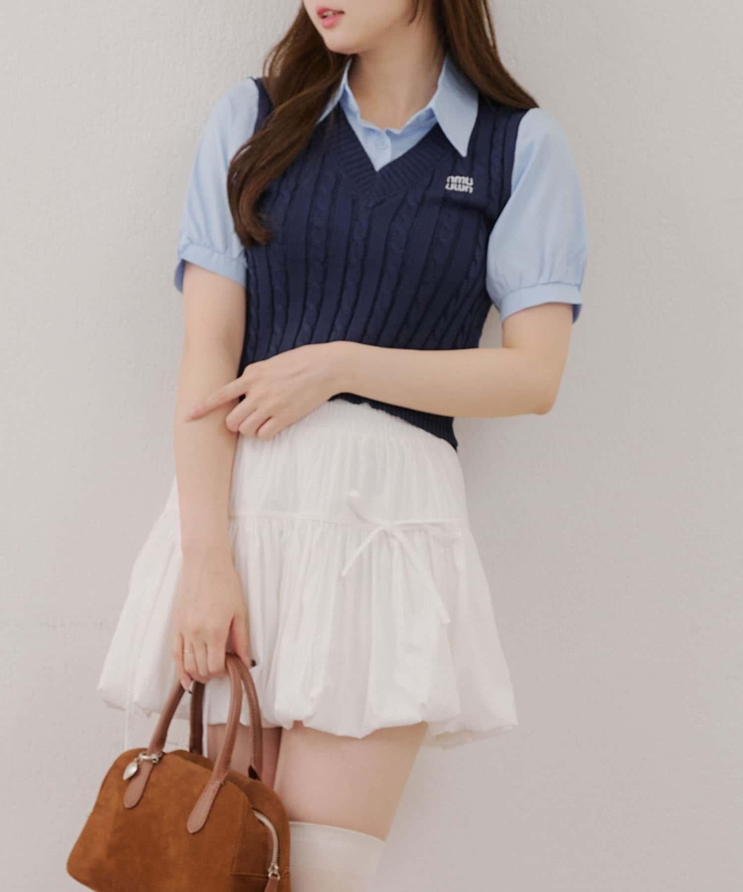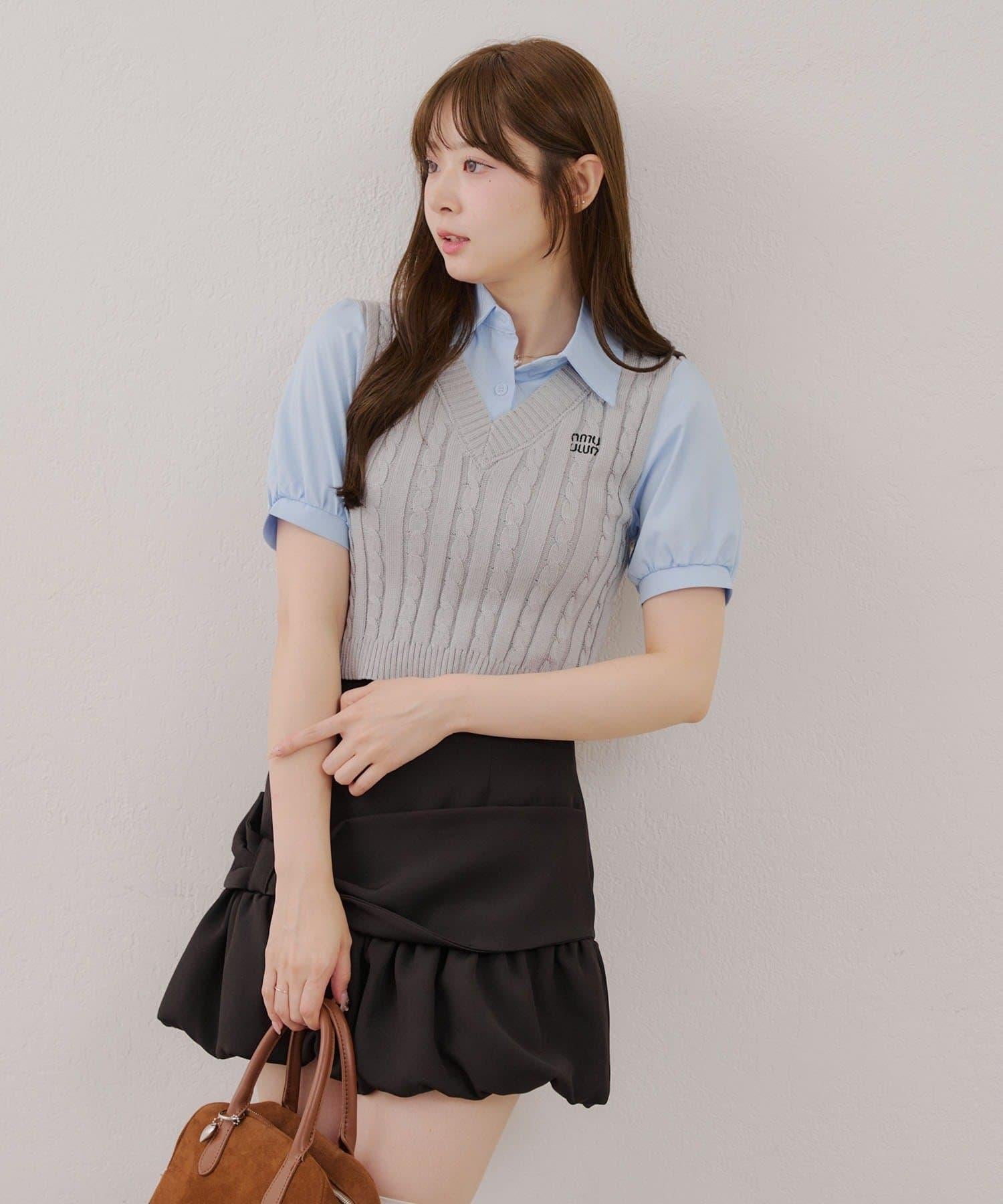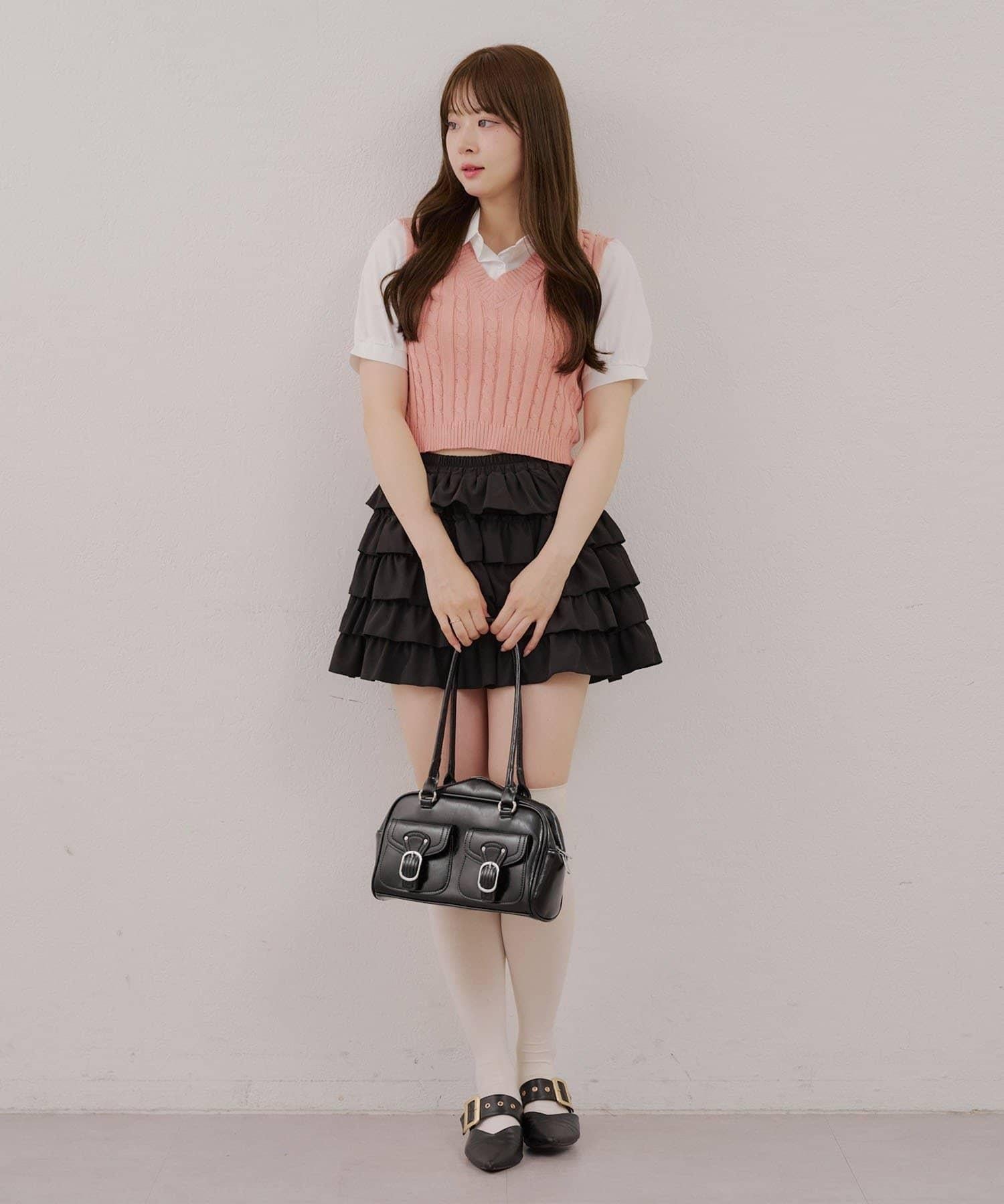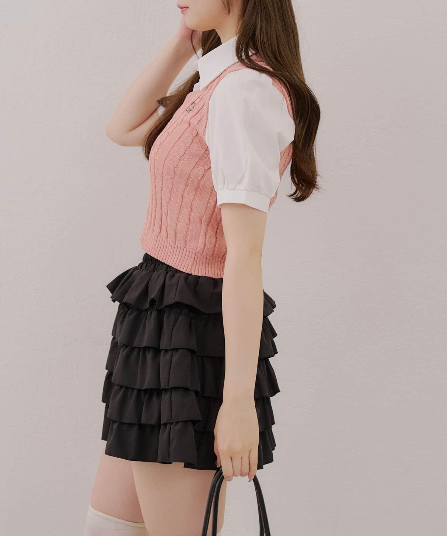 這是一件只需穿一件就能讓你展現韓國風情的對接式上衣。