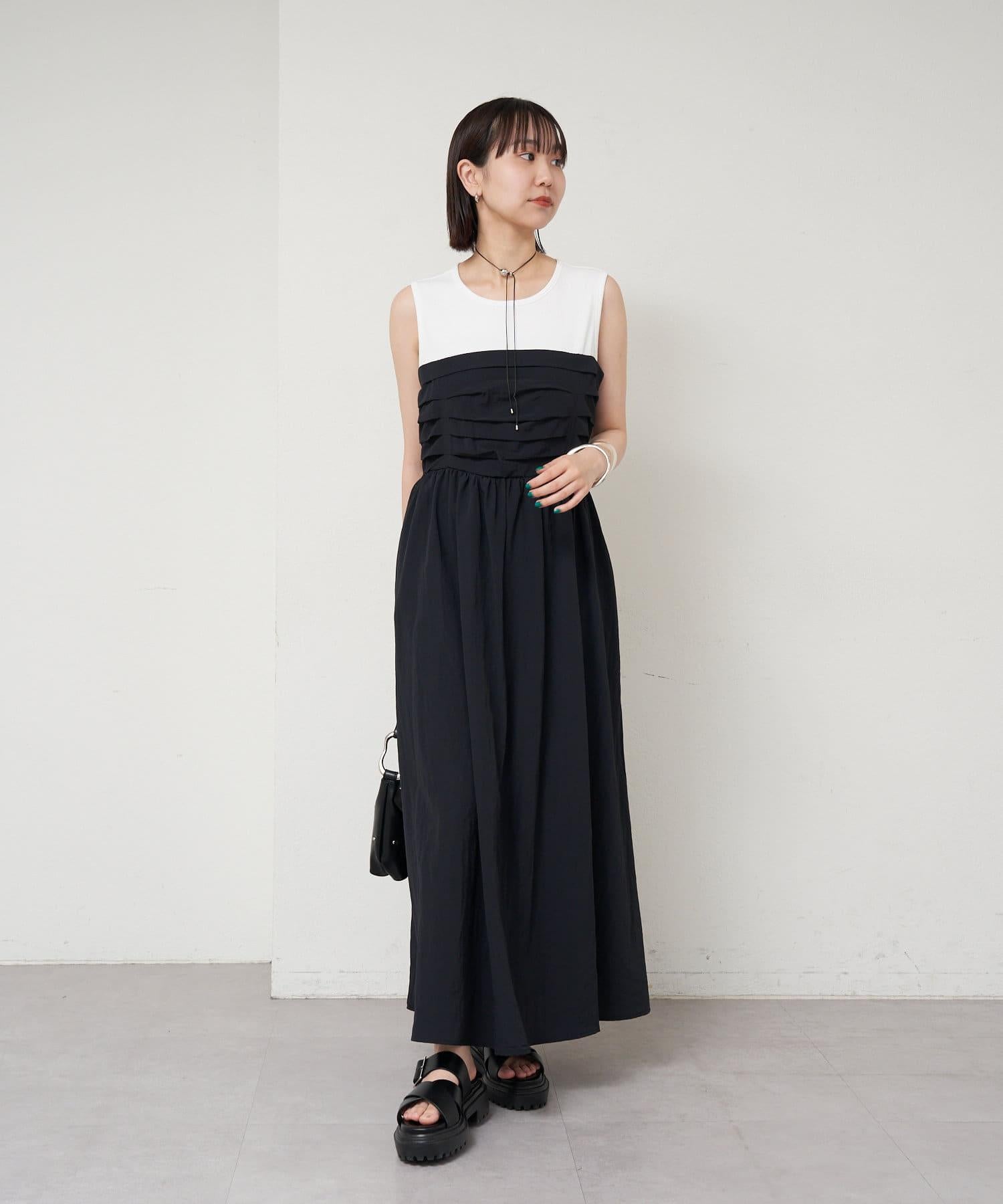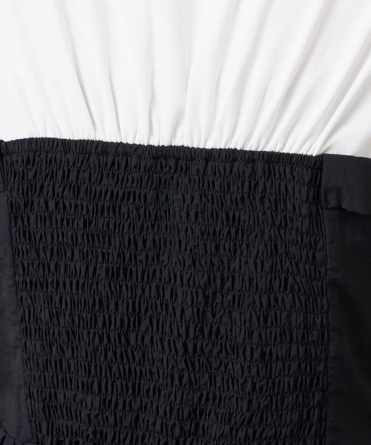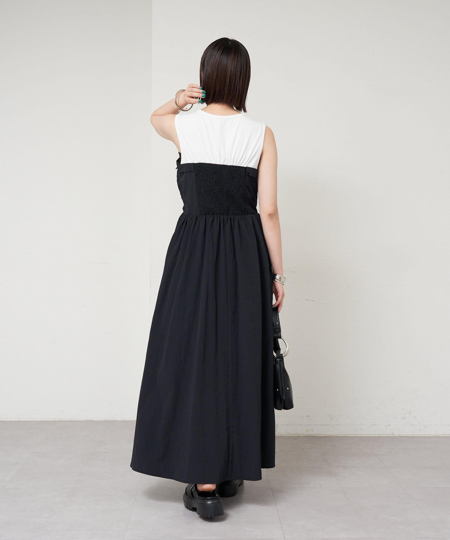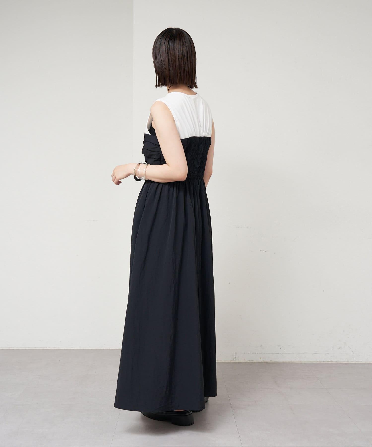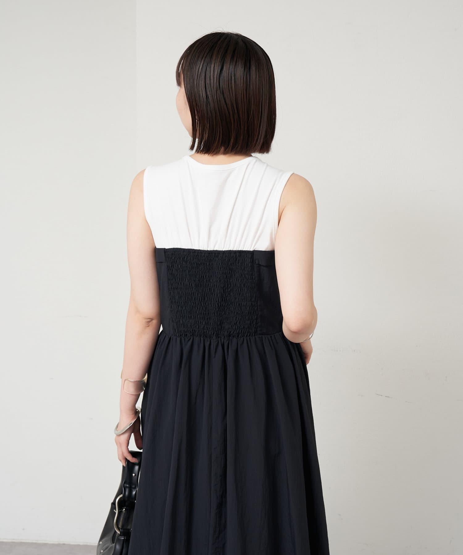 這款連衣裙的胸衣和裙襬部分採用了切換設計,給人一種特別的感覺。