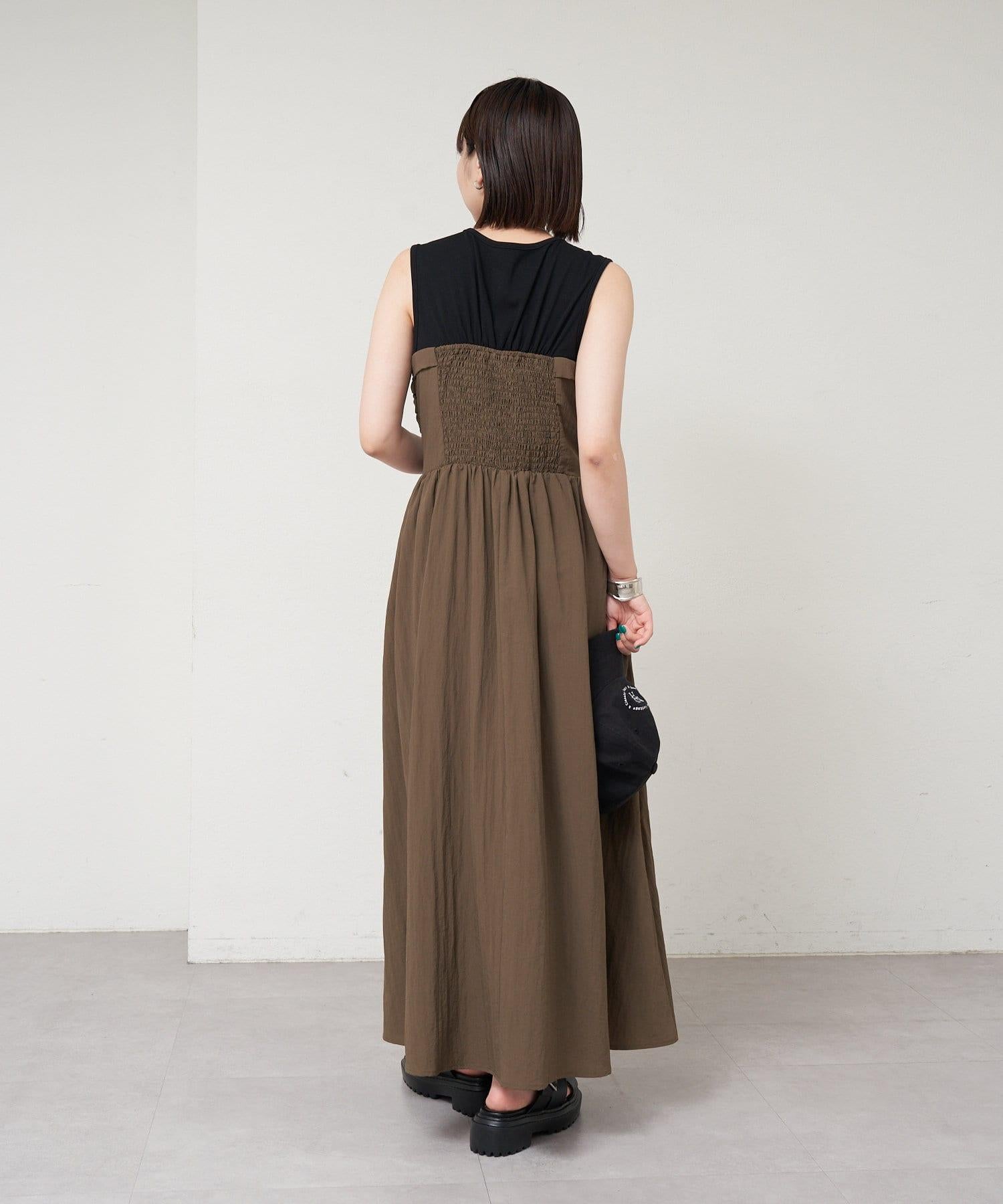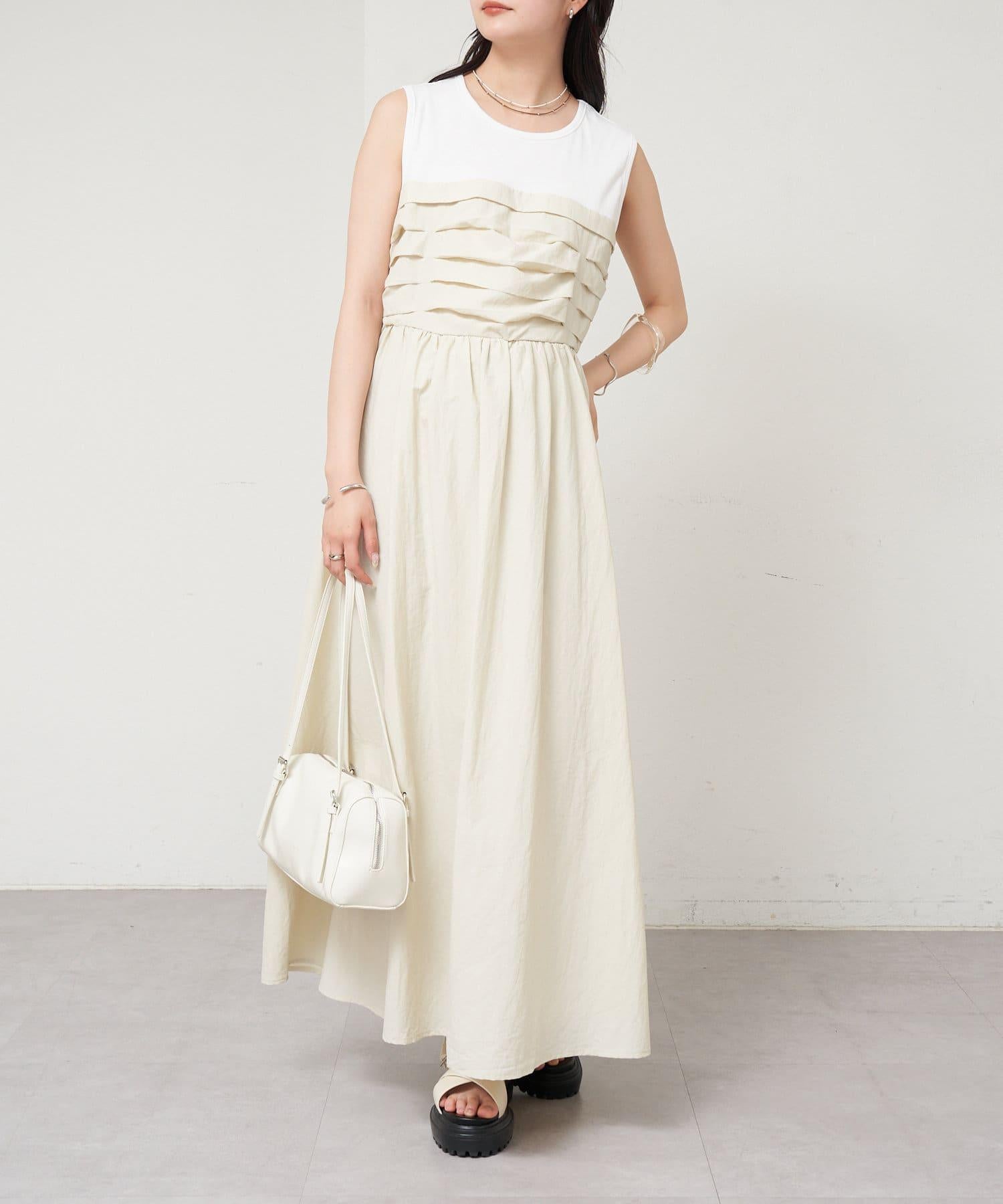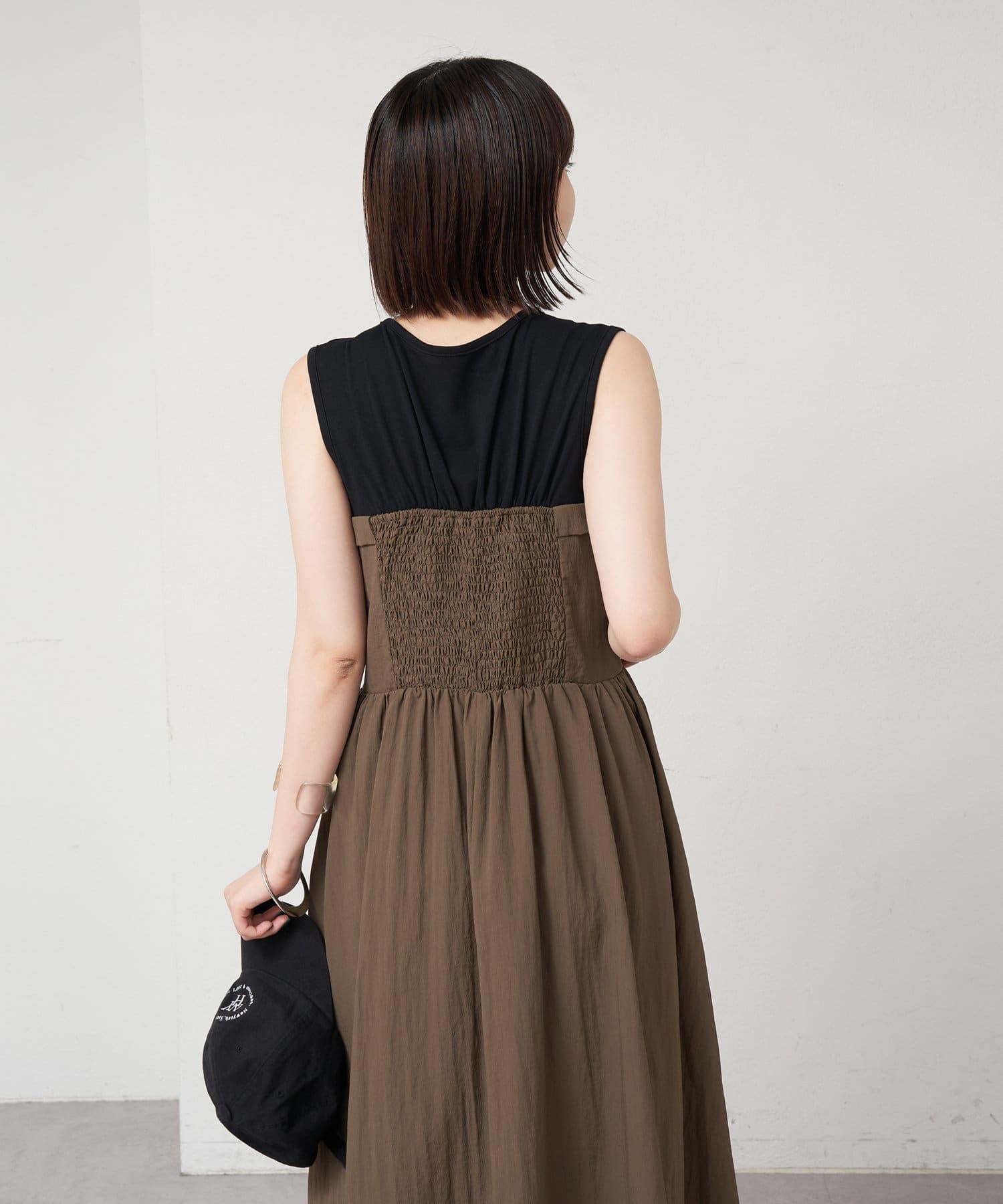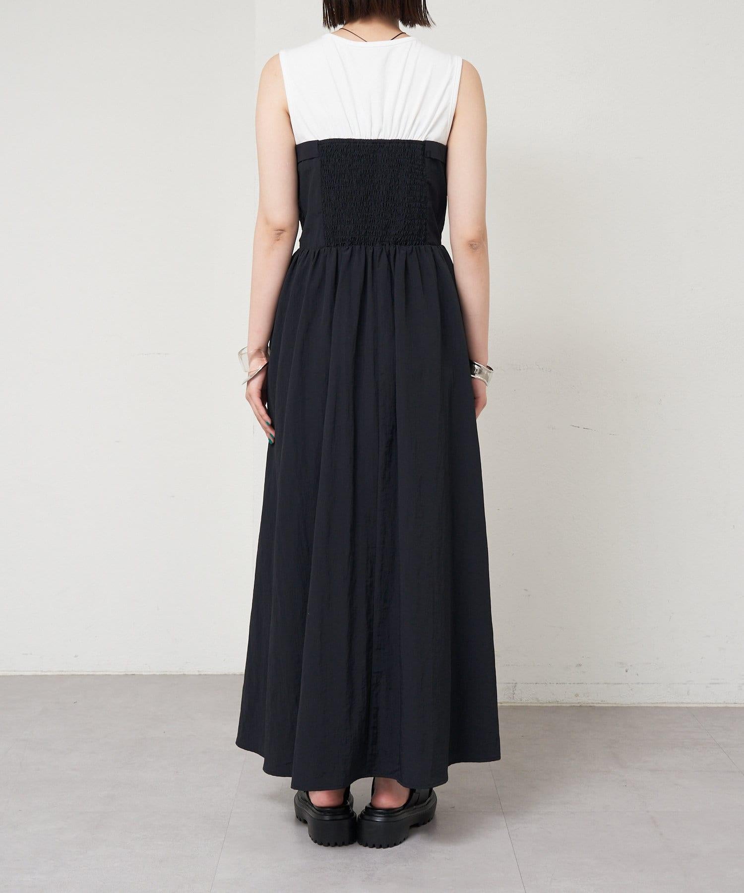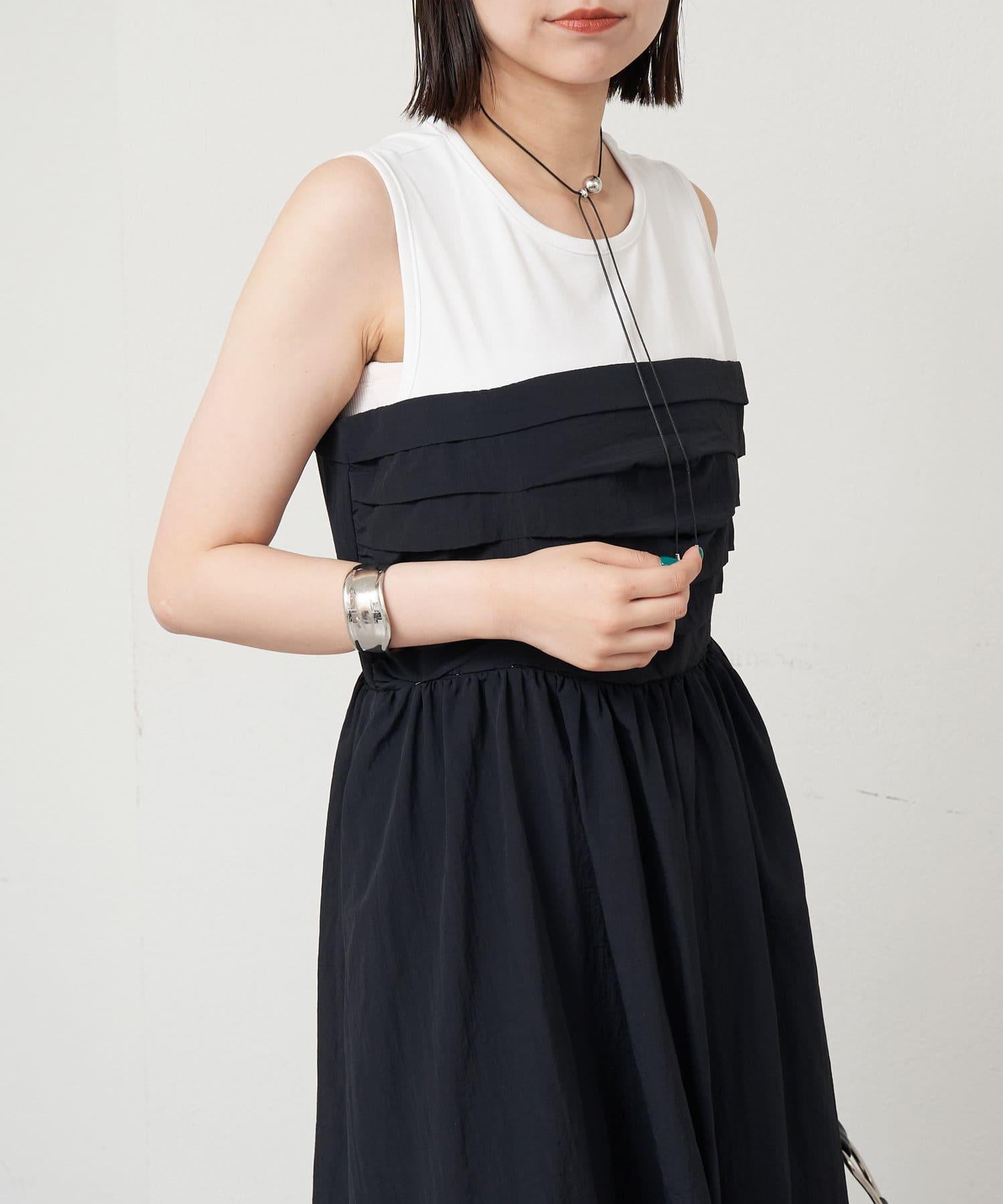 這款連衣裙的胸衣和裙襬部分採用了切換設計,給人一種特別的感覺。