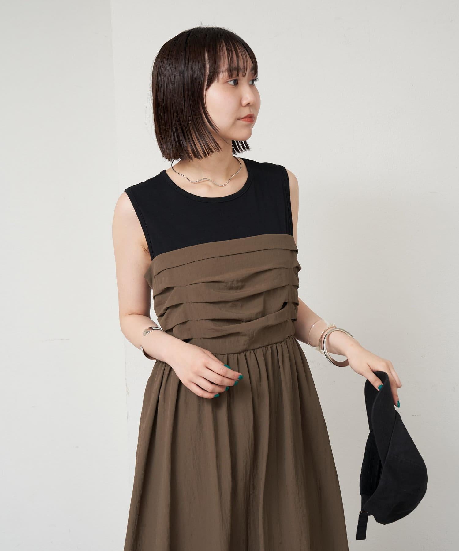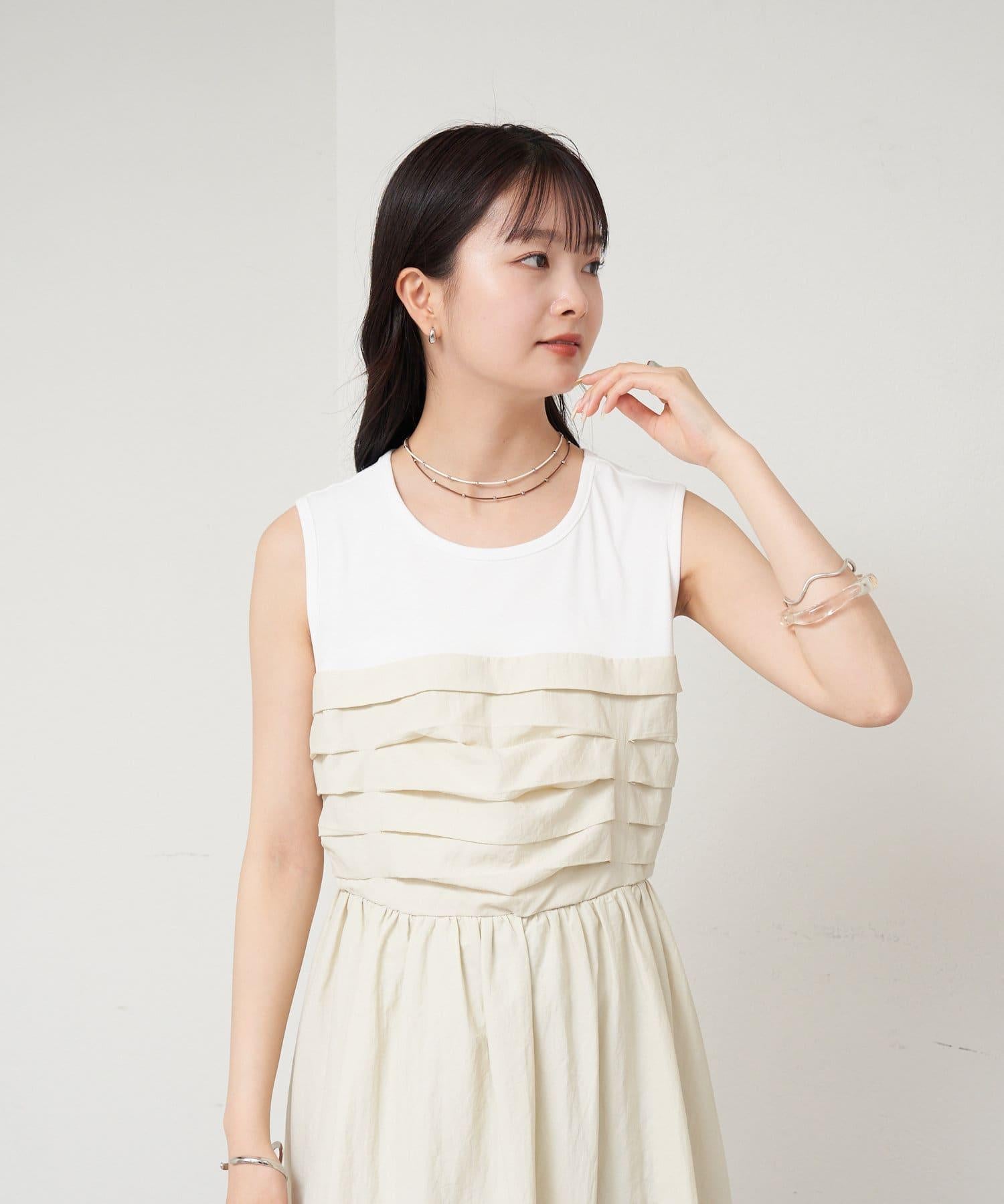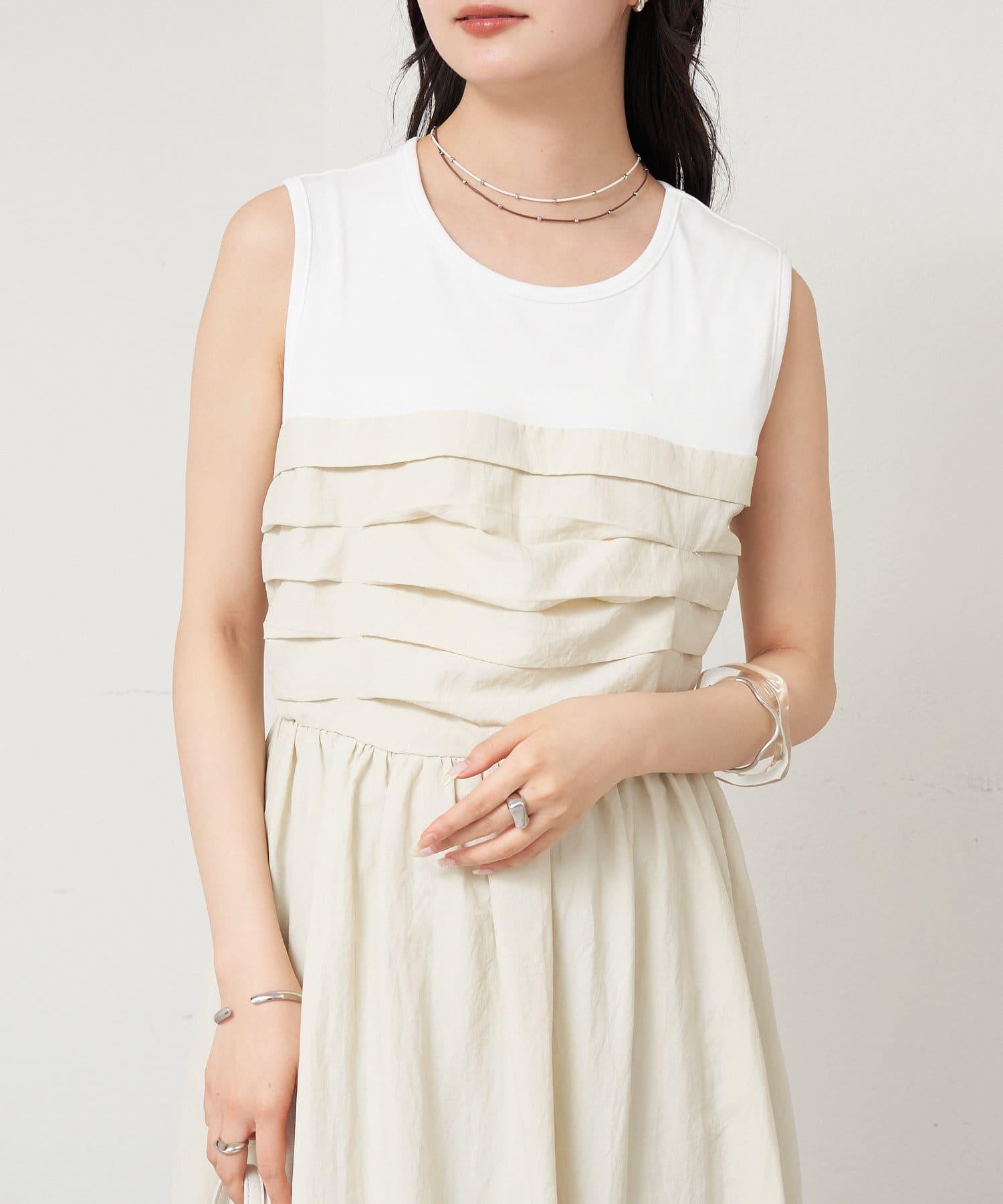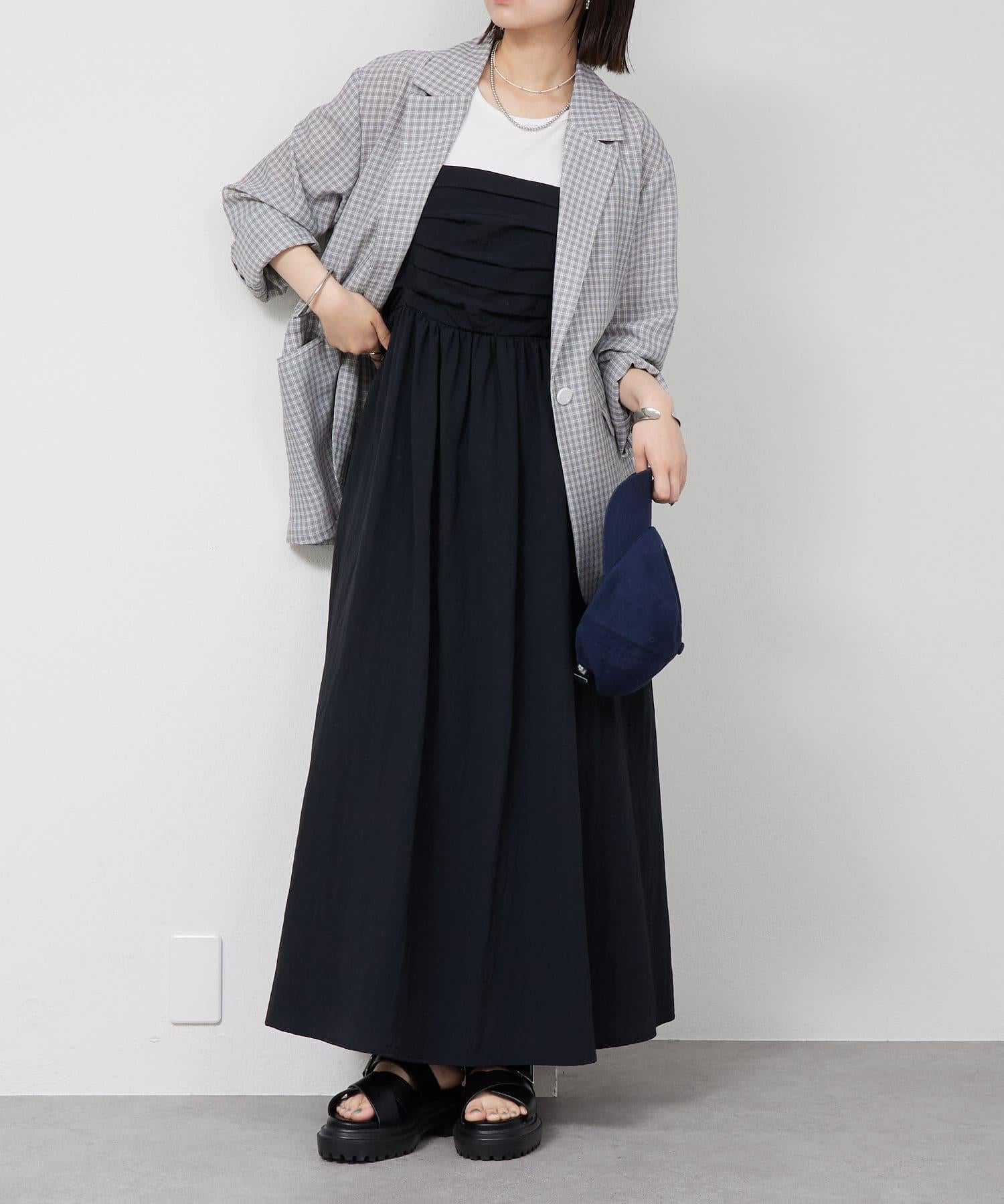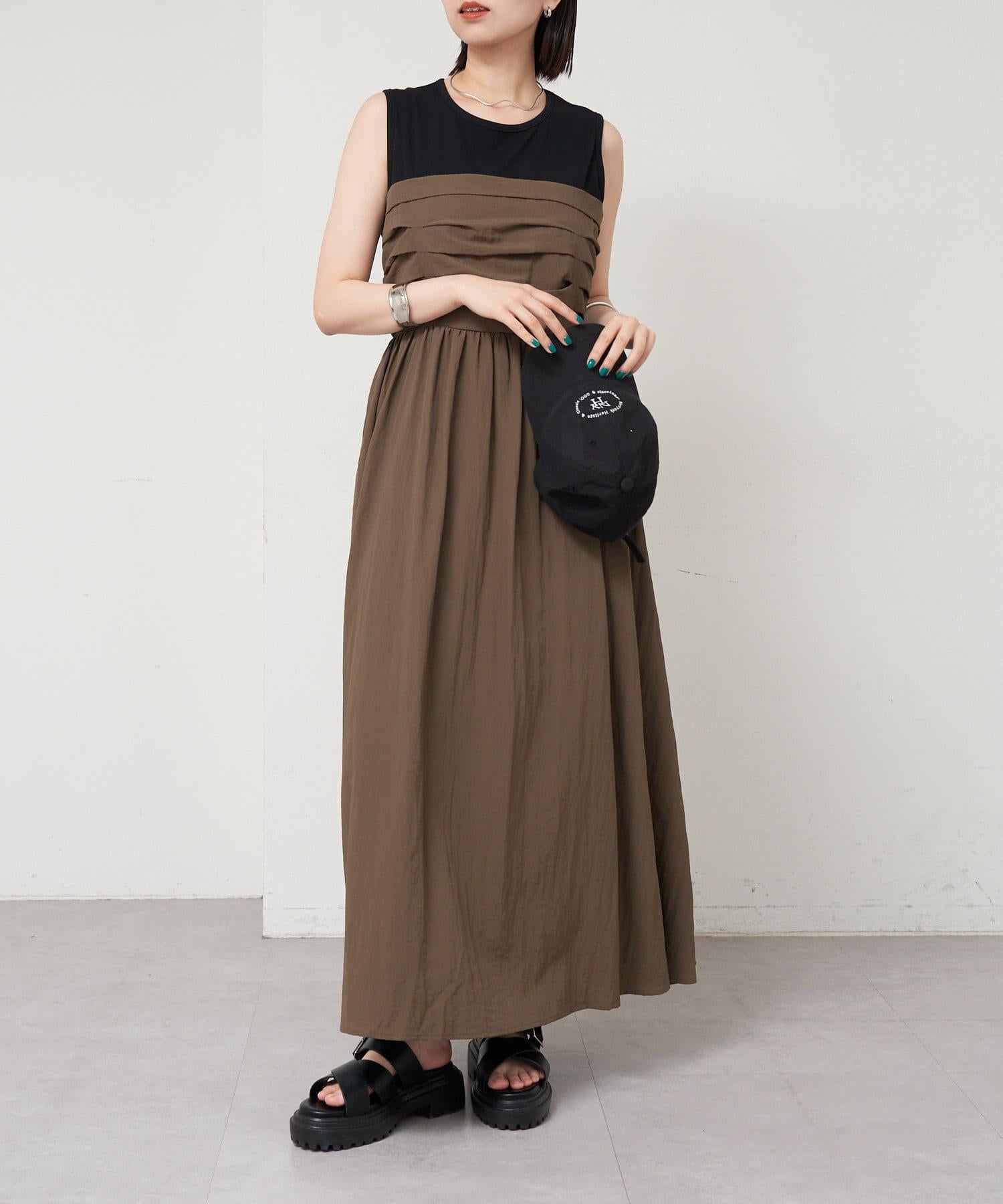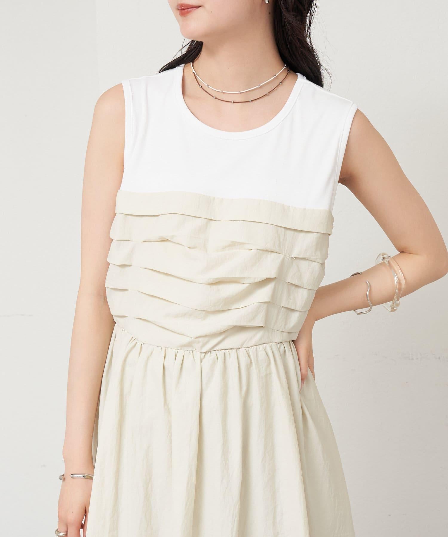 這款連衣裙的胸衣和裙襬部分採用了切換設計,給人一種特別的感覺。