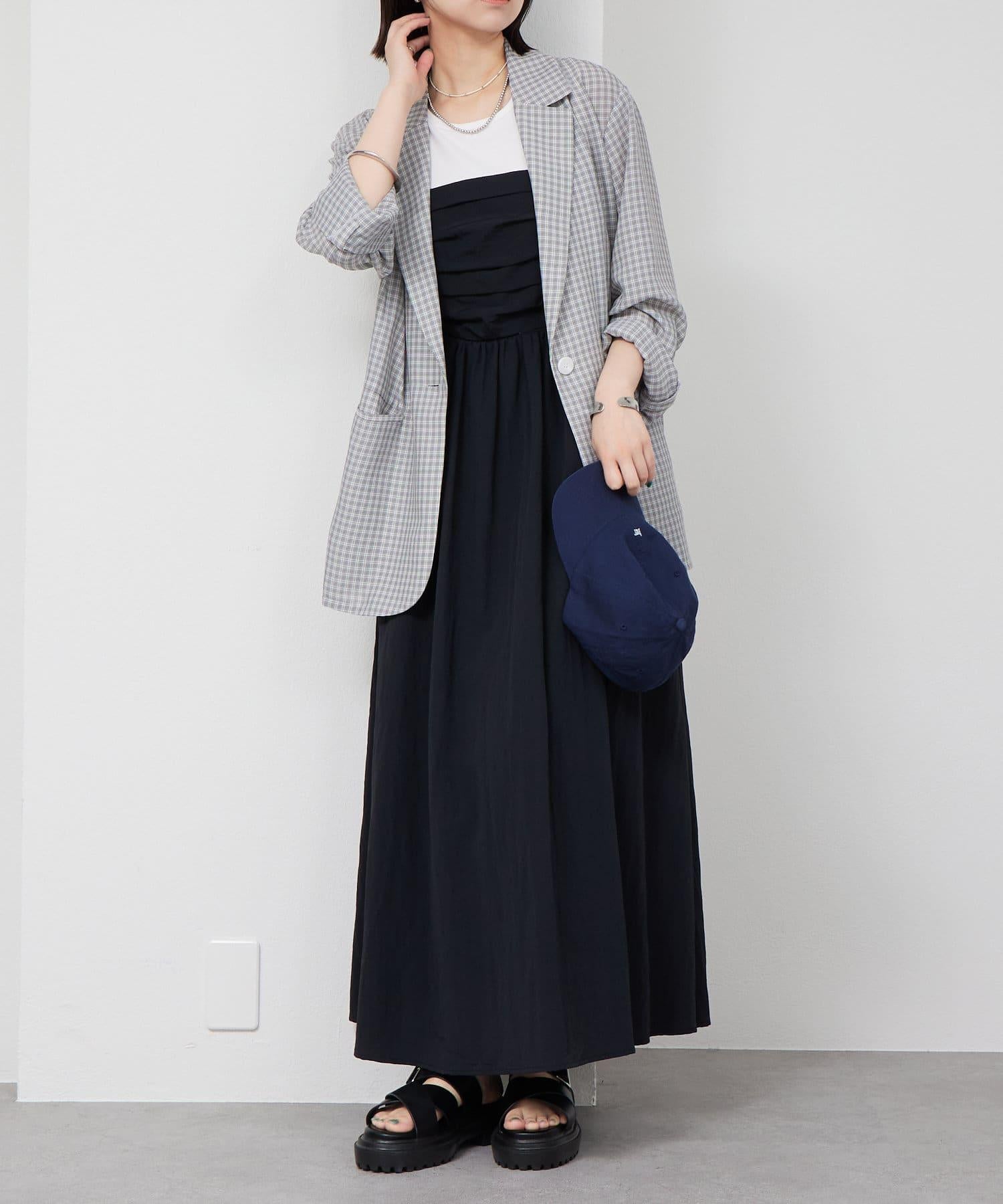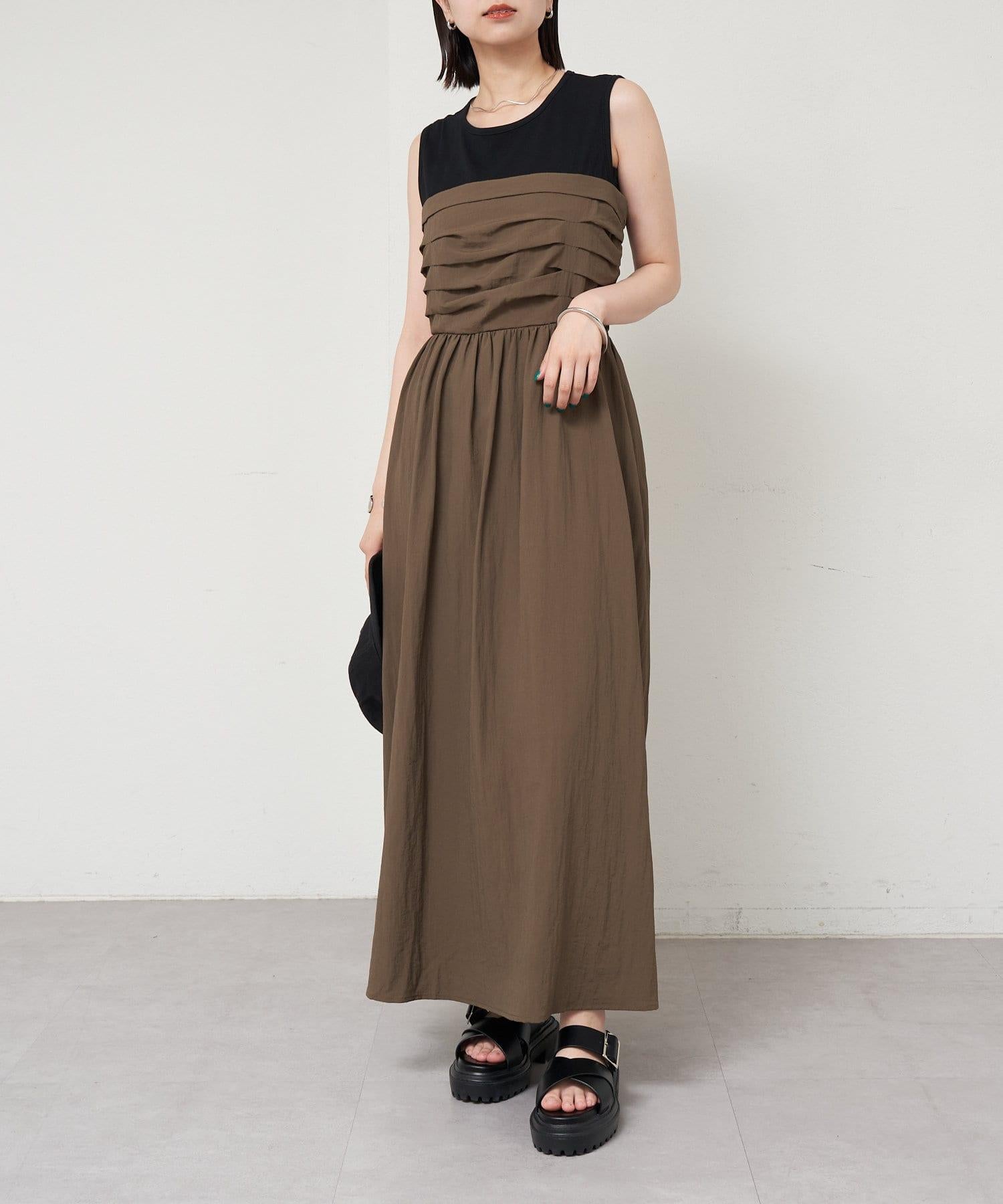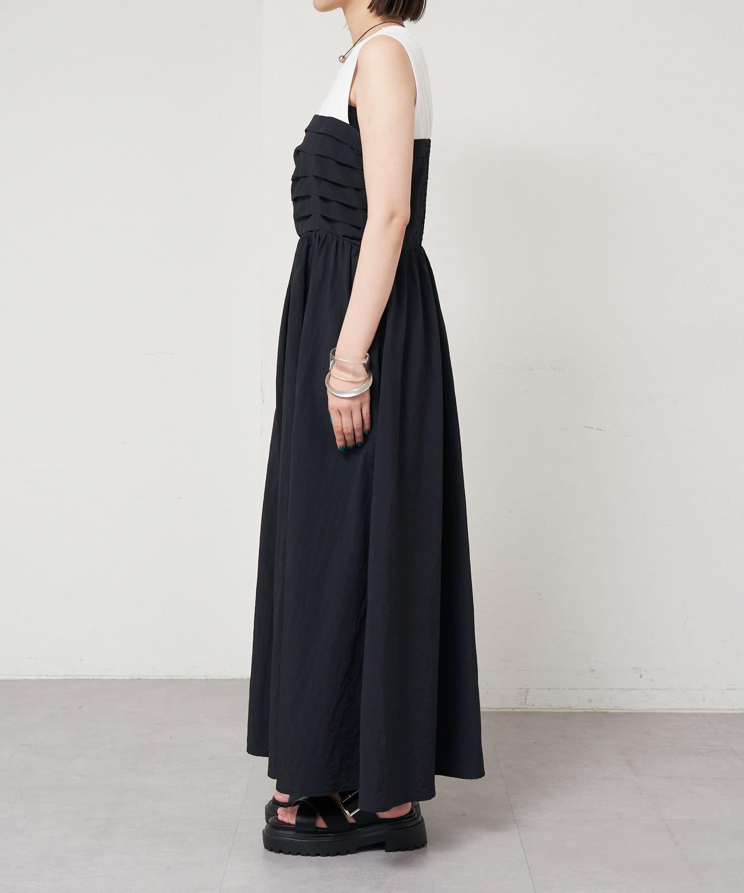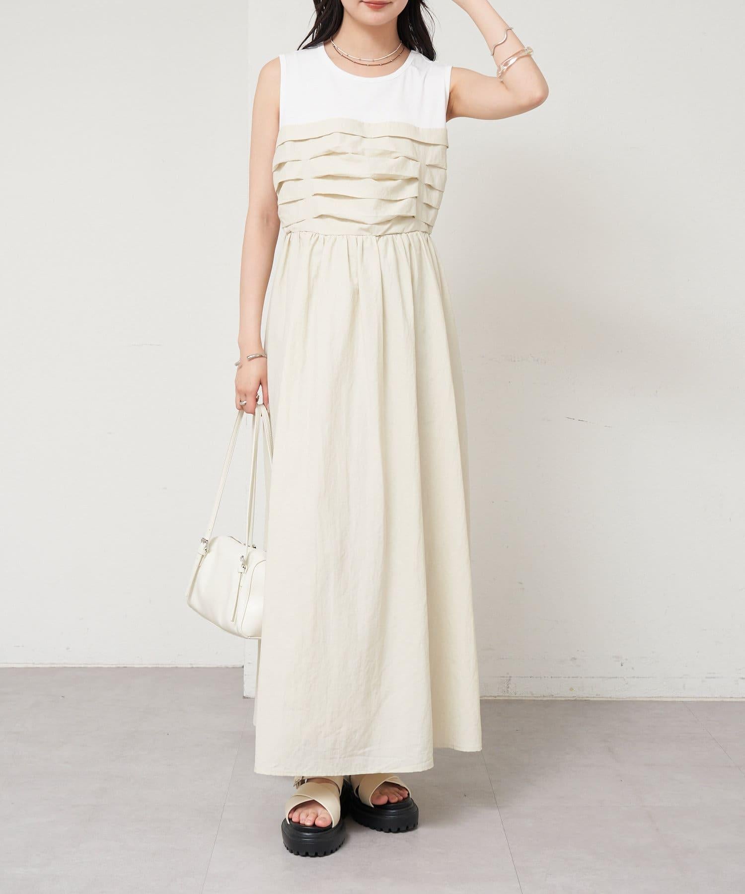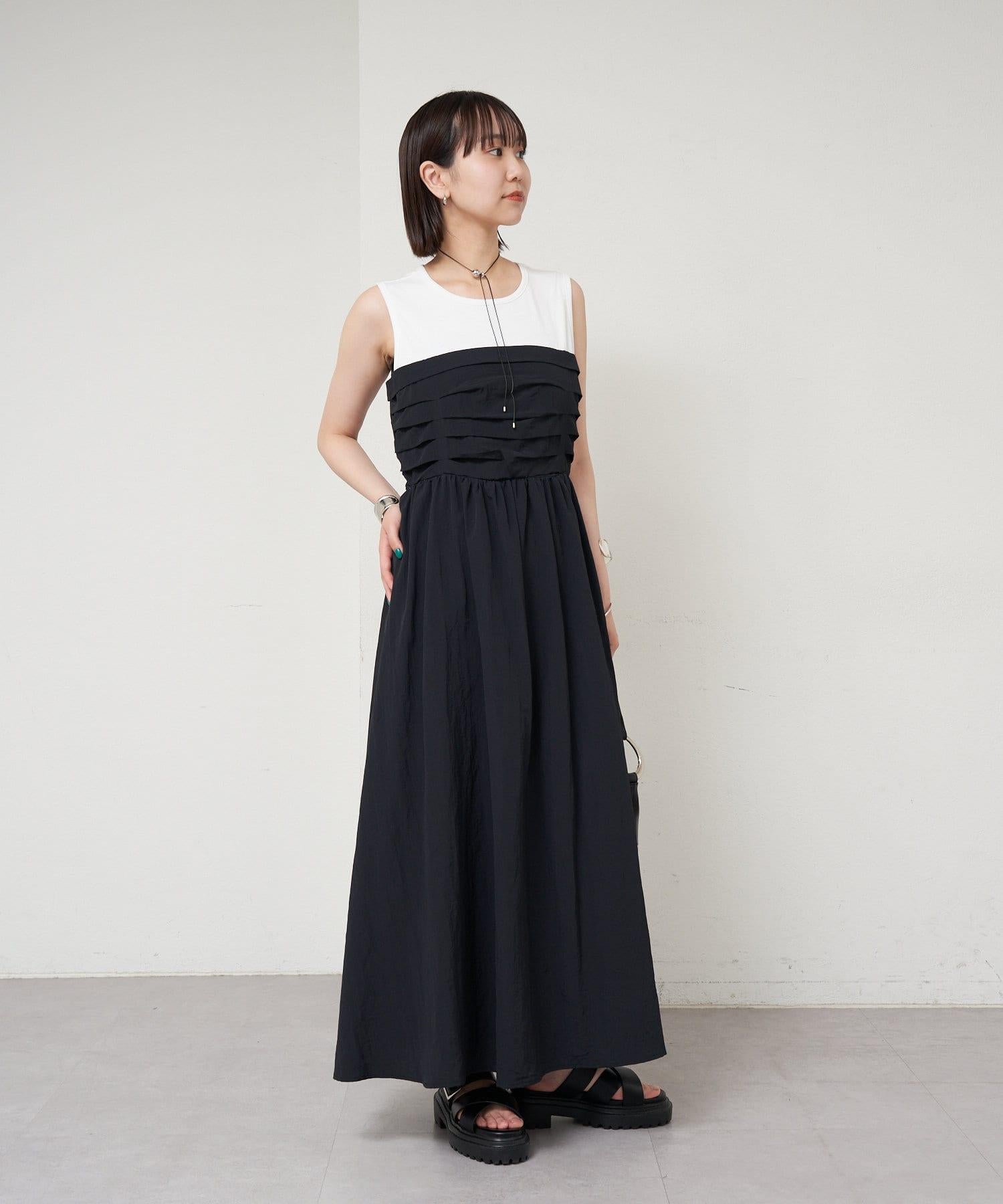 這款連衣裙的胸衣和裙襬部分採用了切換設計,給人一種特別的感覺。