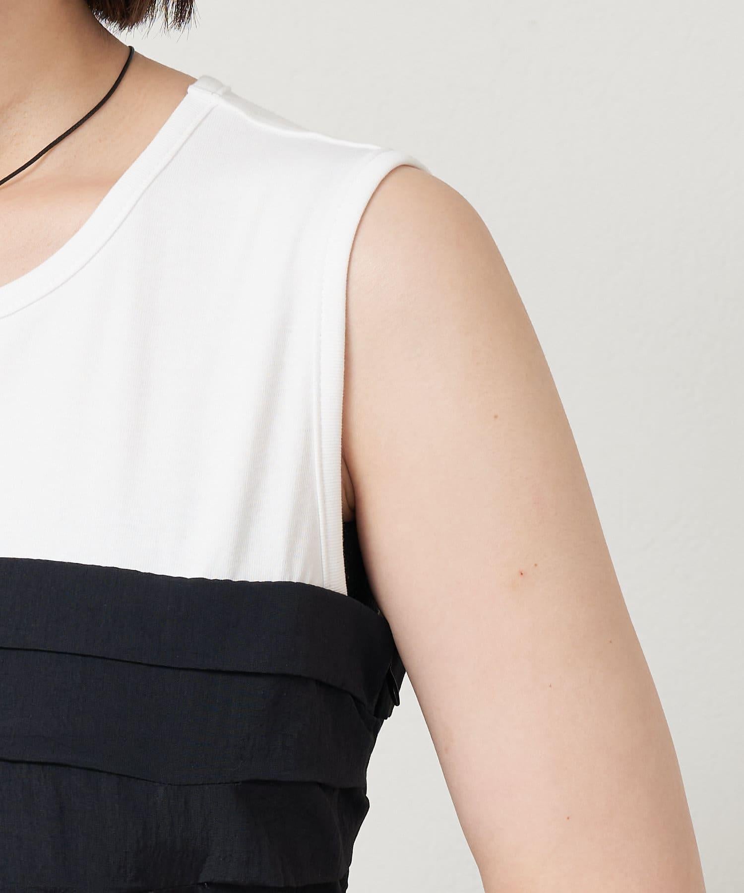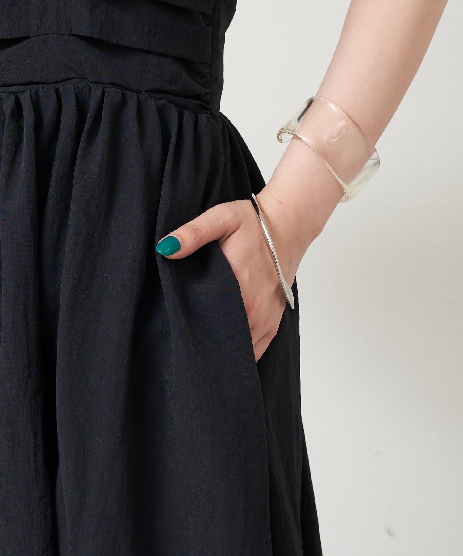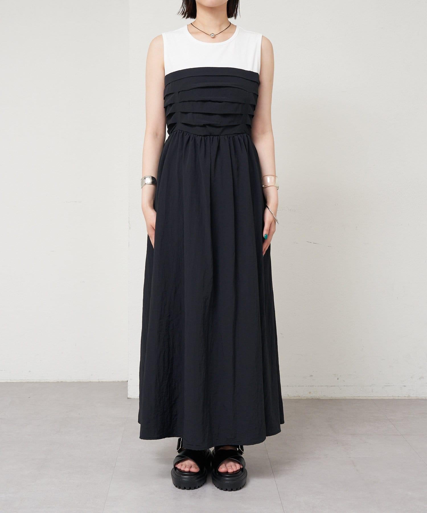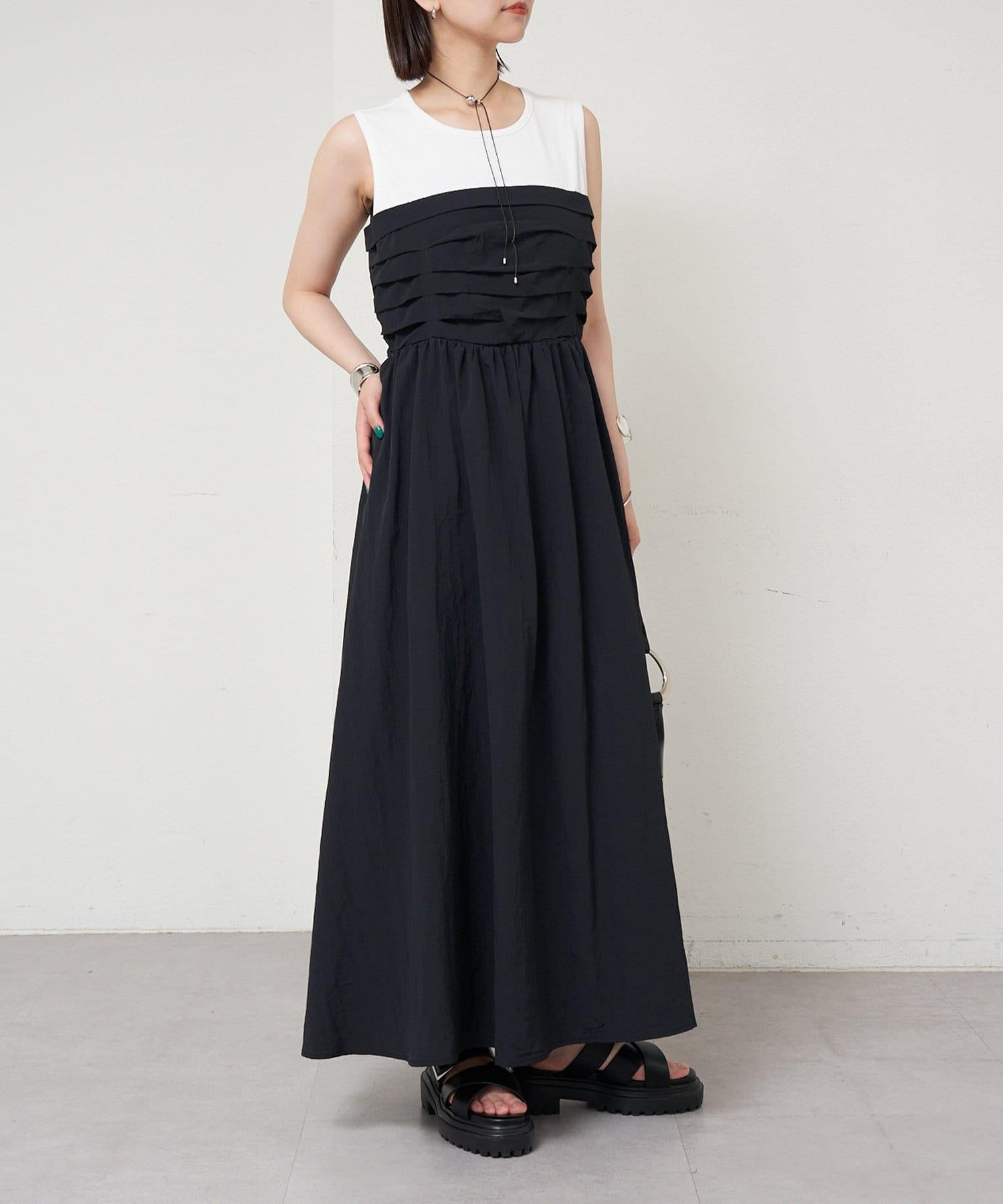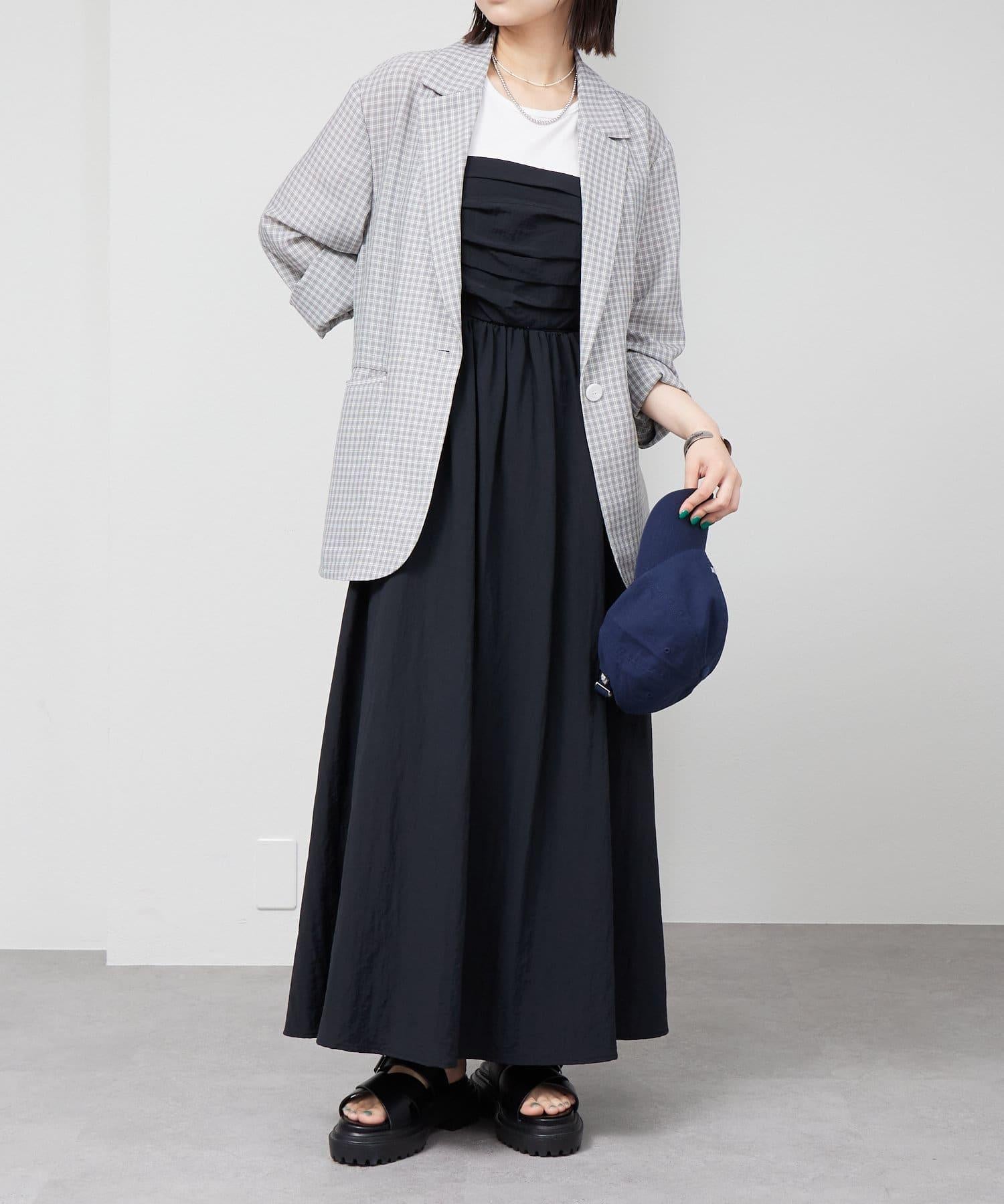 這款連衣裙的胸衣和裙襬部分採用了切換設計,給人一種特別的感覺。