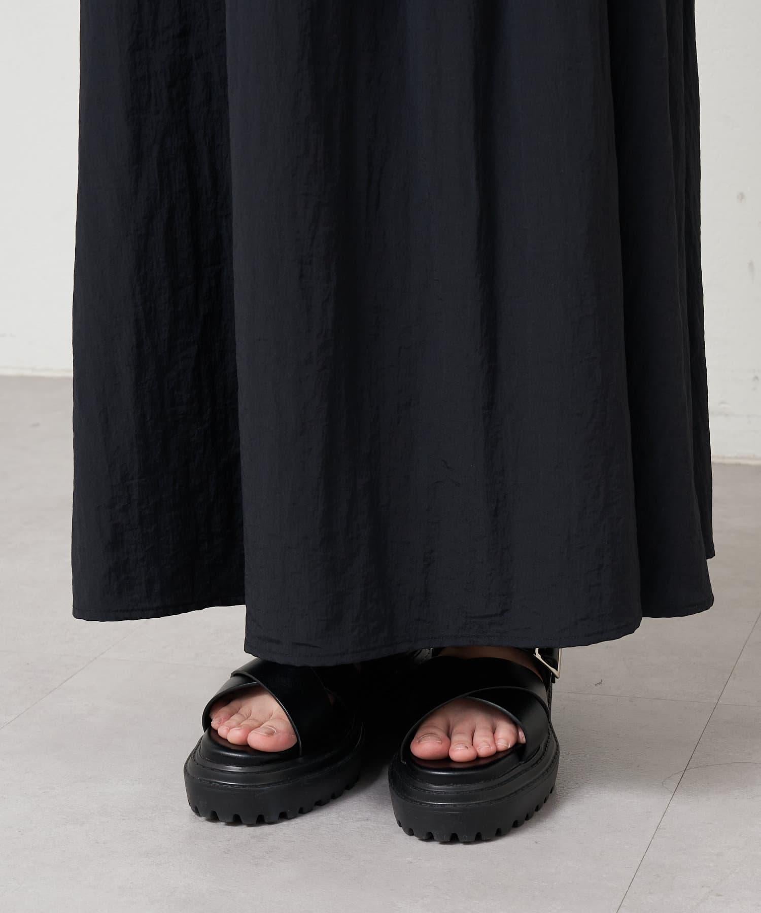 裙子的廓形和長度都是喇叭形的,即使是擔心腿長的人也可以放心穿。
