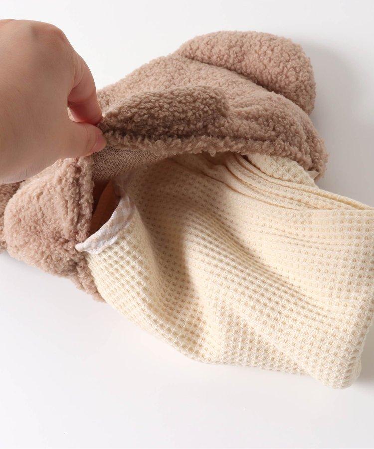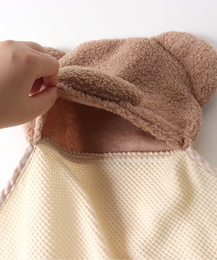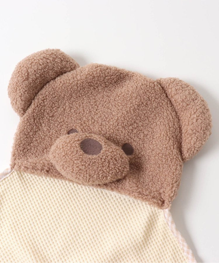 毯子由華夫格材料製成,一年四季都可以使用,小熊臉部的部分可以通過收納毯子作為靠墊使用。
