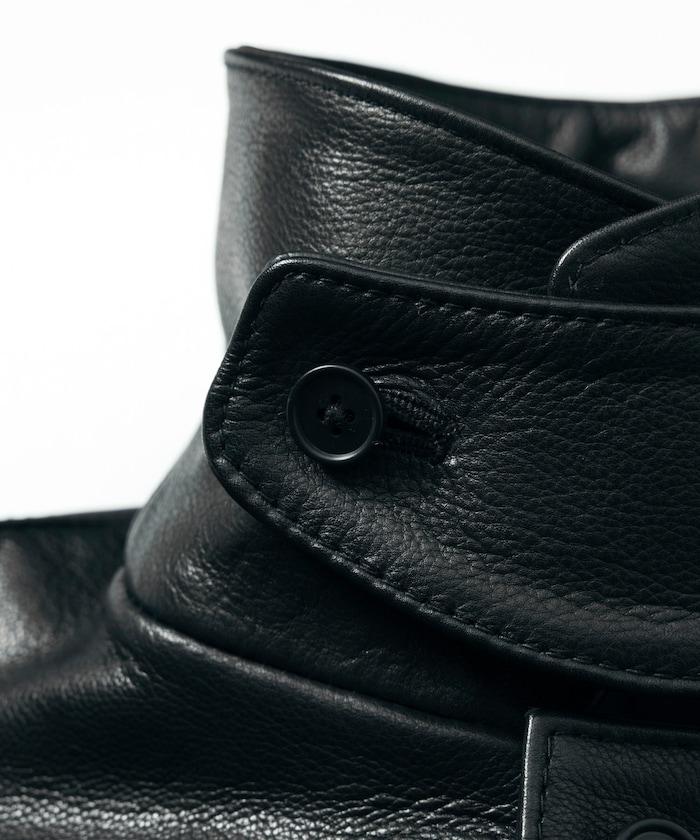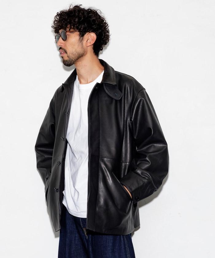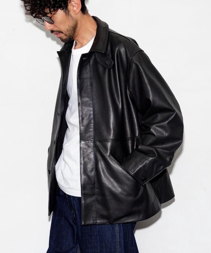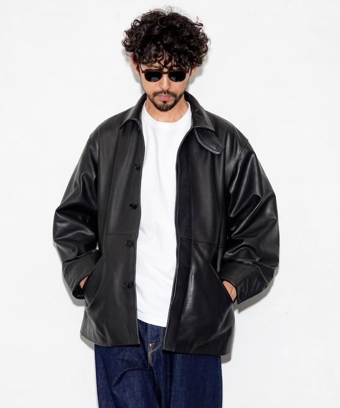 採用小牛皮製成的極簡主義皮質汽車外套。