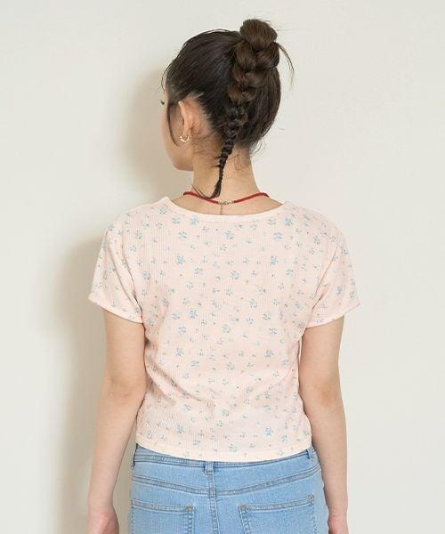 面料給人溫柔的印象,加上季節性的花卉圖案,這款 T 恤是少女愛好者的必備單品!正面的品牌標籤簡潔大方。