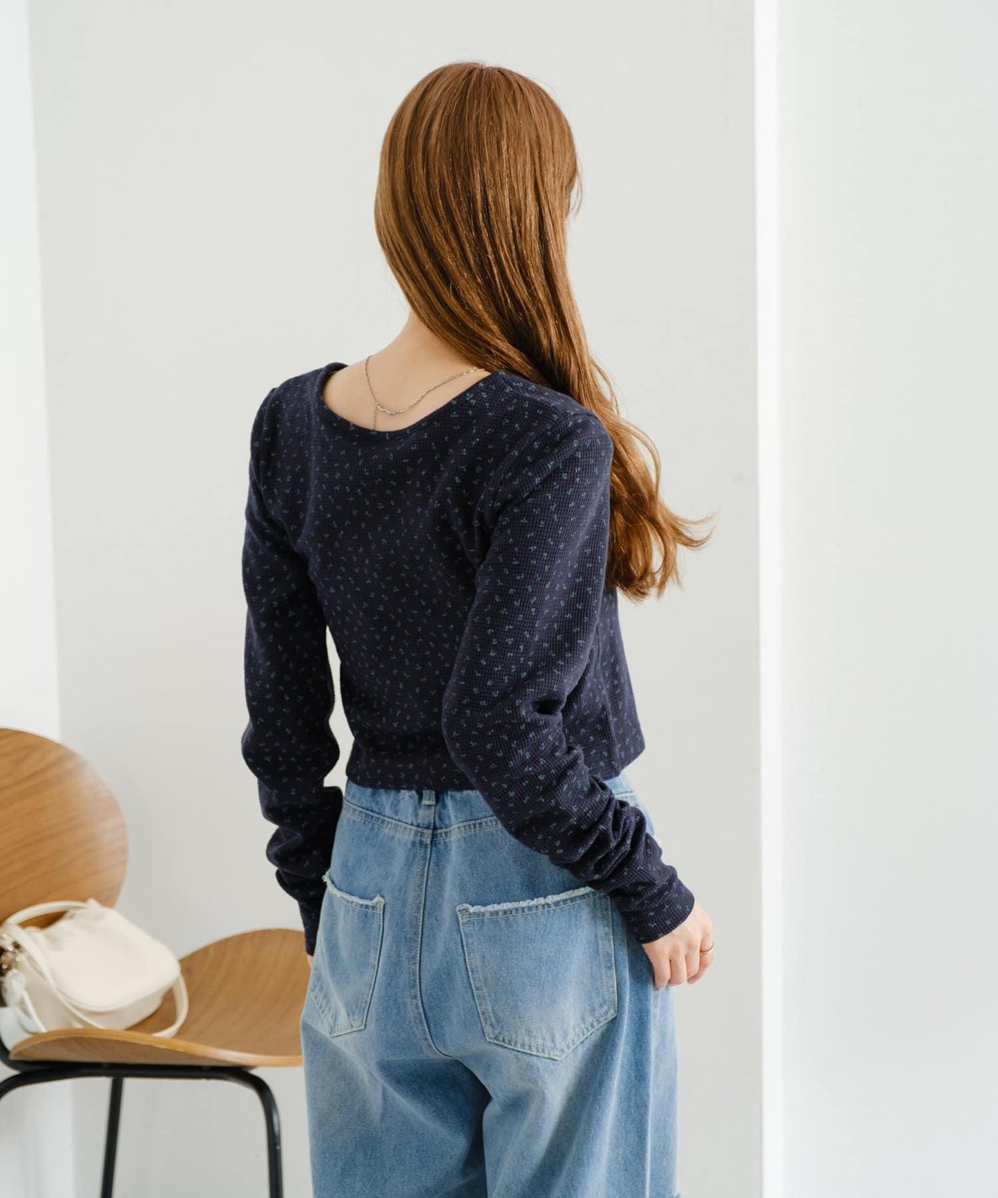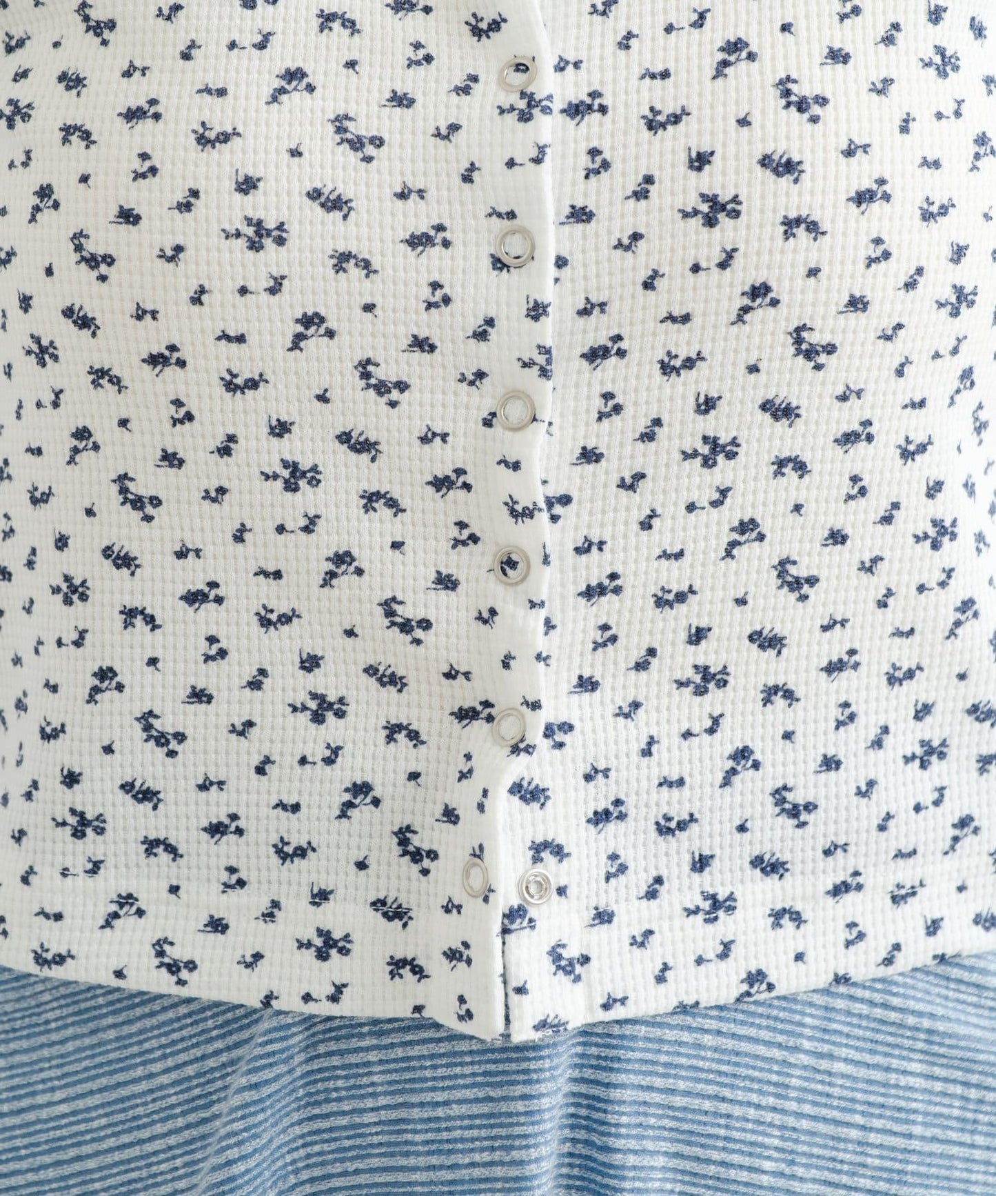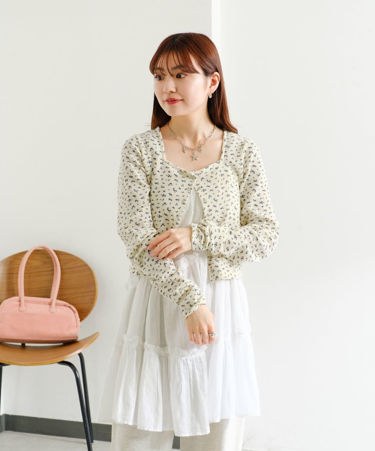 小巧的剪裁也可作為上衣穿著,前襟開合。