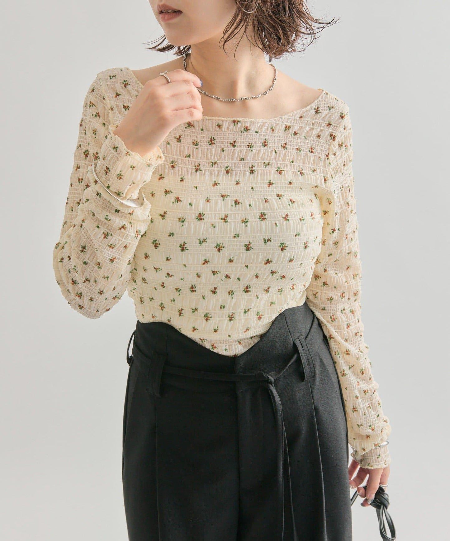 小花褶皺T恤
