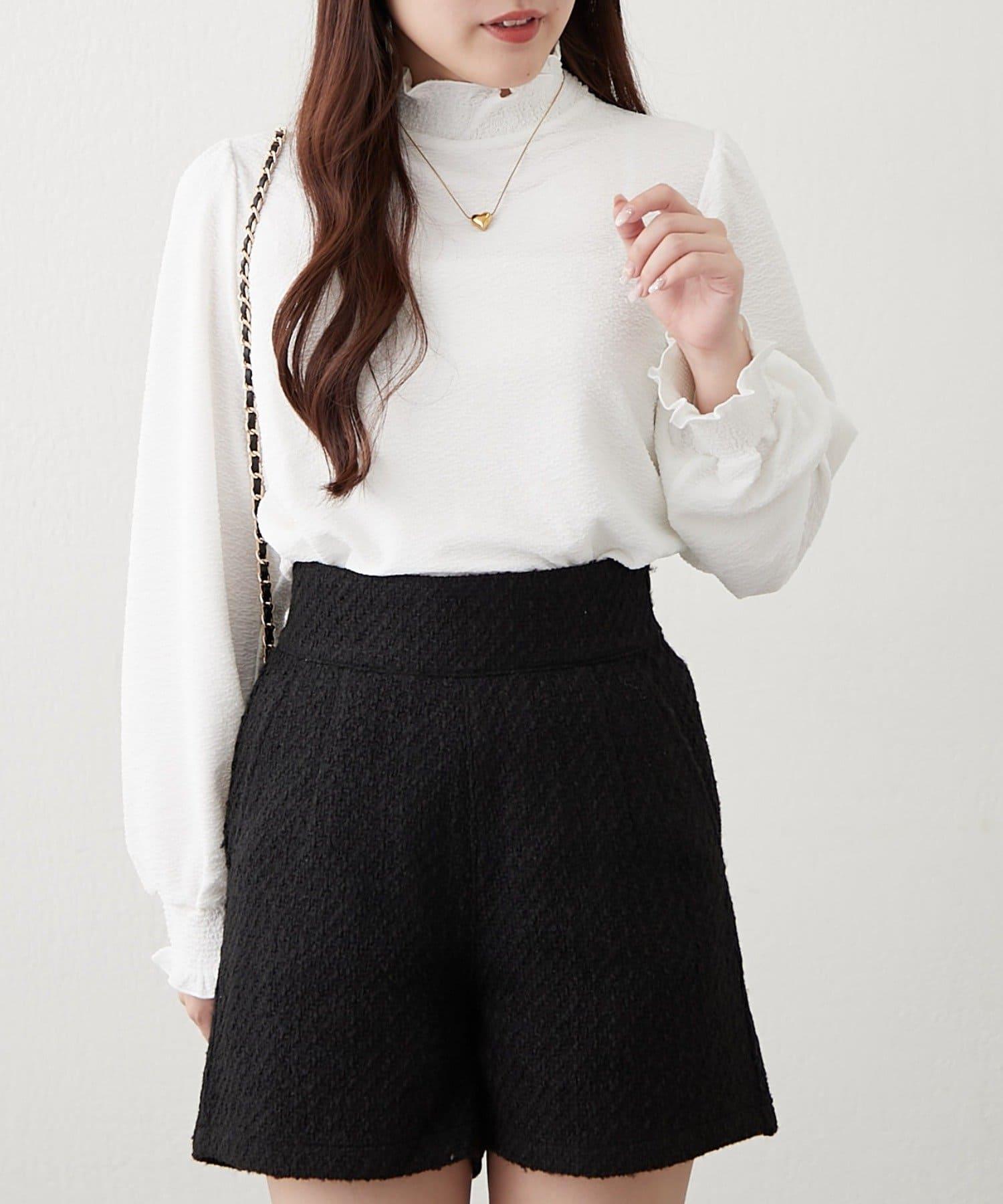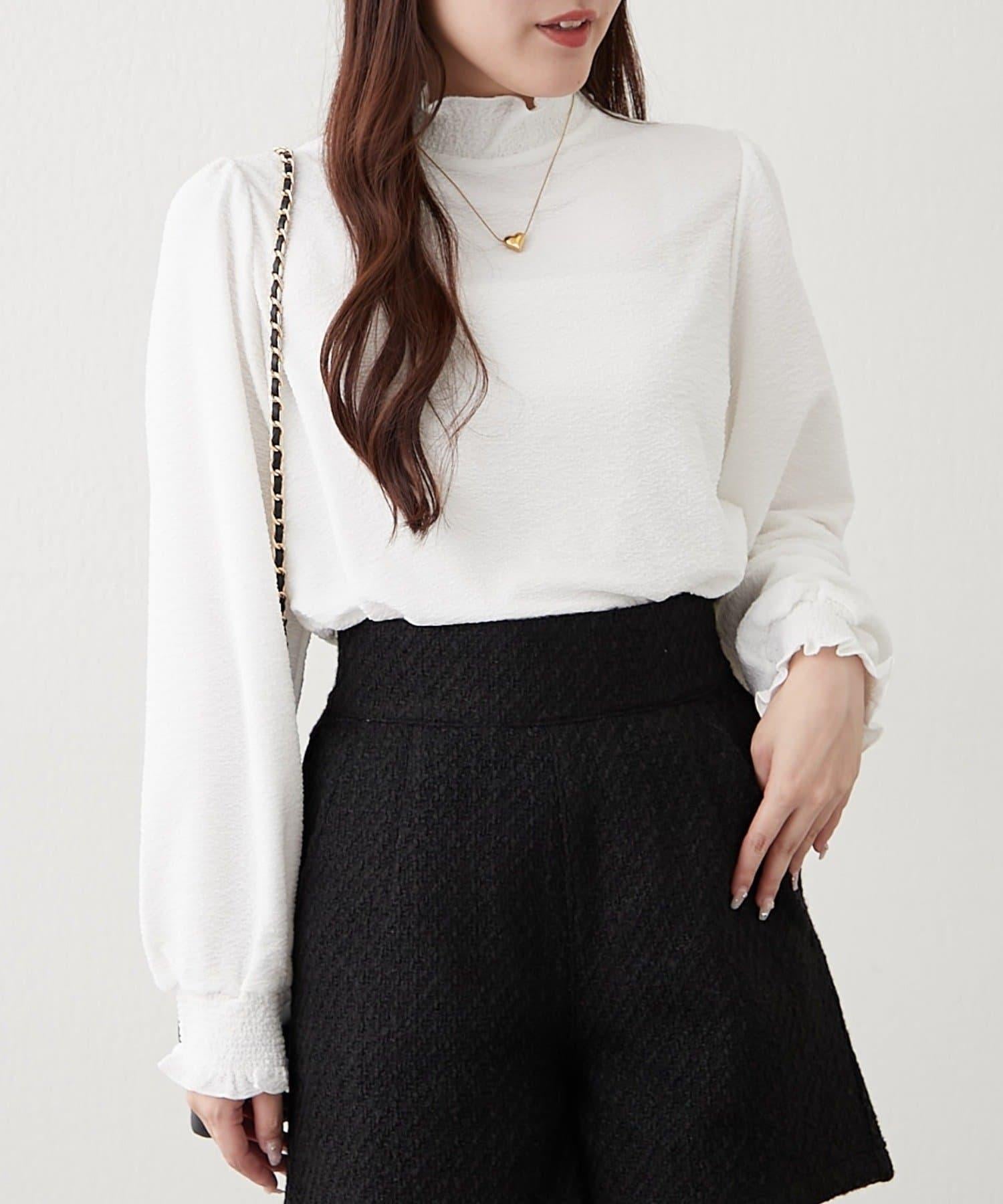 小高領褶皺襯衫