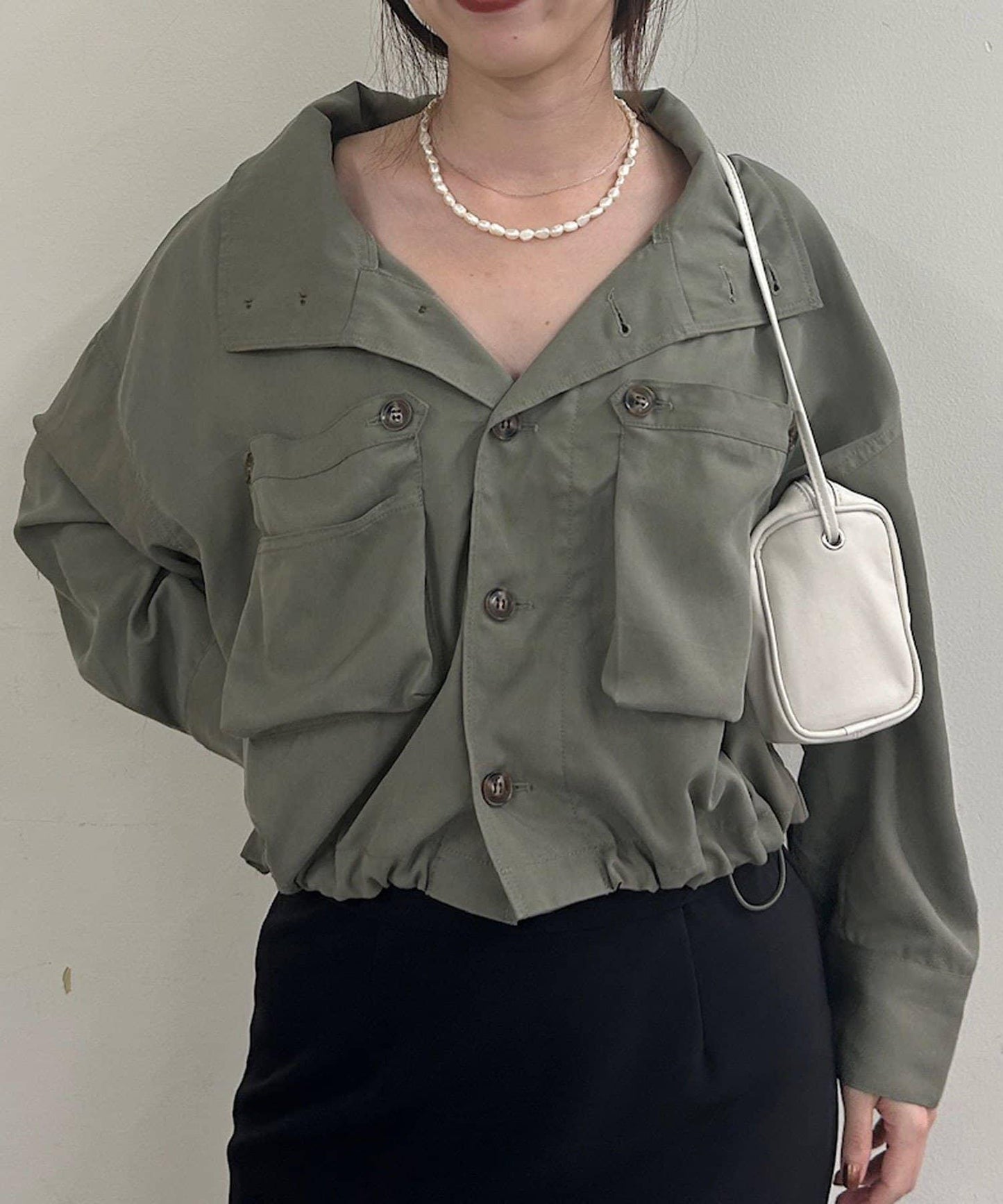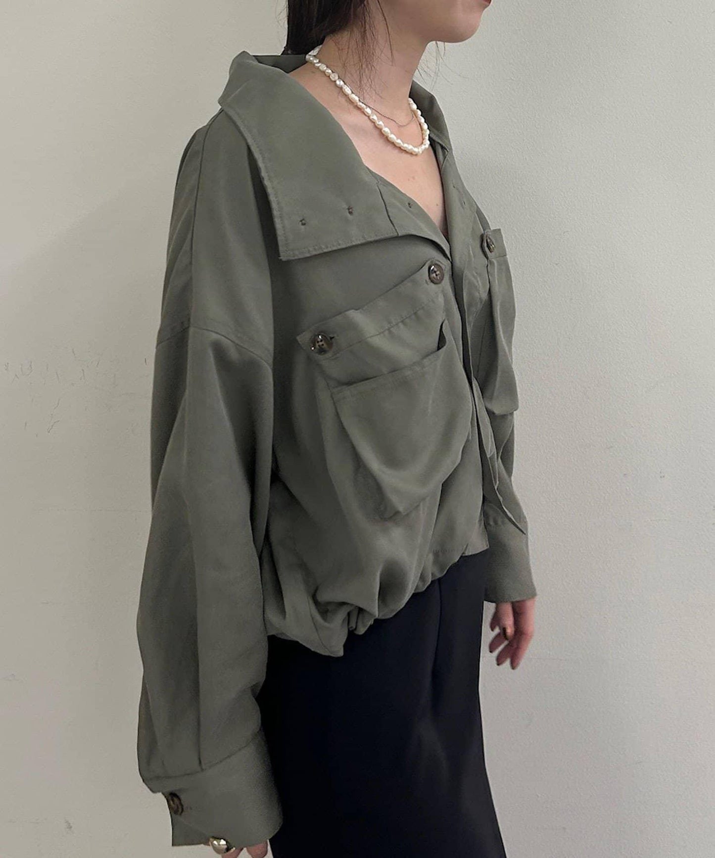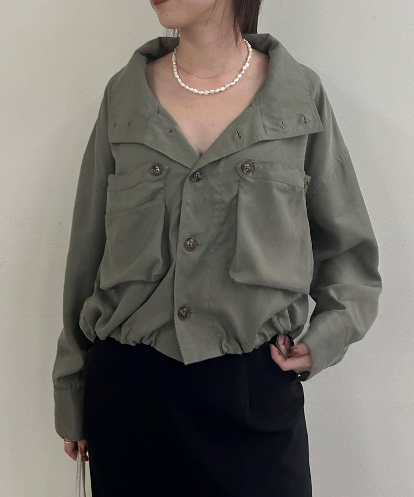 這款襯衫具有軍裝感。