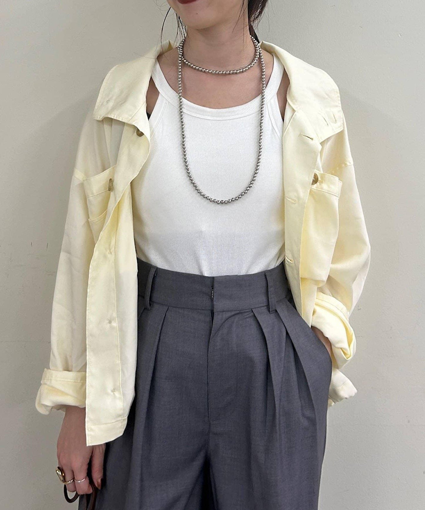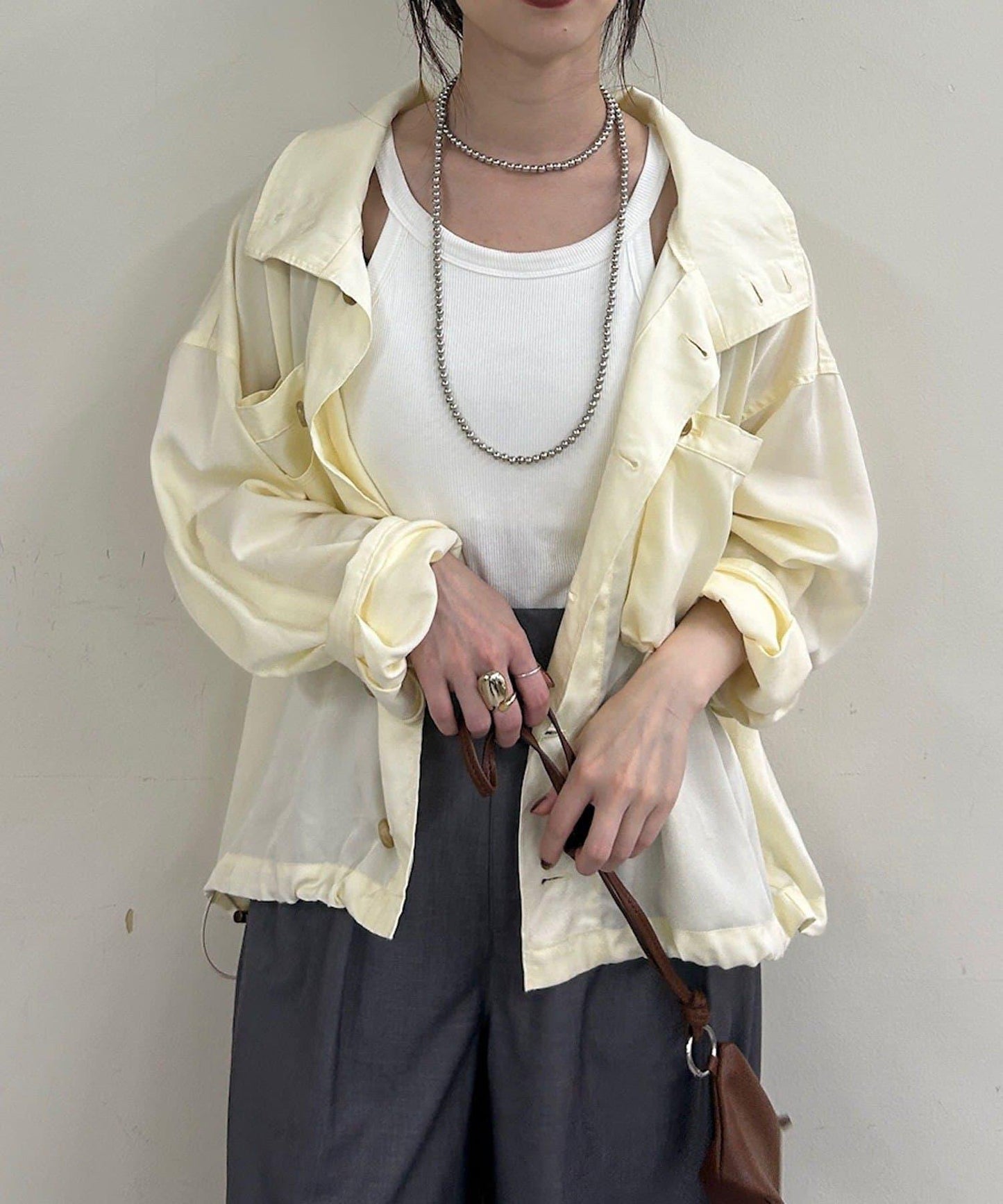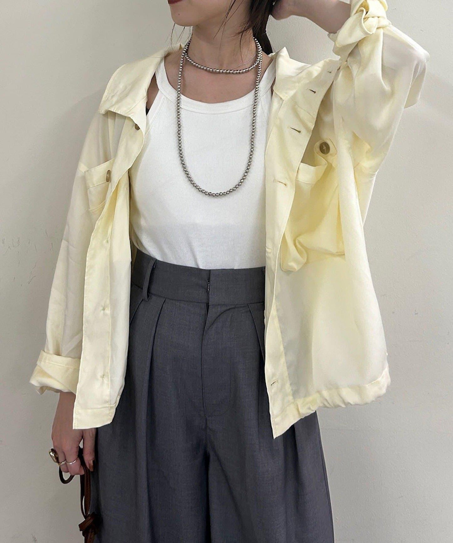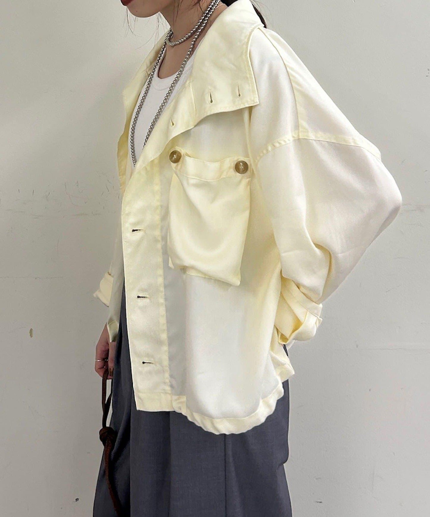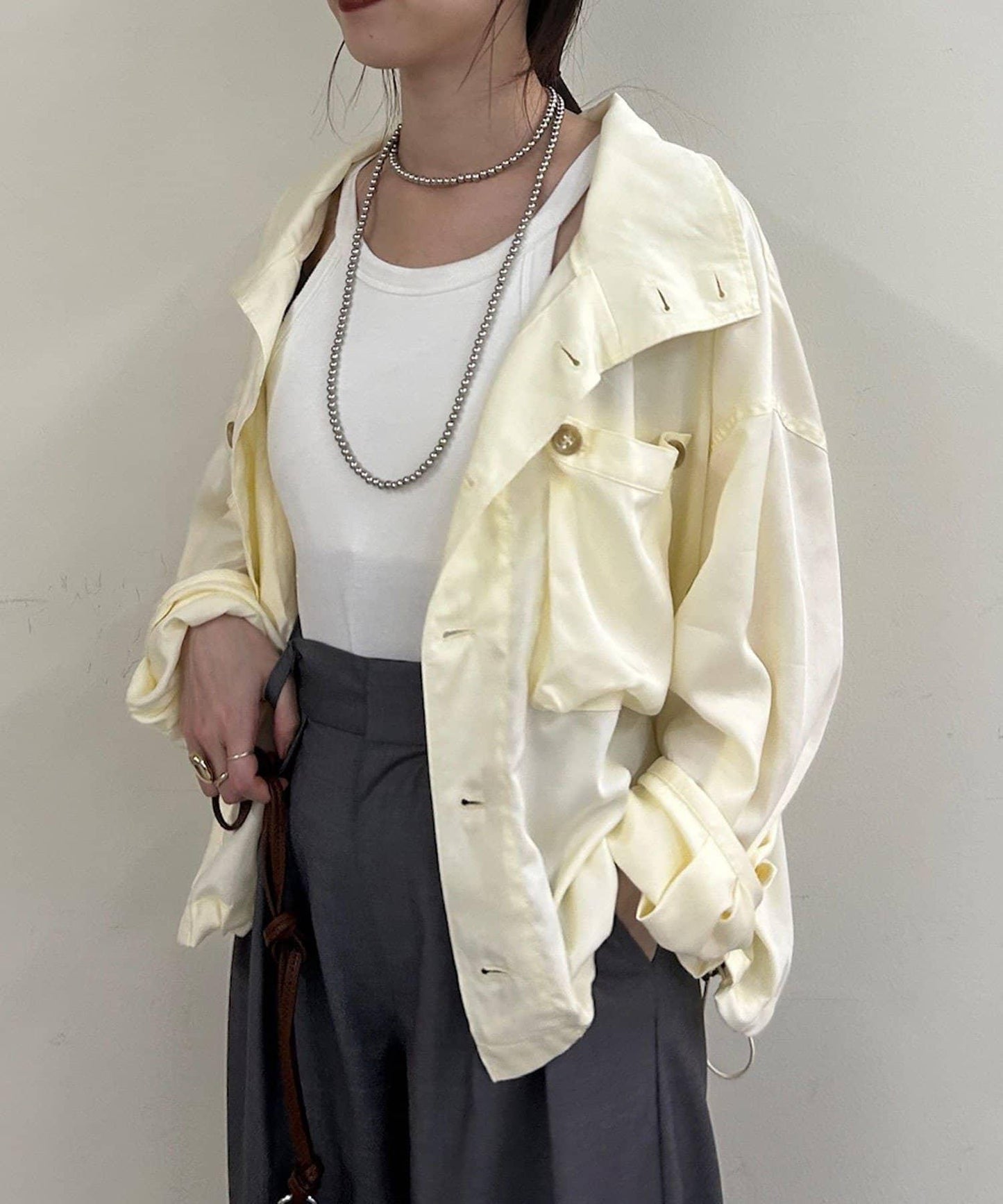 推薦的款式是從上部打開約三顆紐扣,像襯衫一樣穿著。