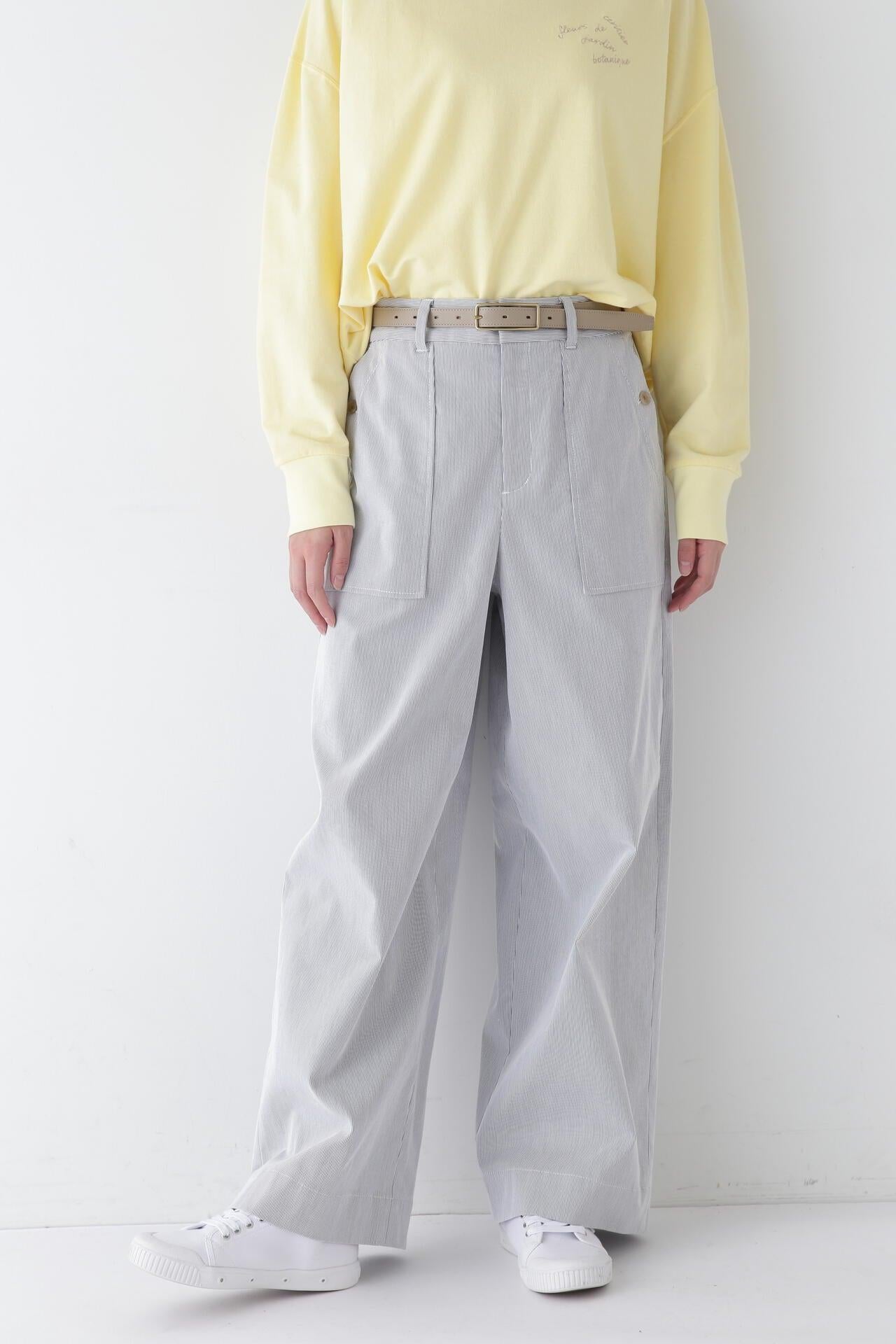 【尺碼】彈力織物拼接半寬直筒褲
