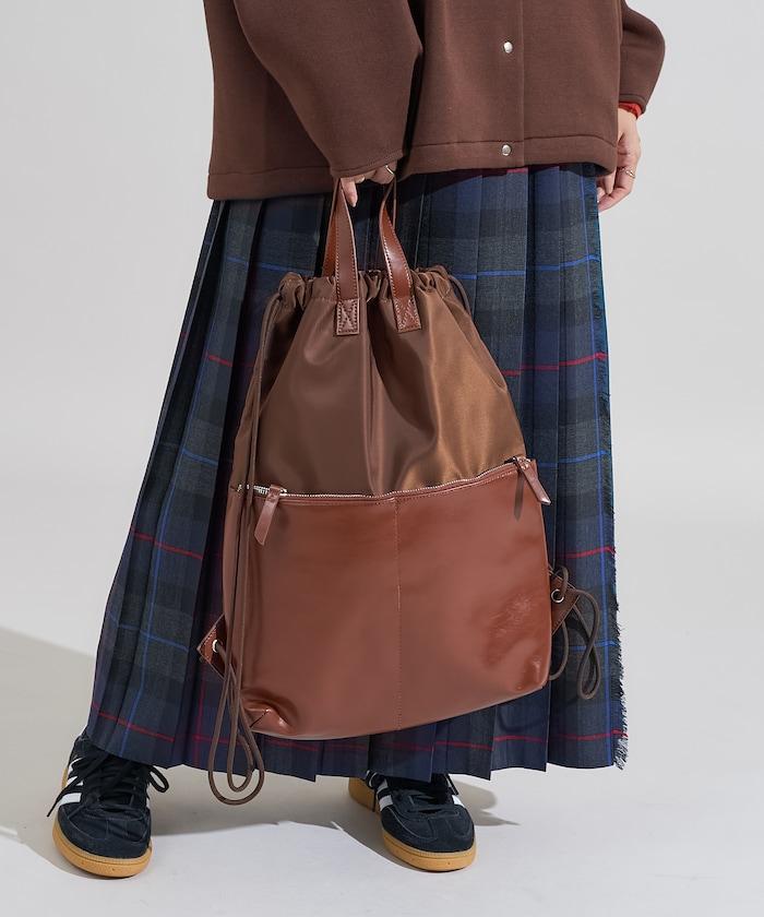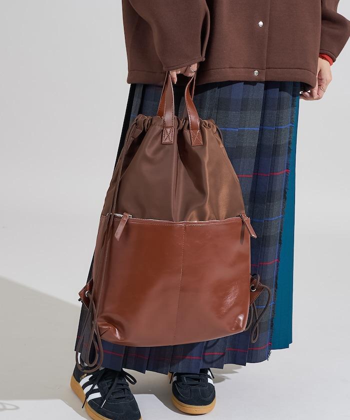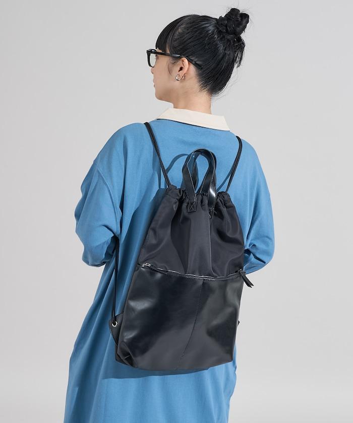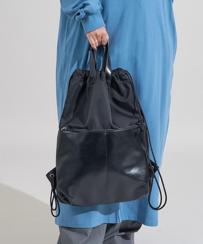 尼龍仿皮抽繩揹包