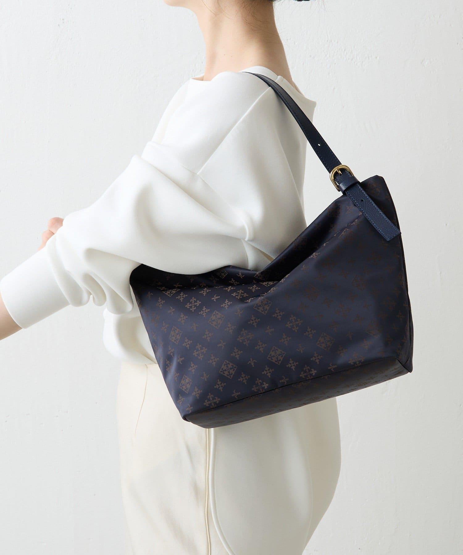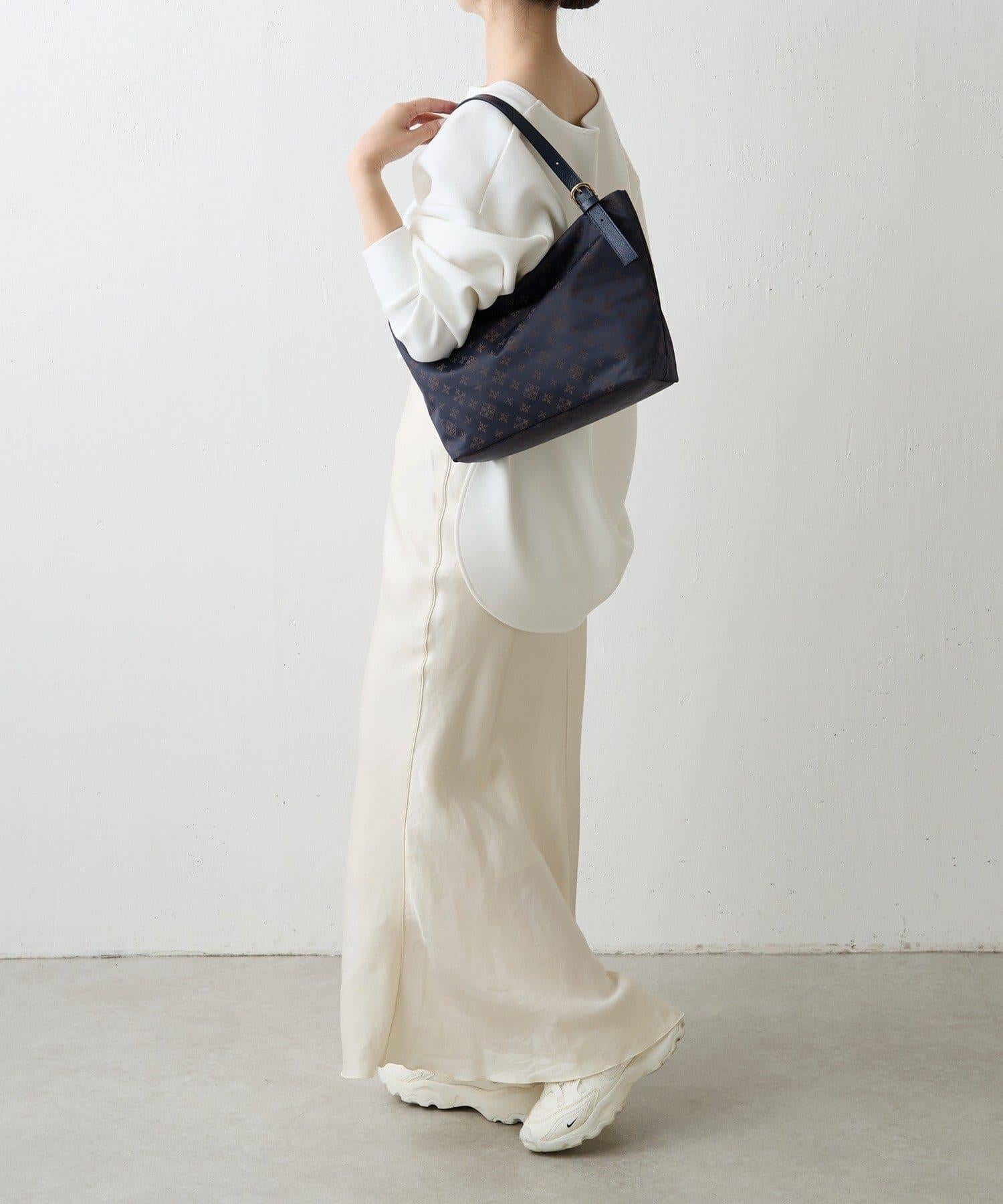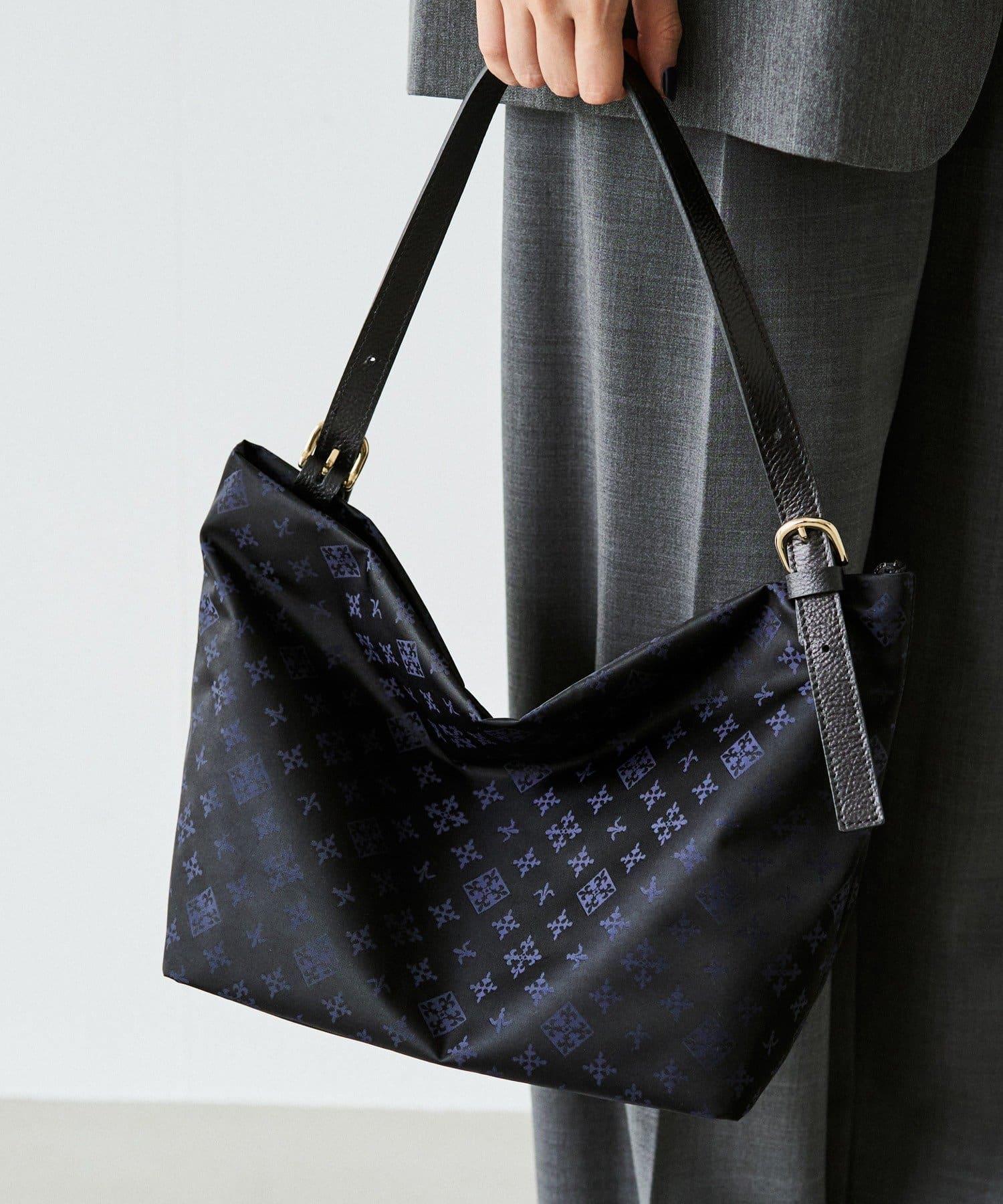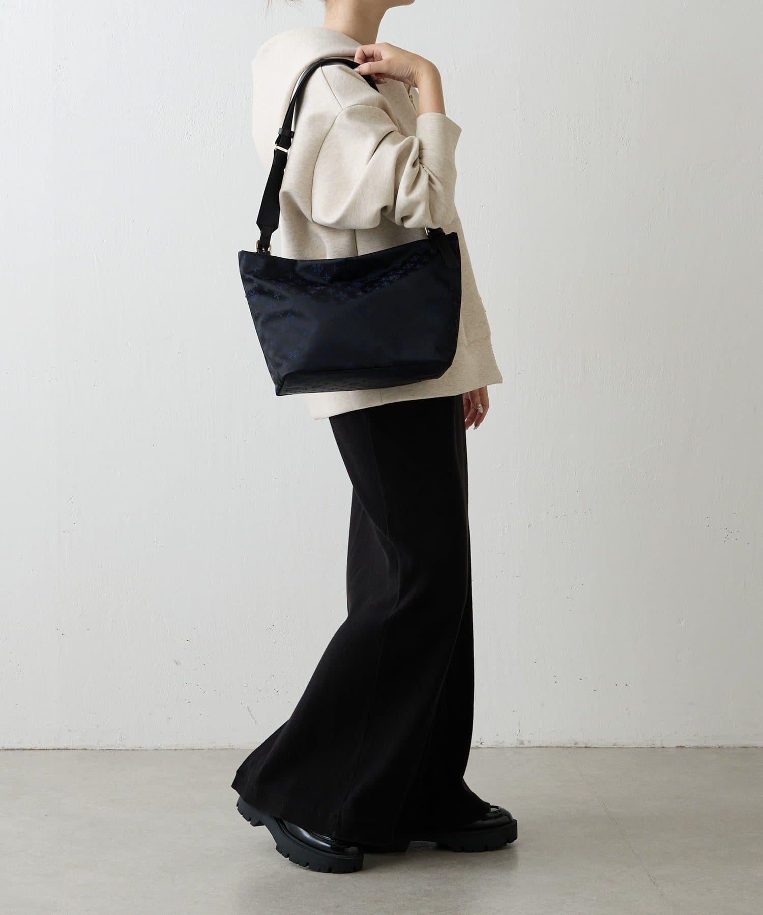 尼龍提花面料的雙向手提包,配以優雅的牛皮手柄。