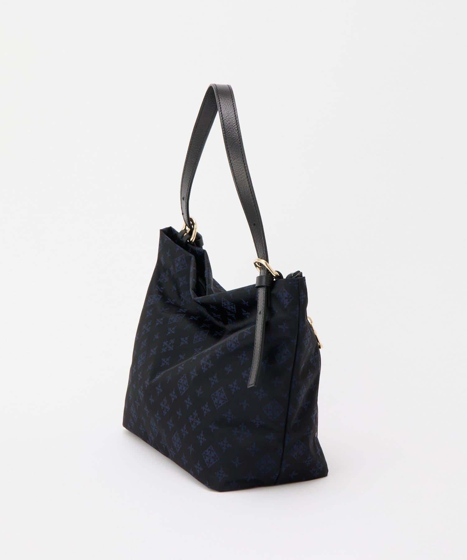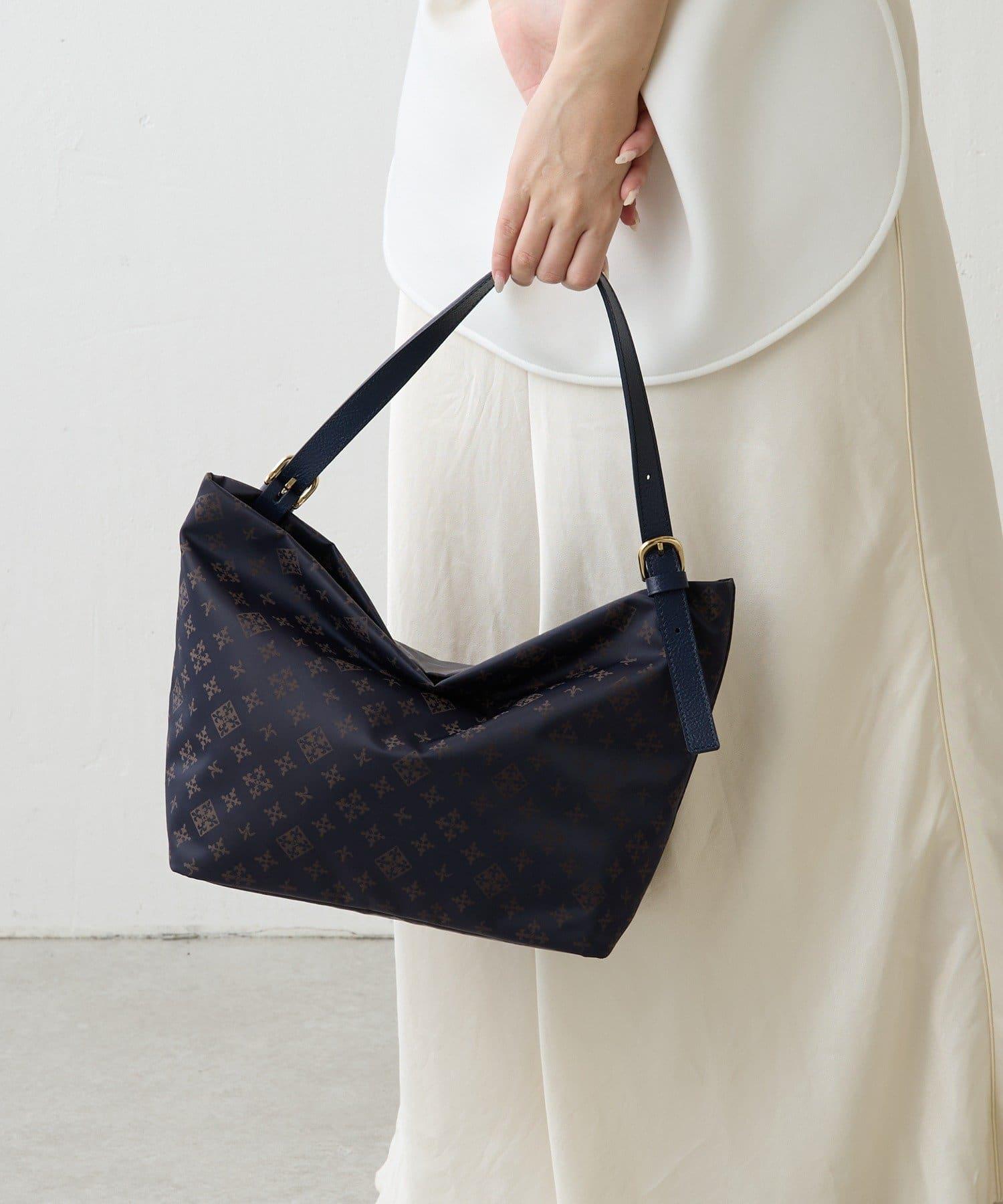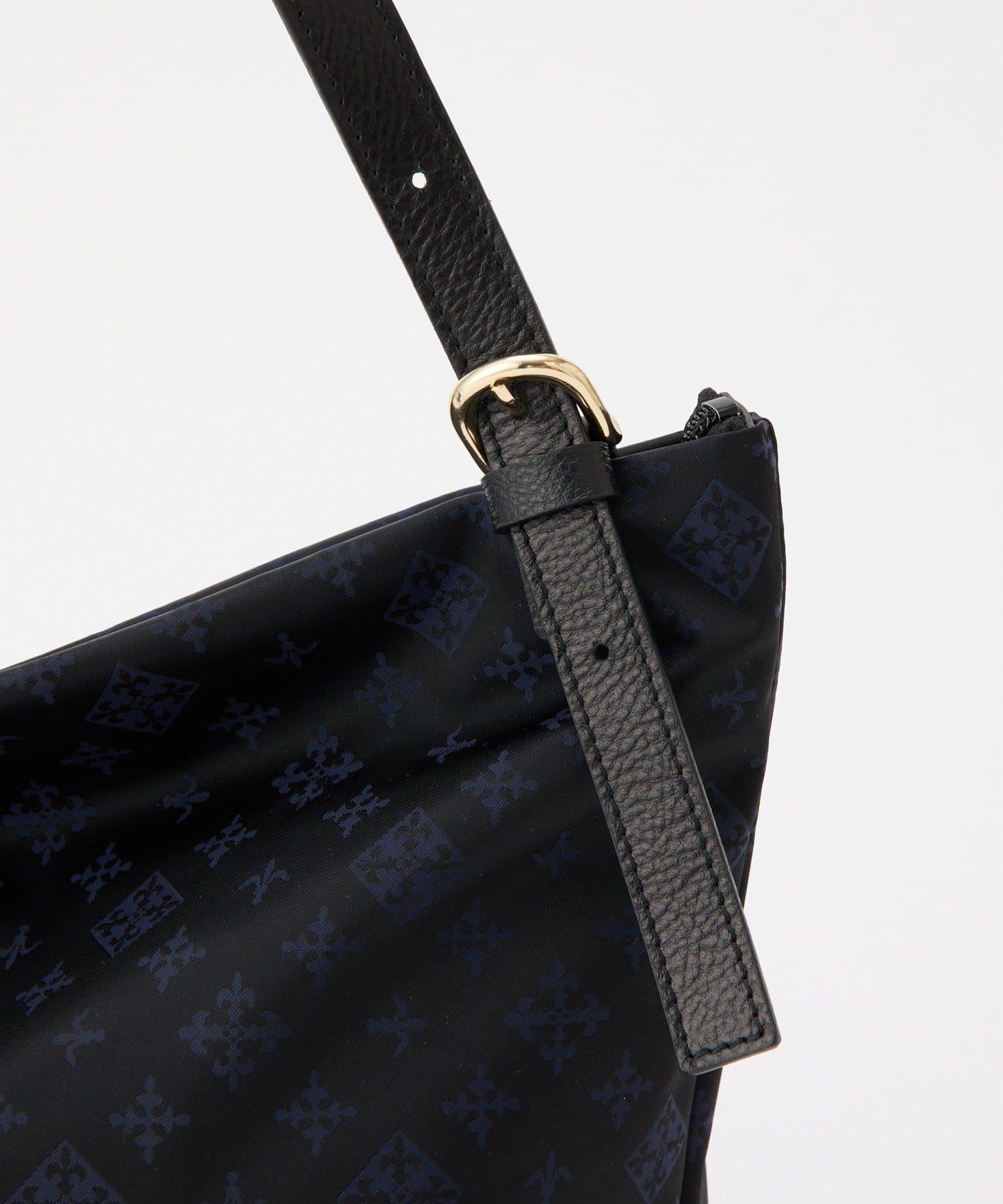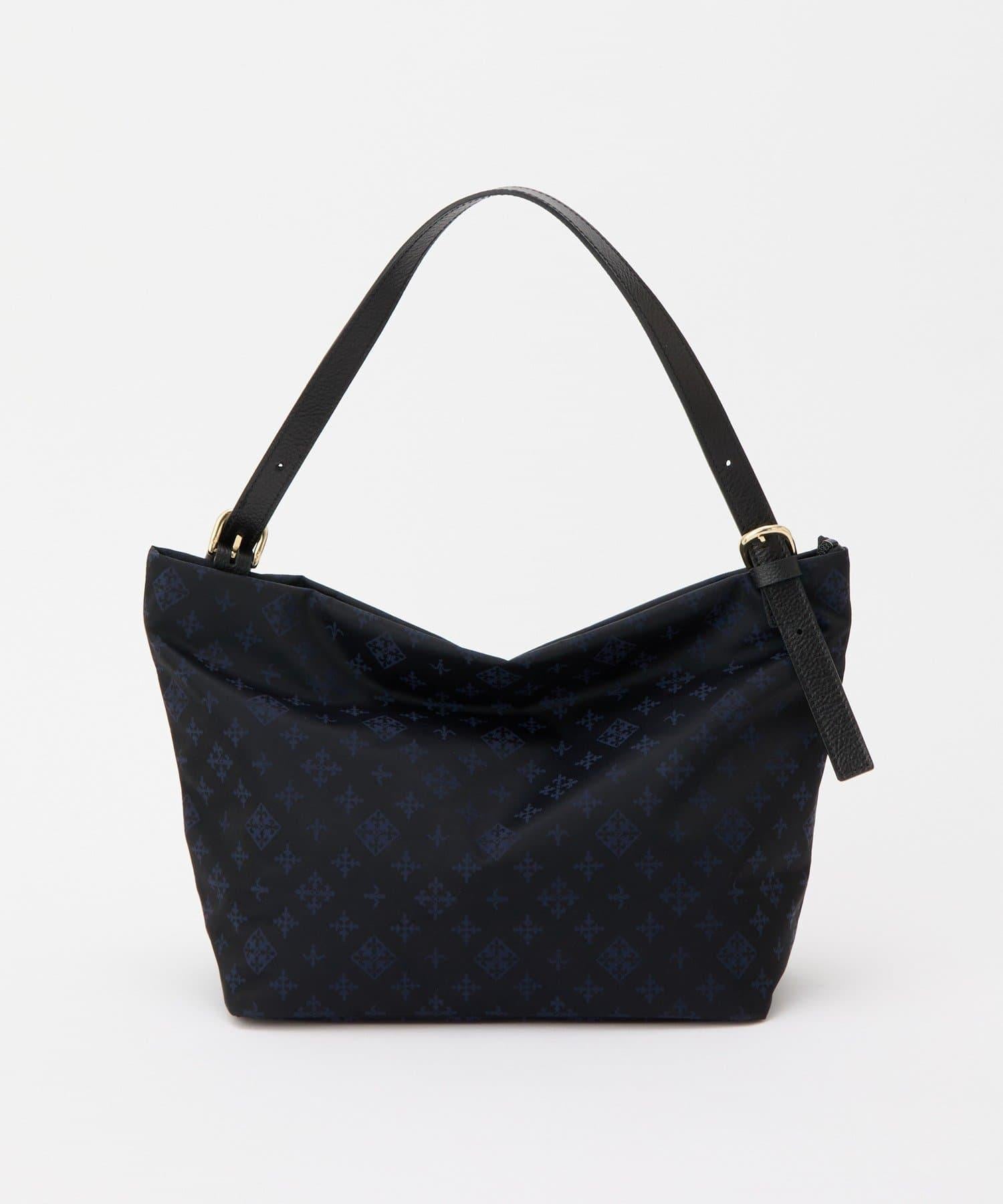 尼龍提花面料的雙向手提包,配以優雅的牛皮手柄。