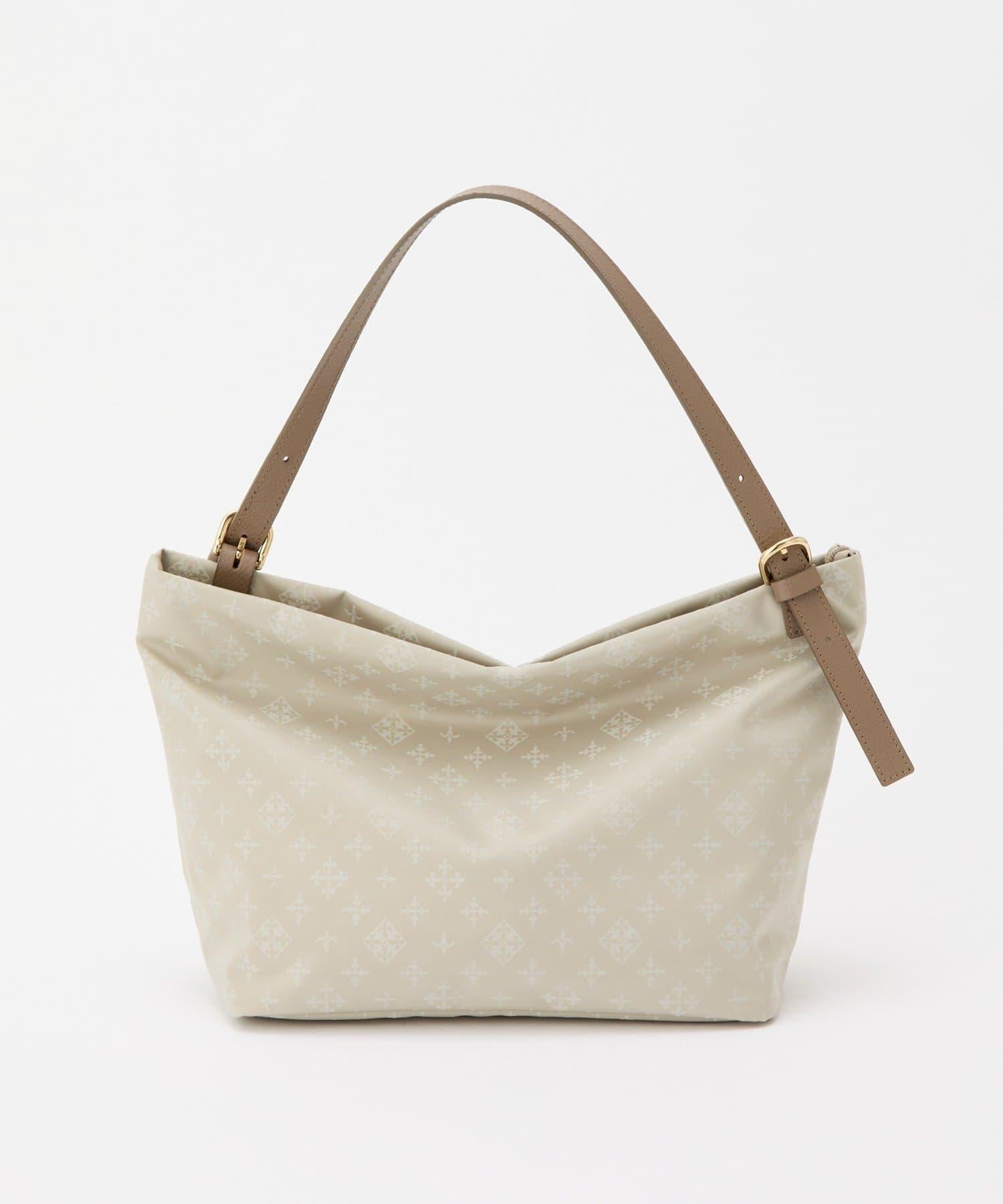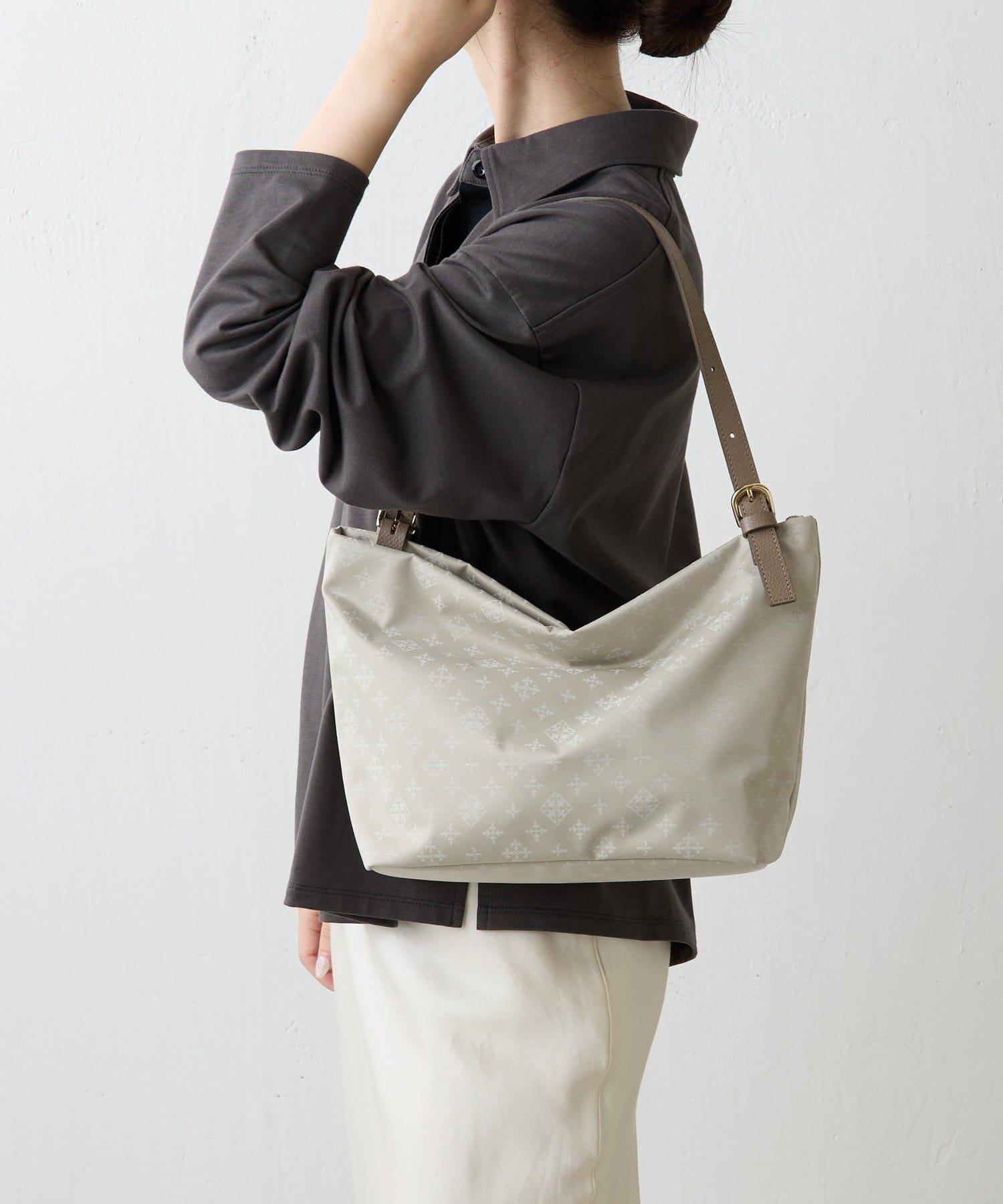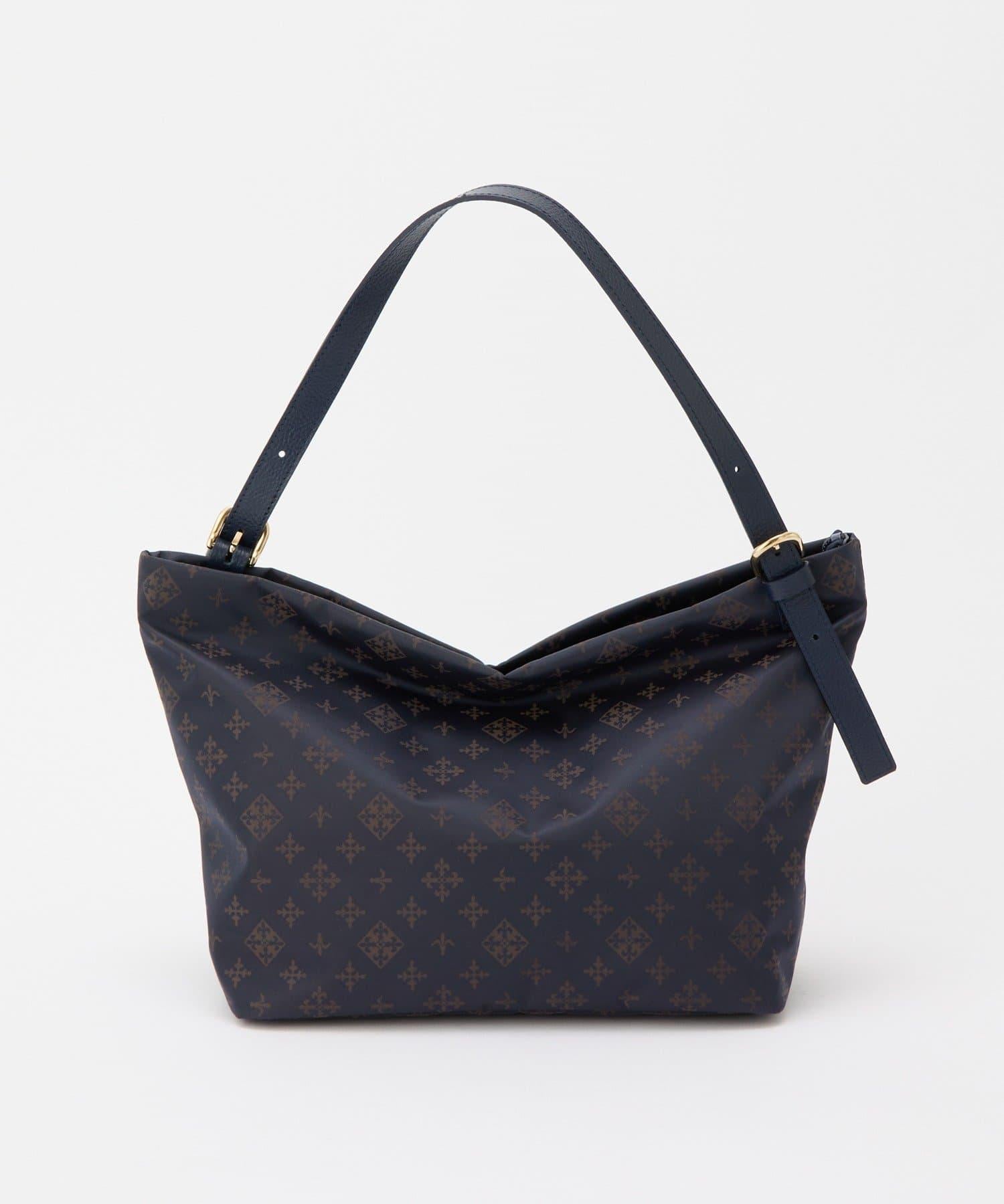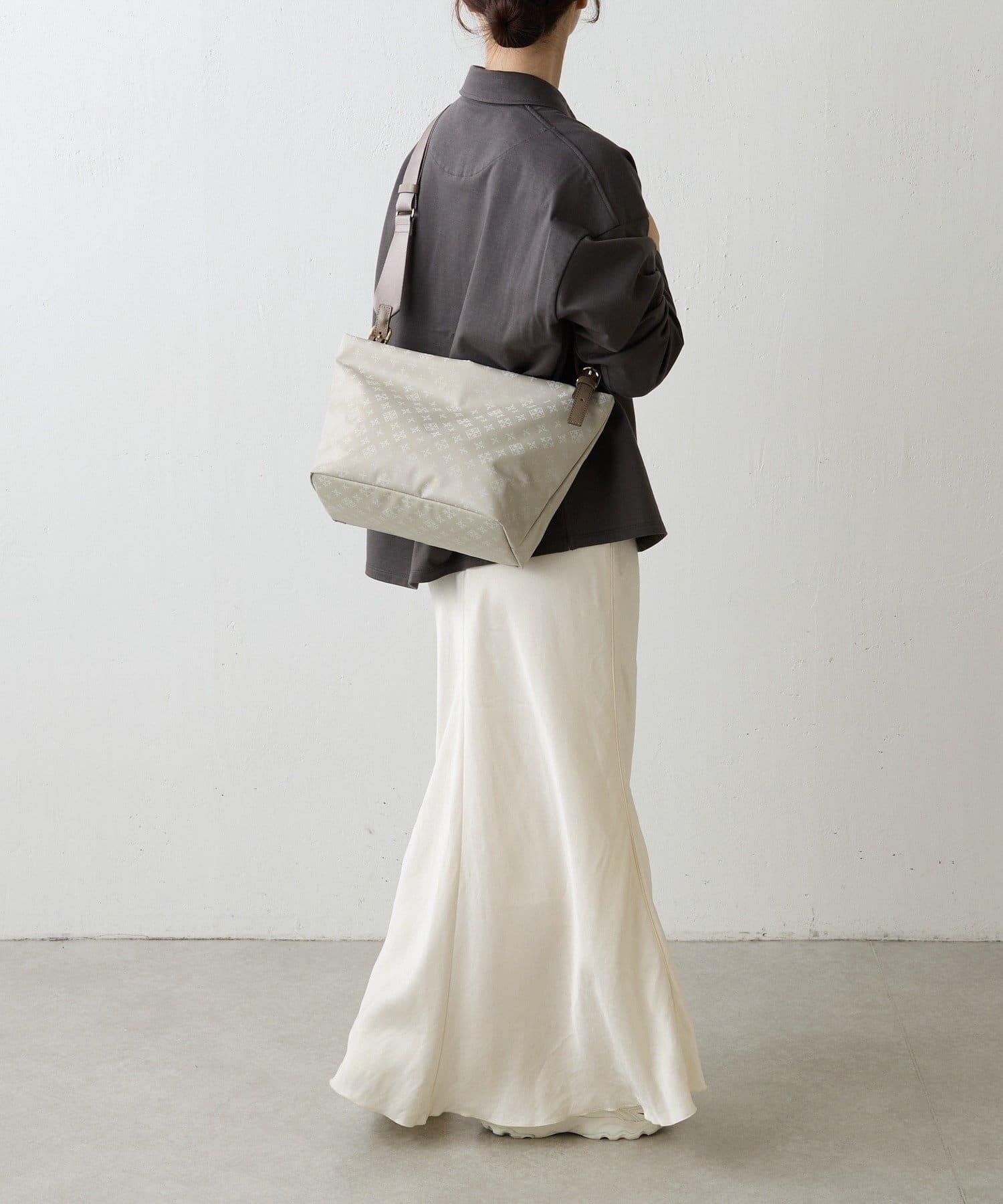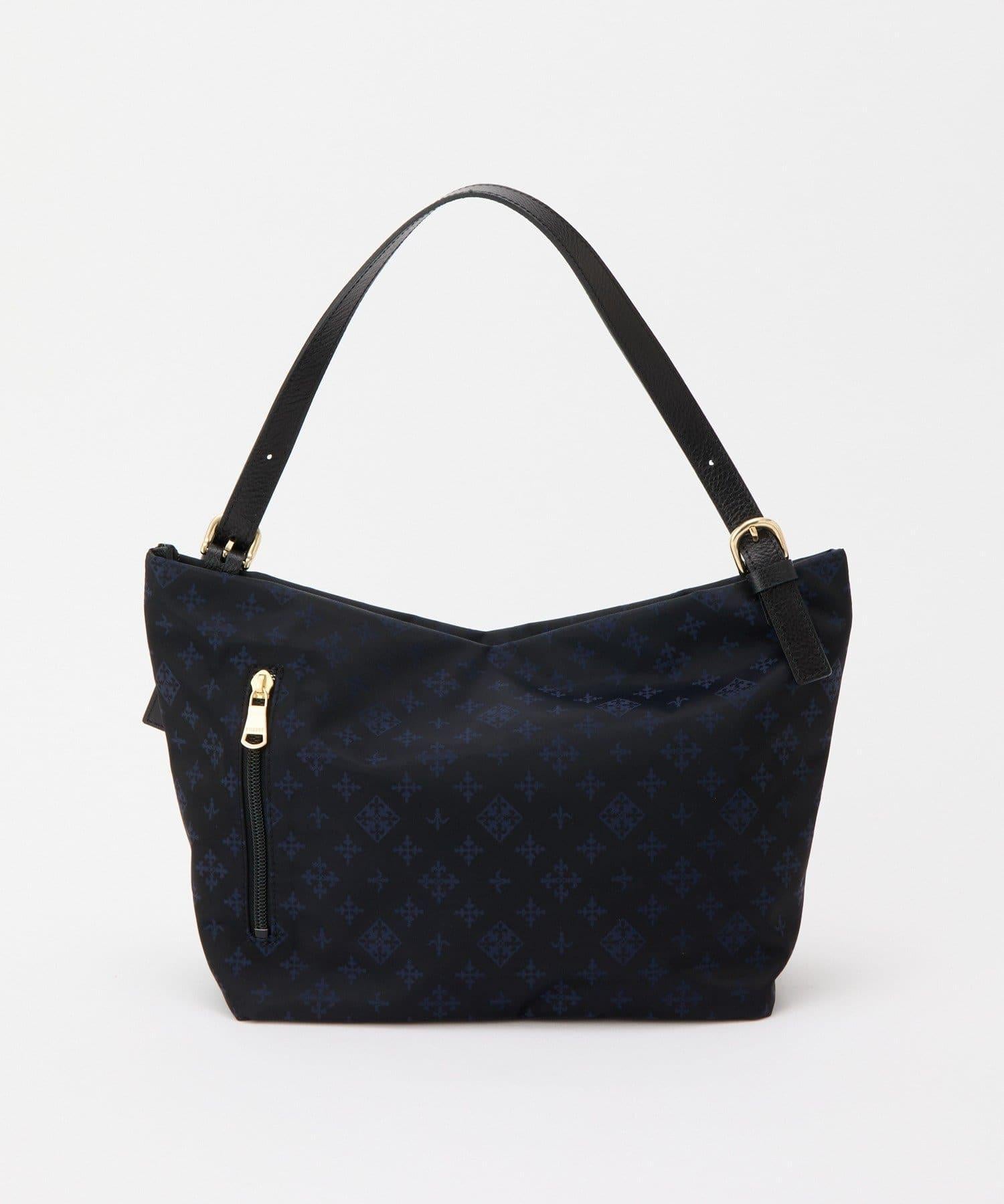 尼龍提花面料的雙向手提包,配以優雅的牛皮手柄。