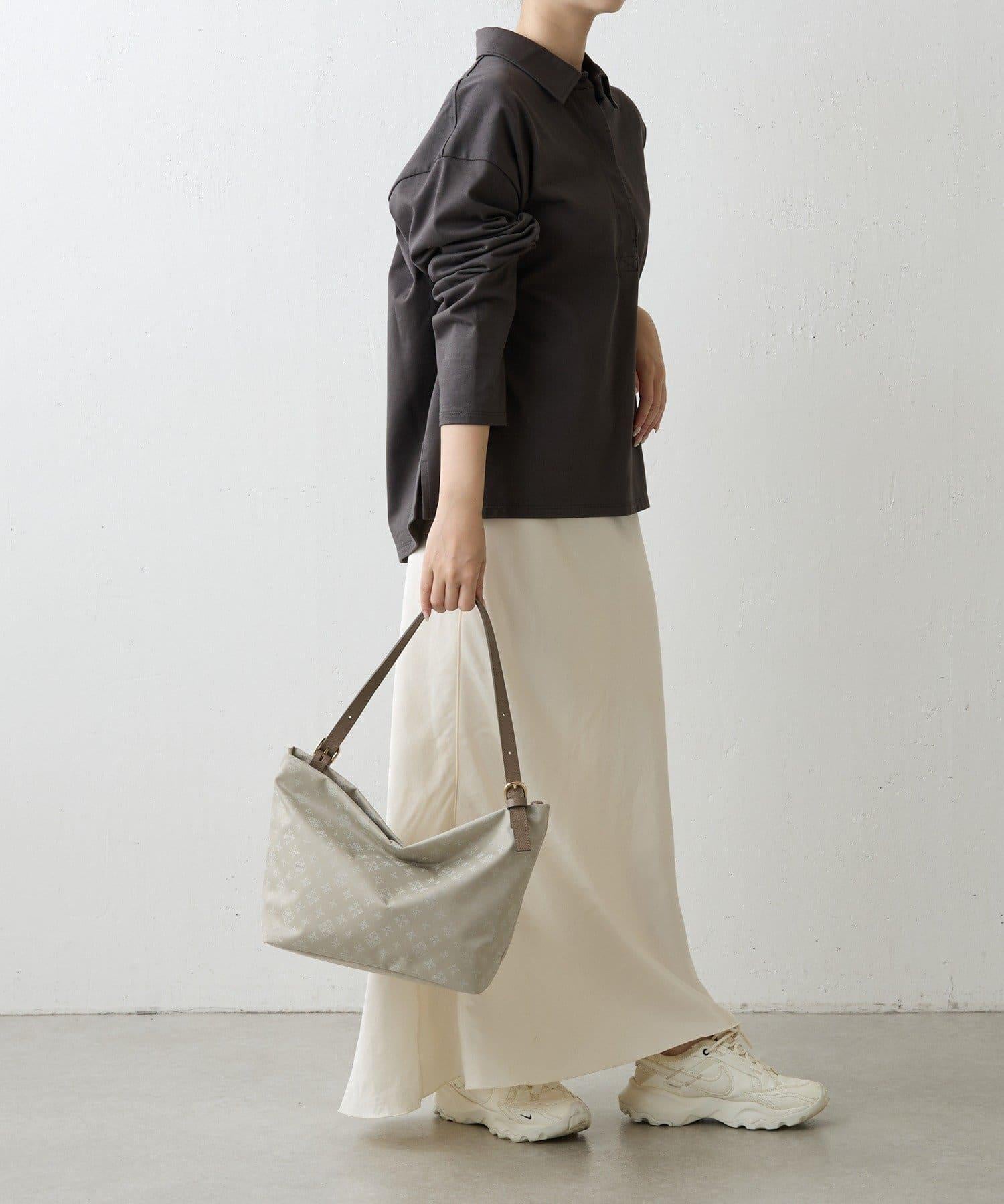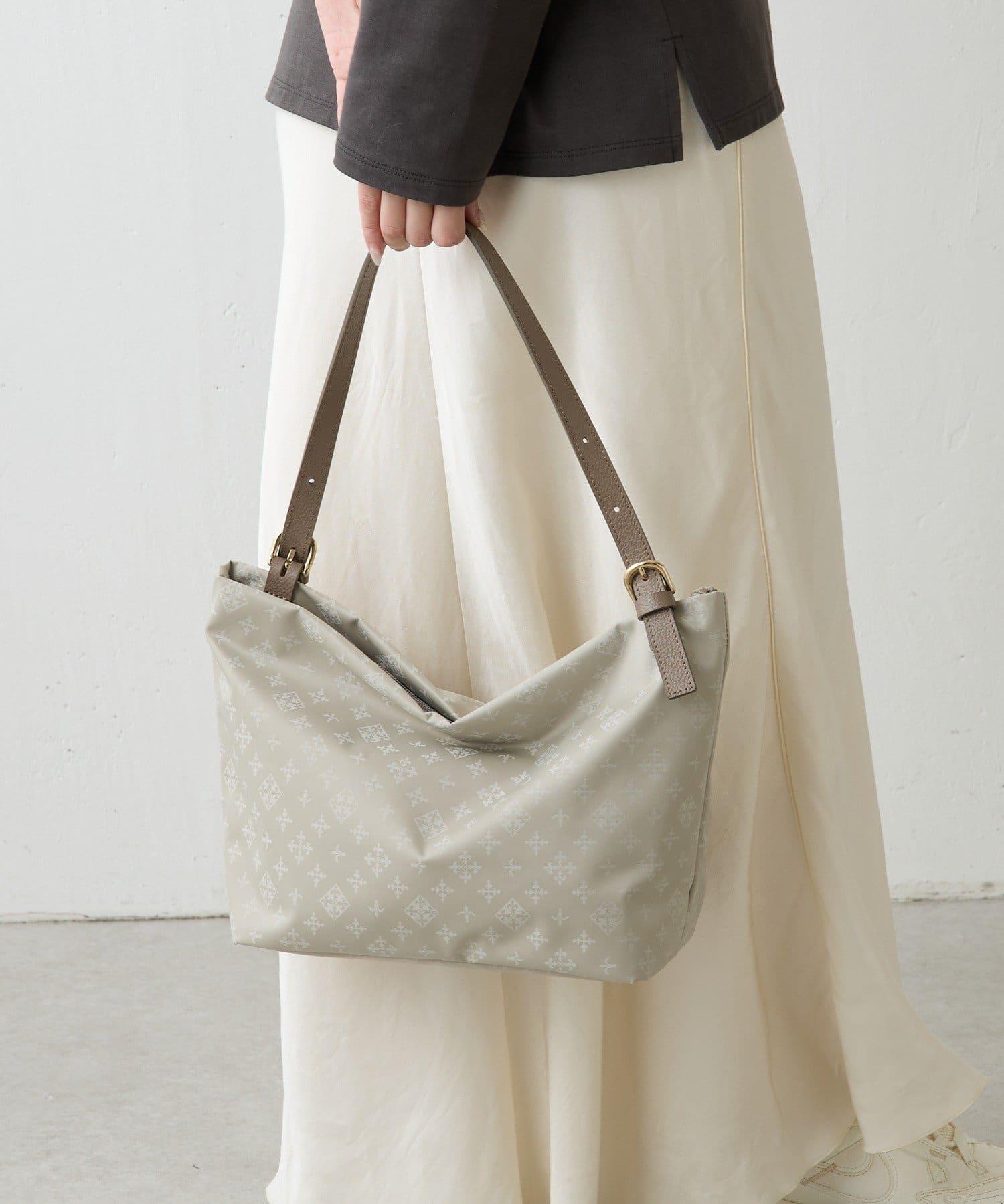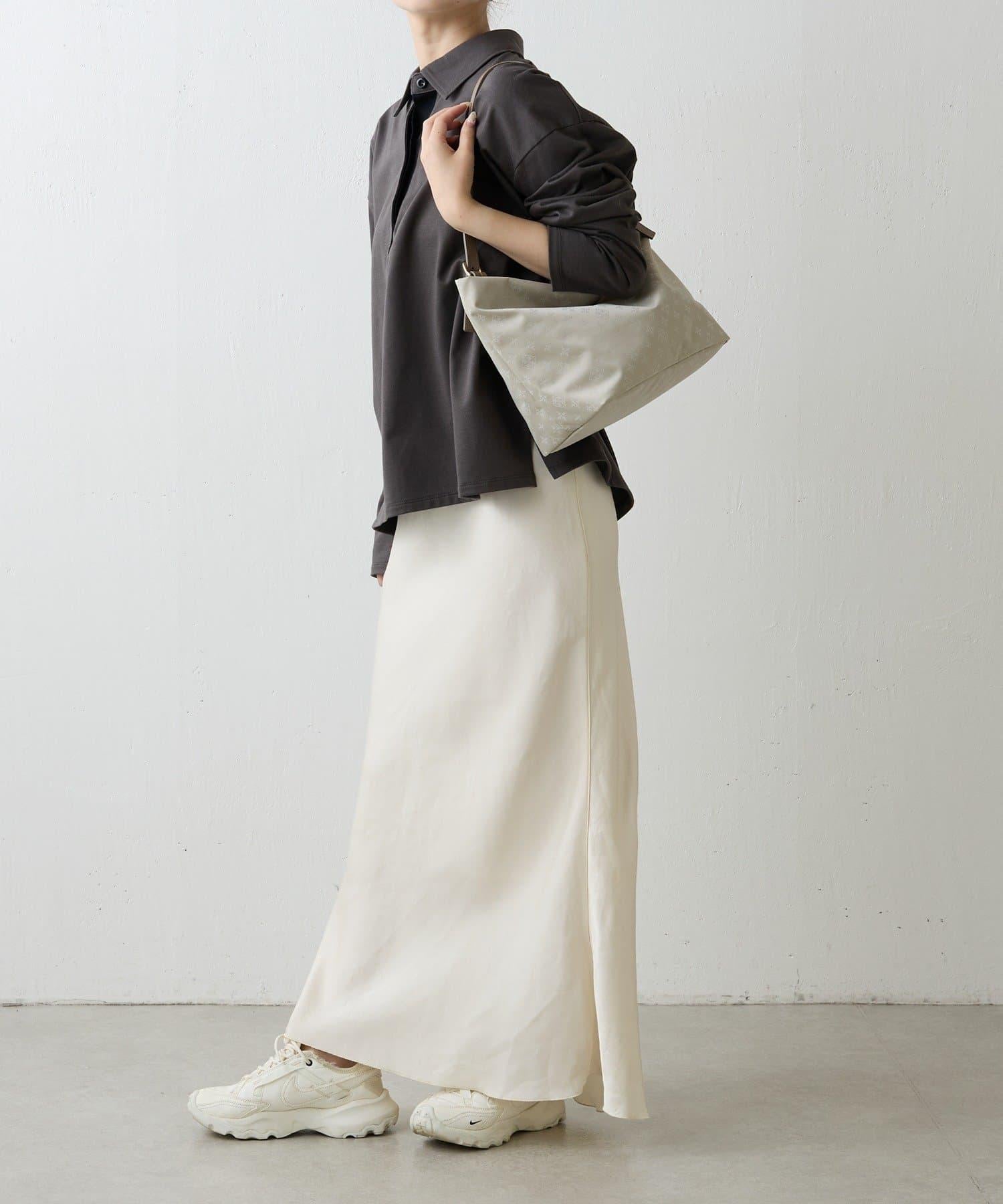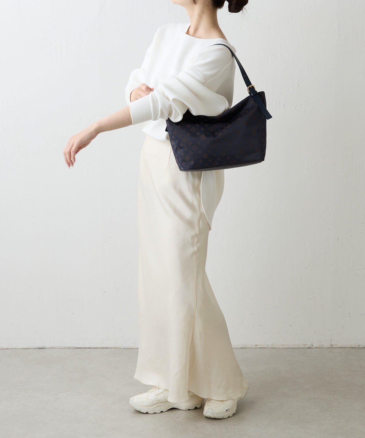 尼龍提花面料的雙向手提包,配以優雅的牛皮手柄。