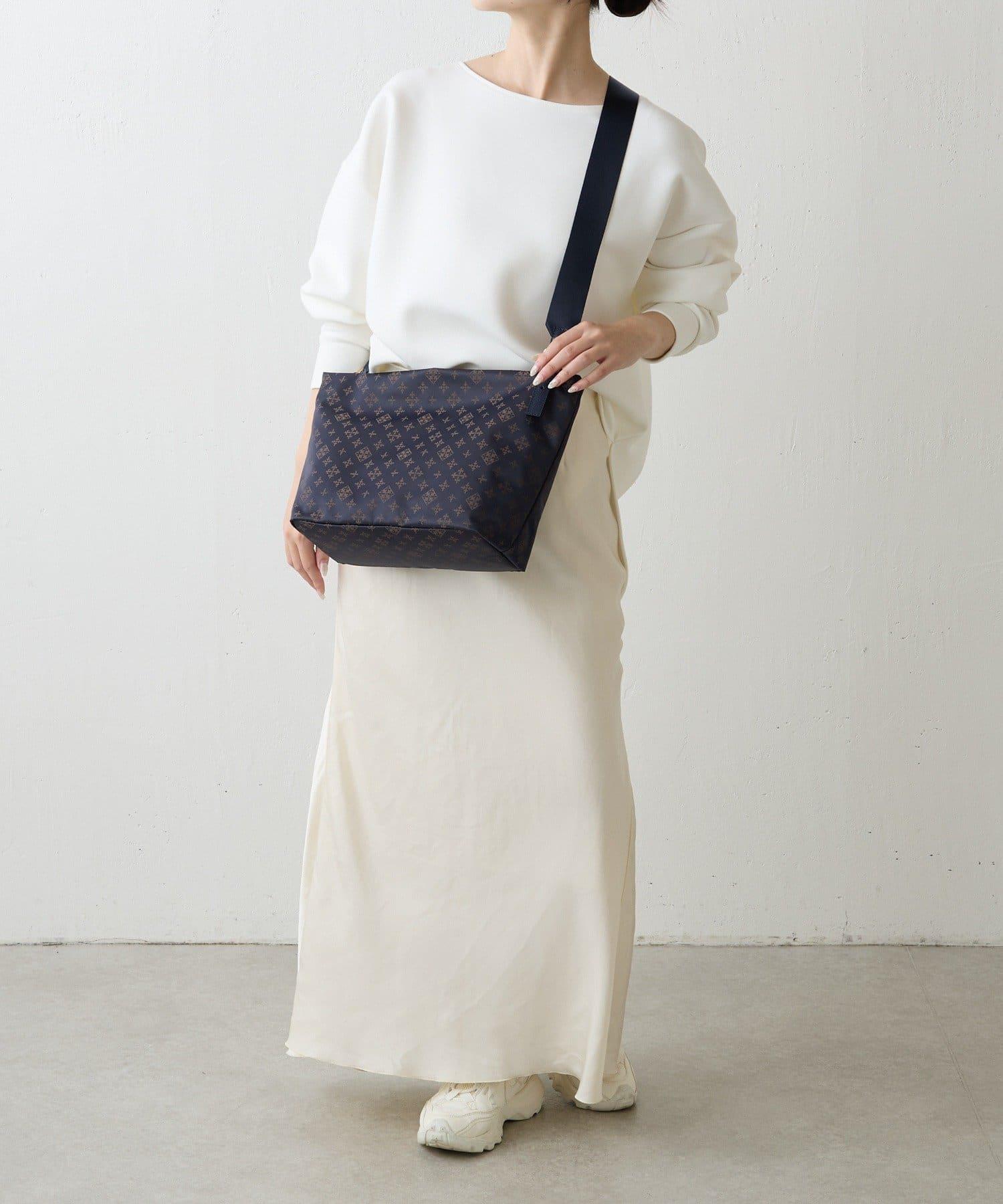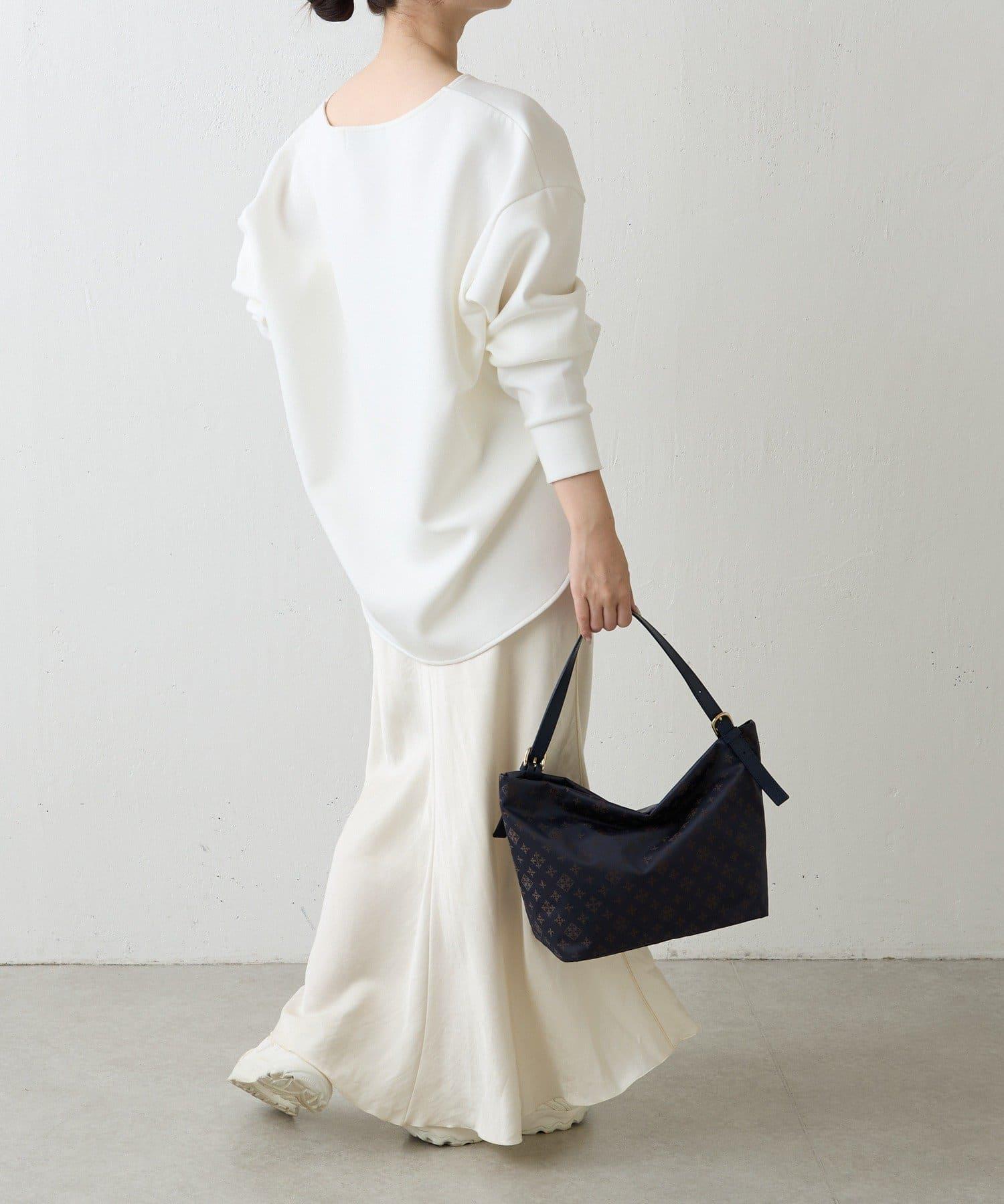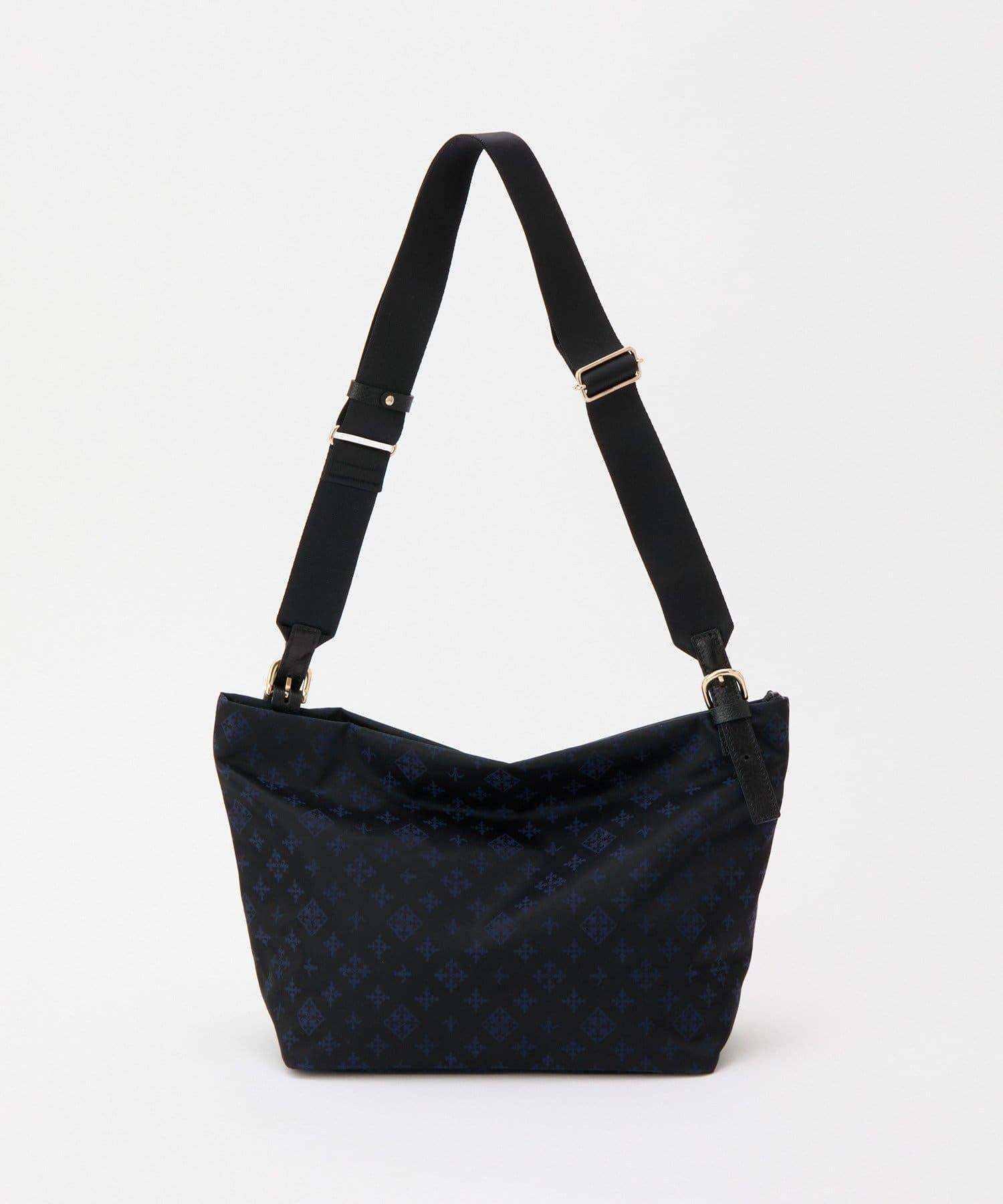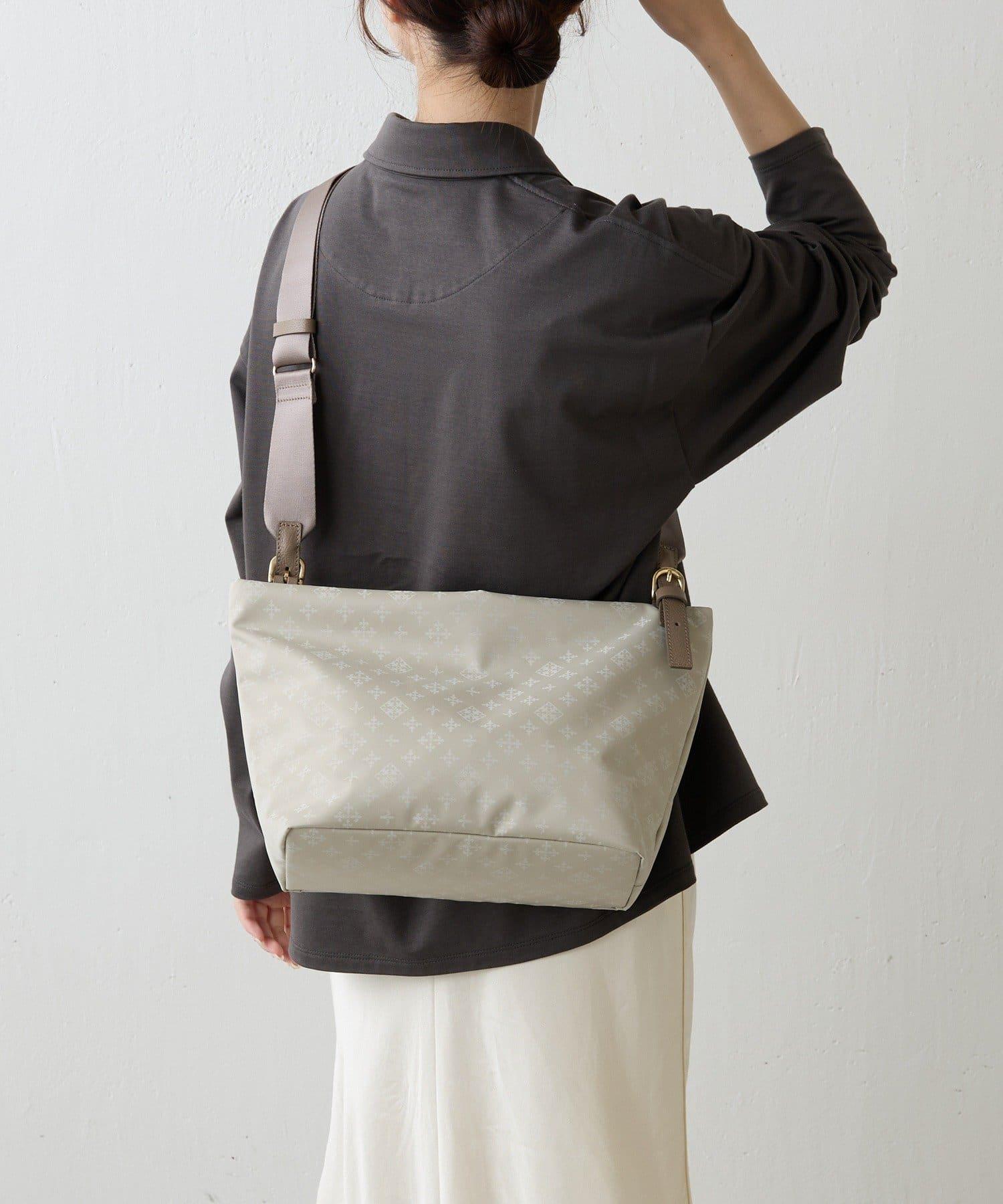 尼龍提花面料的雙向手提包,配以優雅的牛皮手柄。