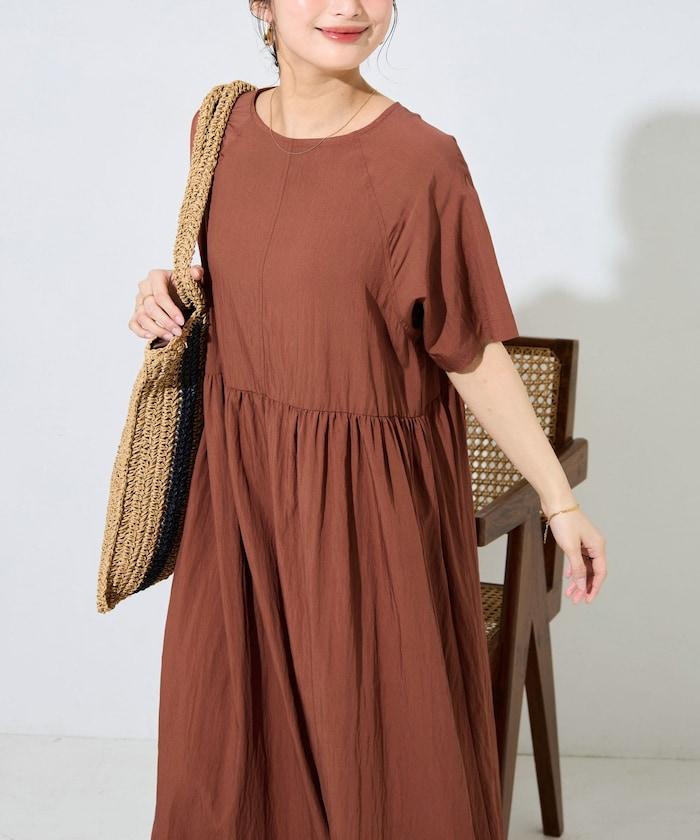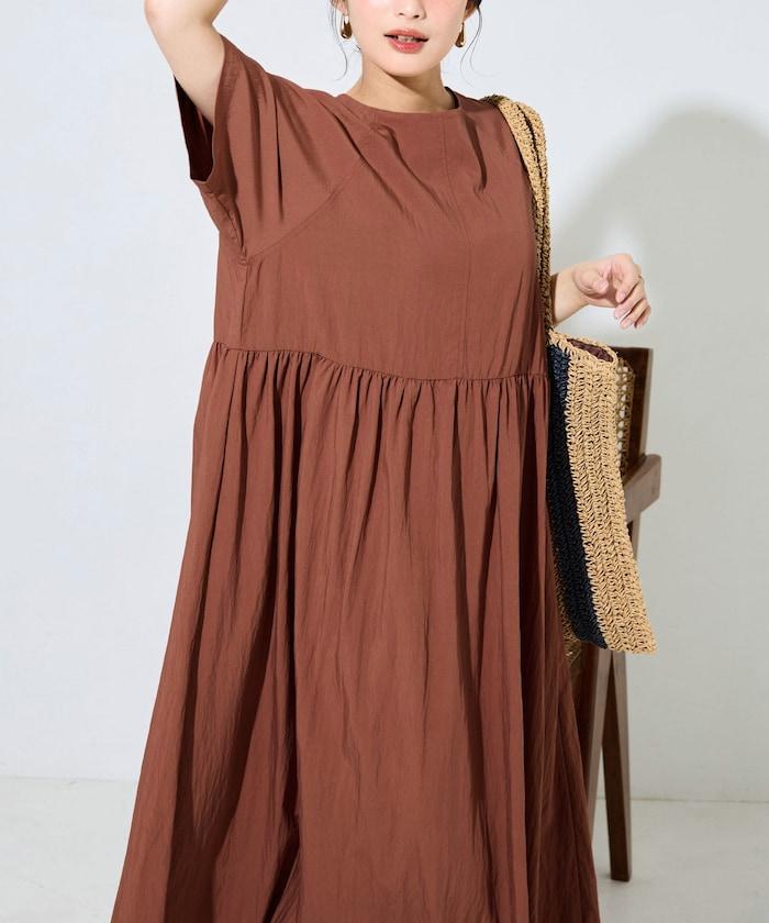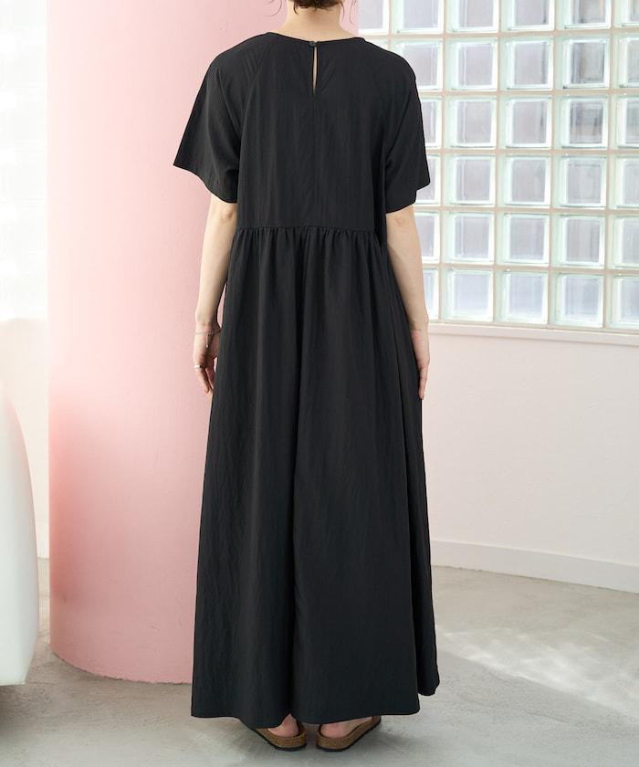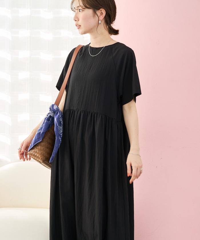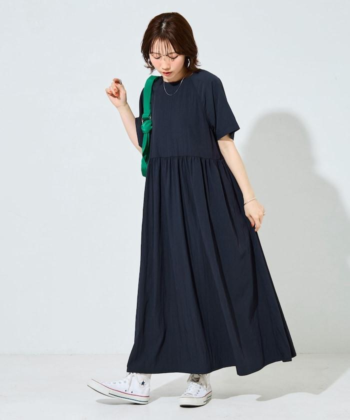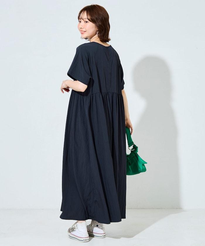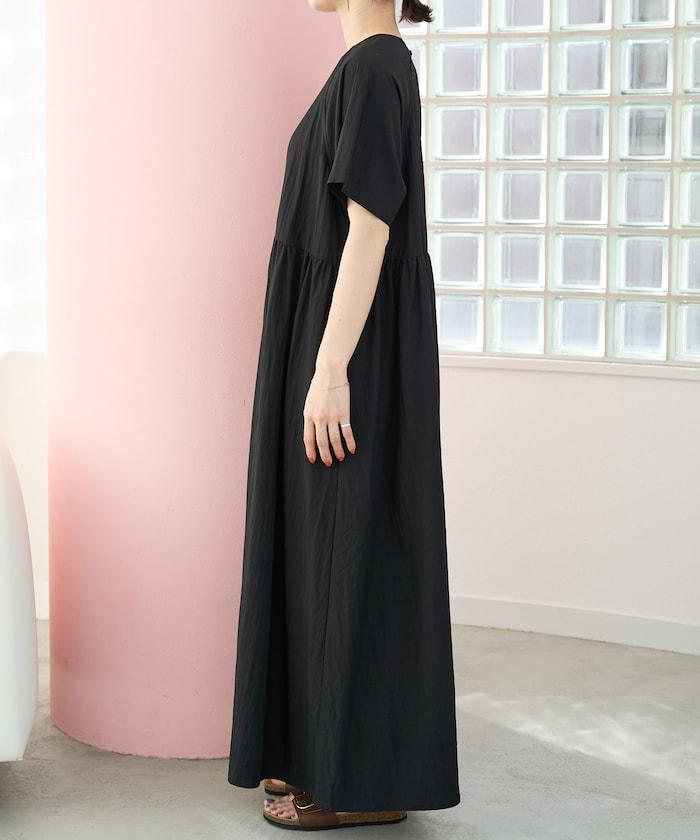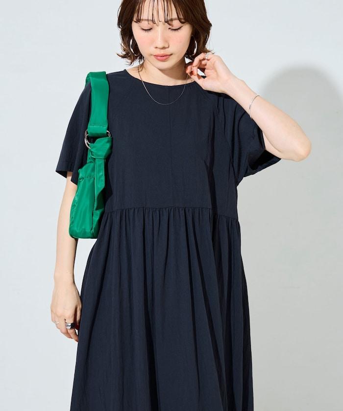 尼龍皺感 拼接層疊 輕盈面料 連衣裙
