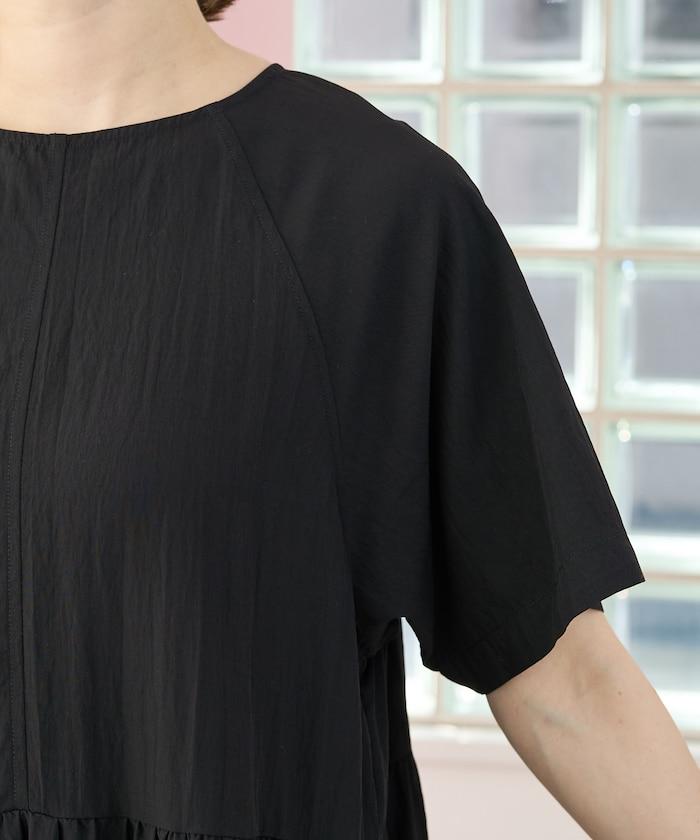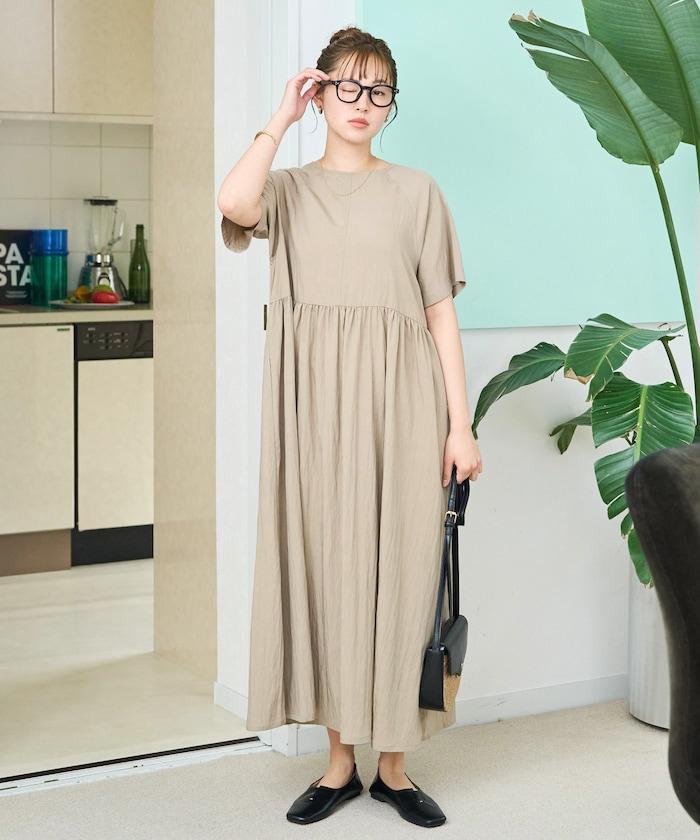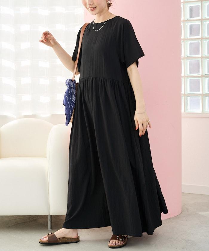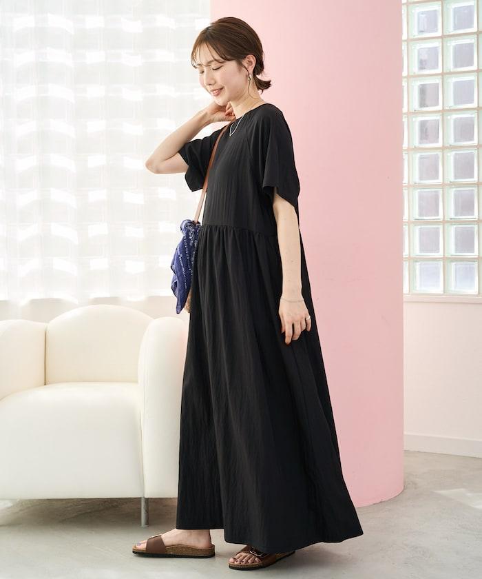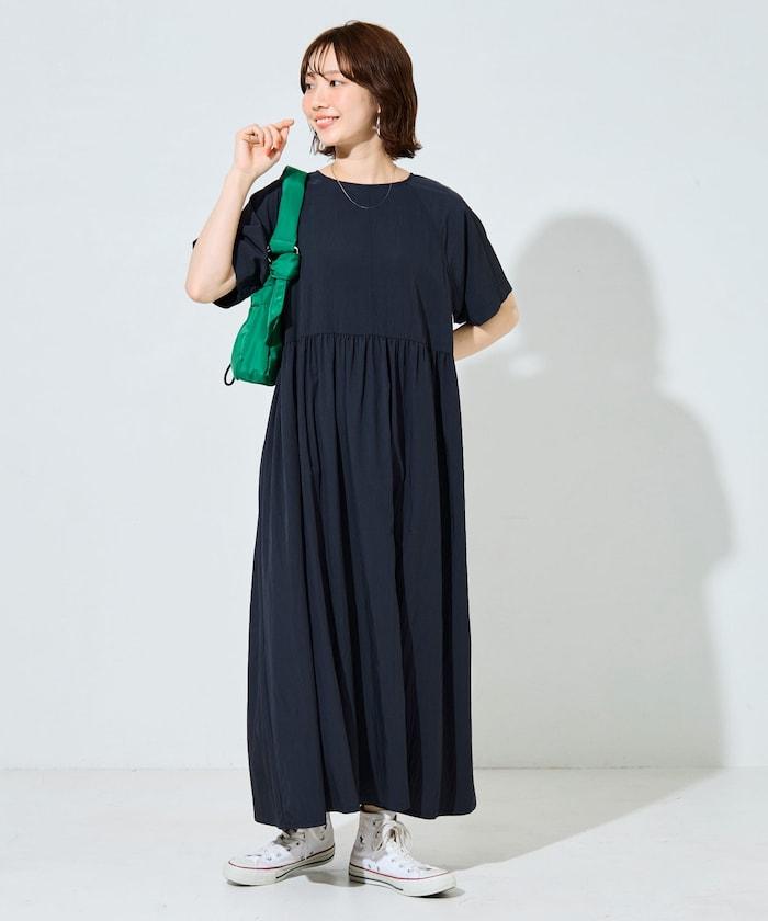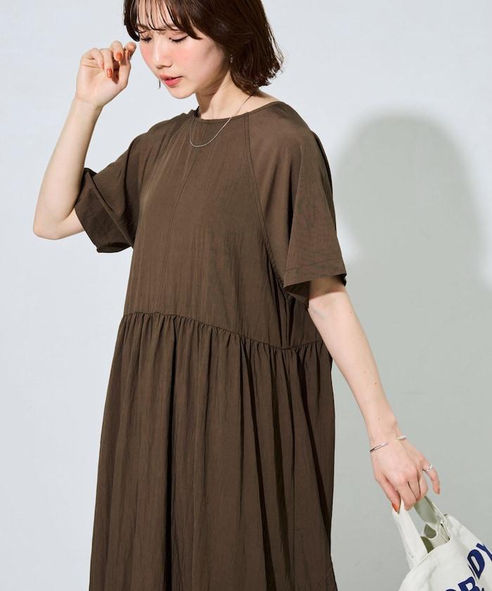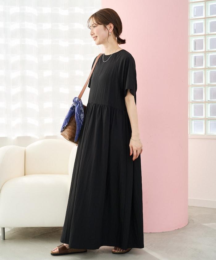 尼龍皺感 拼接層疊 輕盈面料 連衣裙