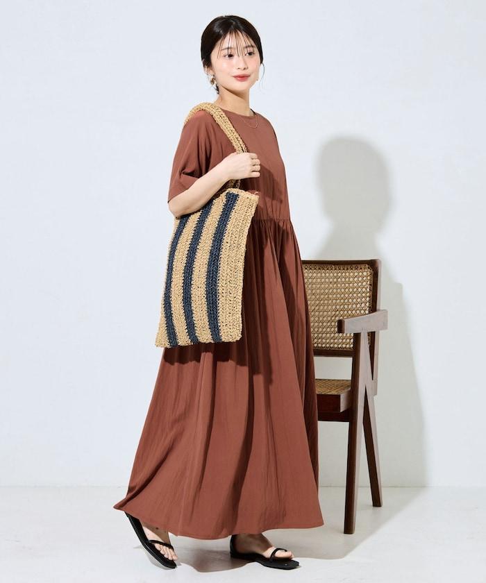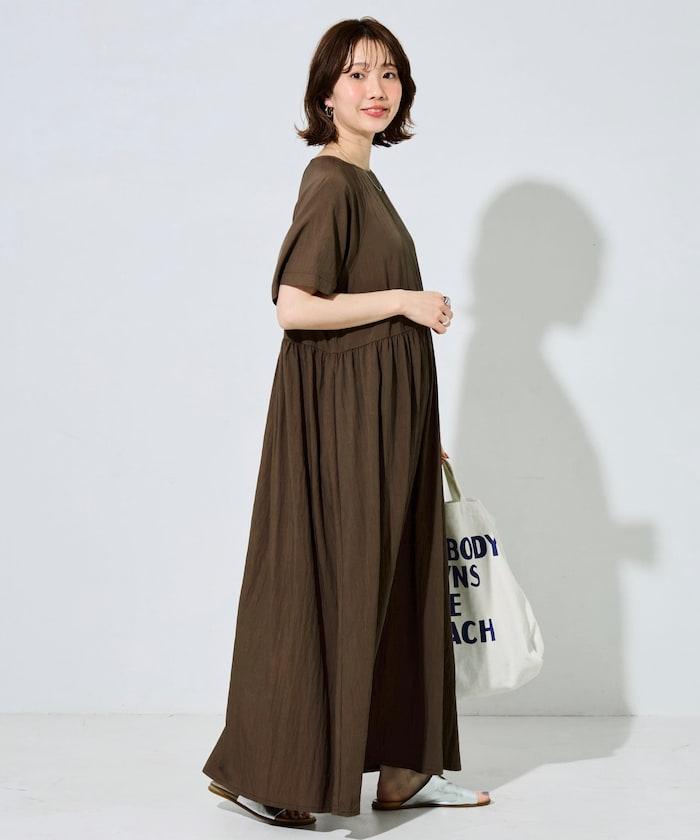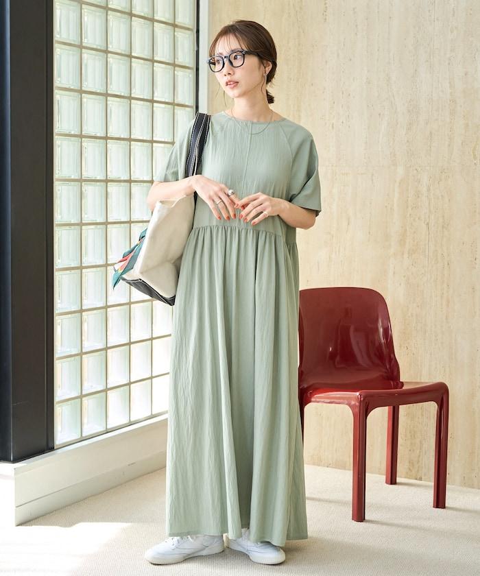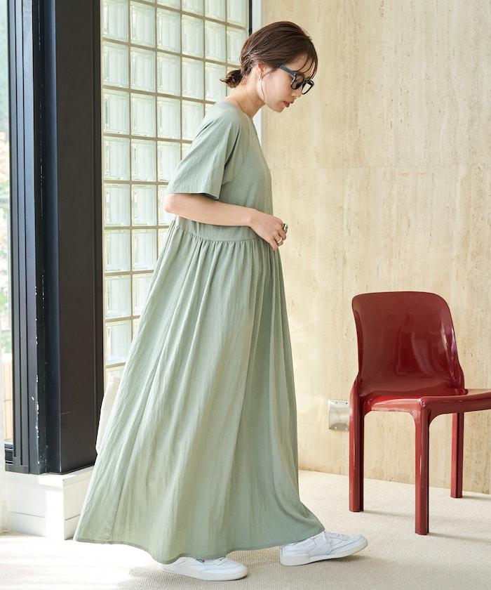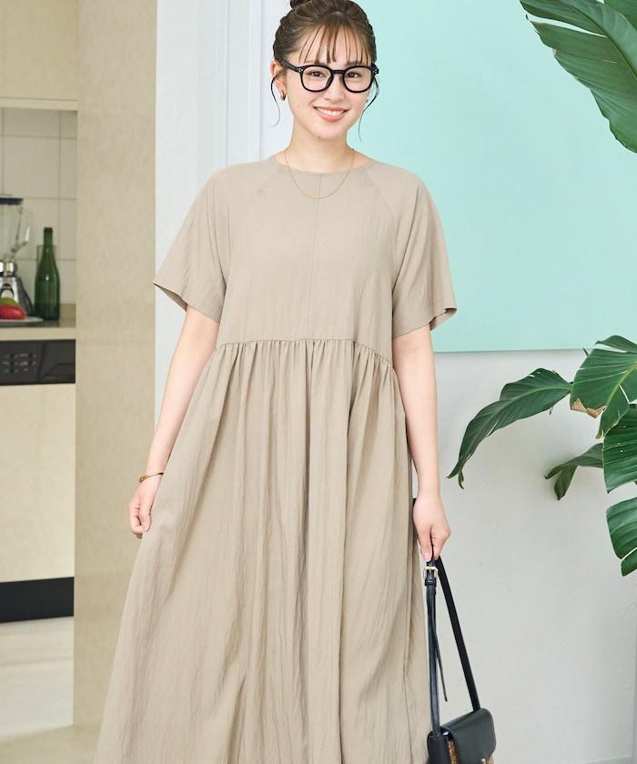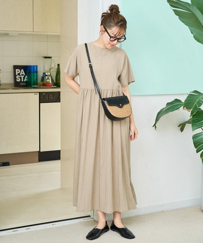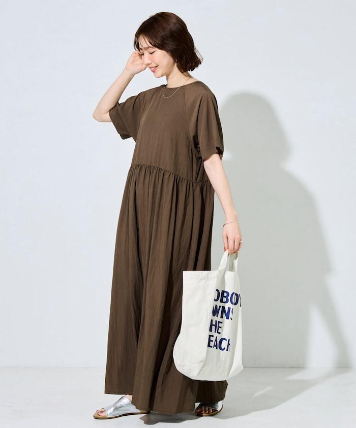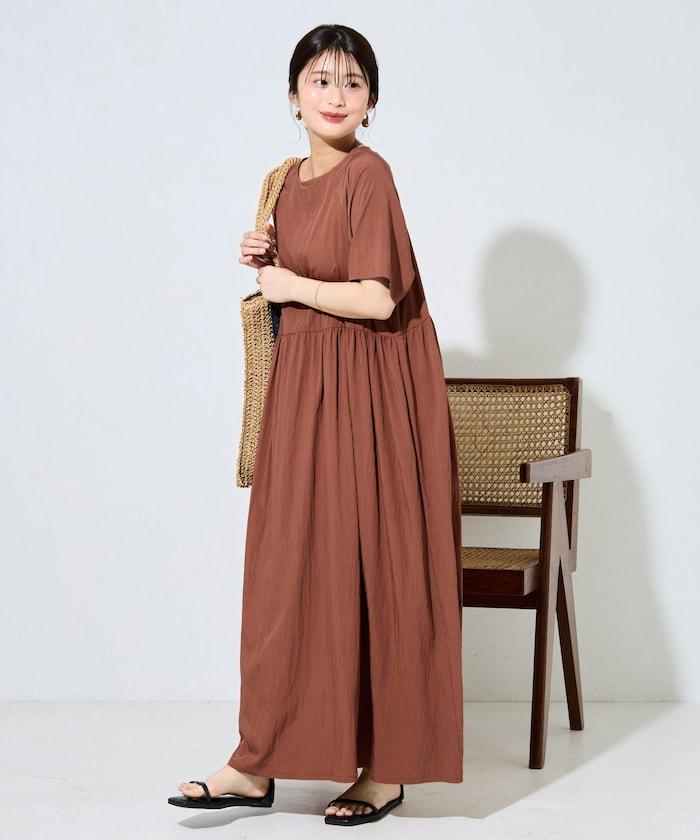 尼龍皺感 拼接層疊 輕盈面料 連衣裙