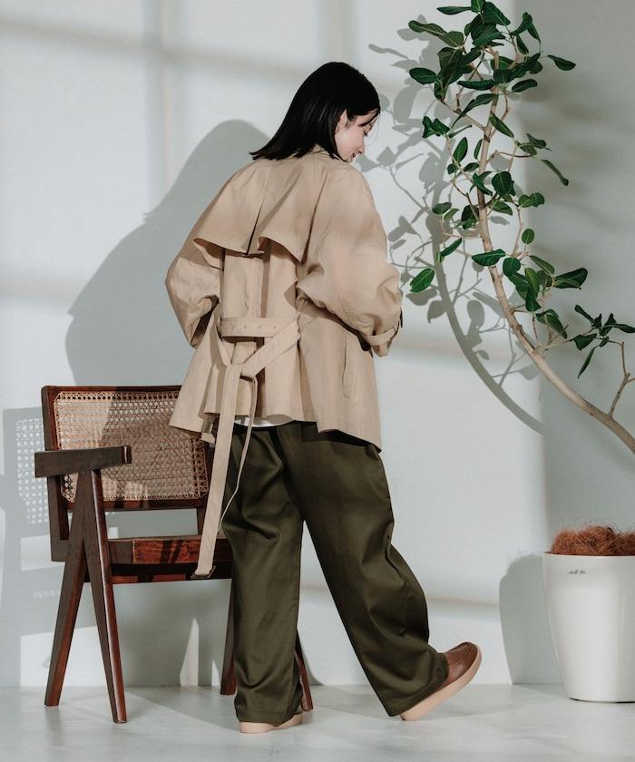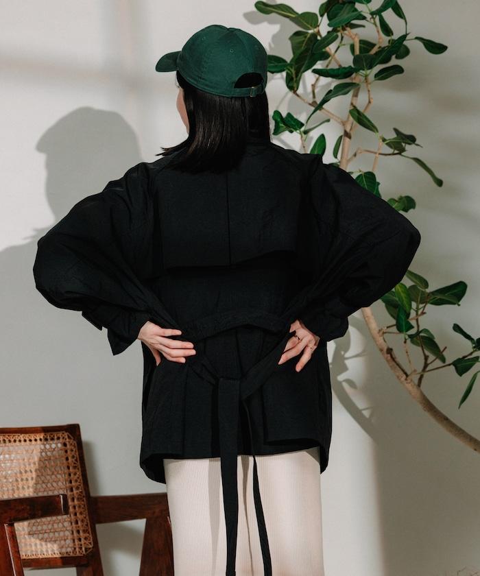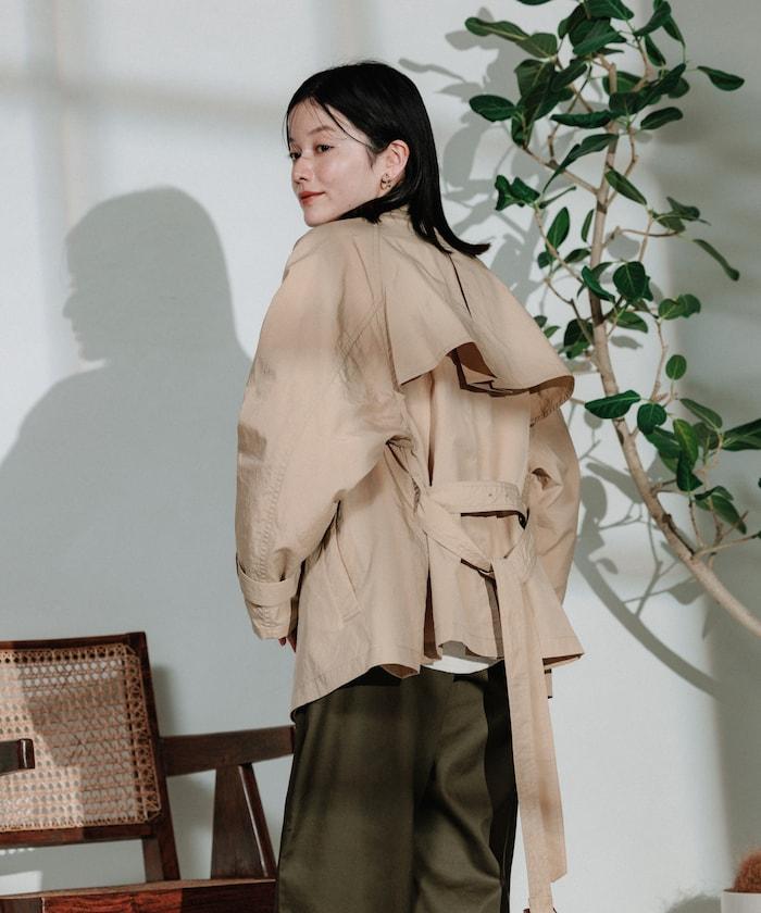 作為立領大衣,前襟收起時也會給人帥氣的印象。