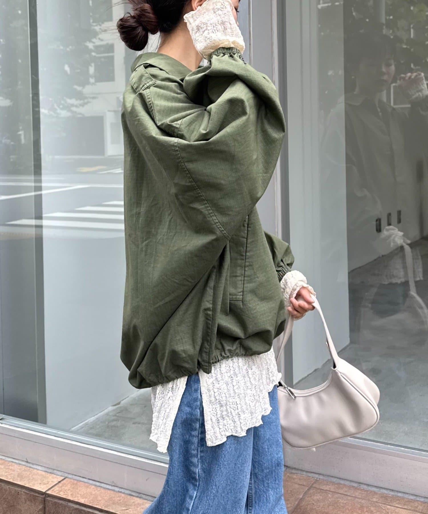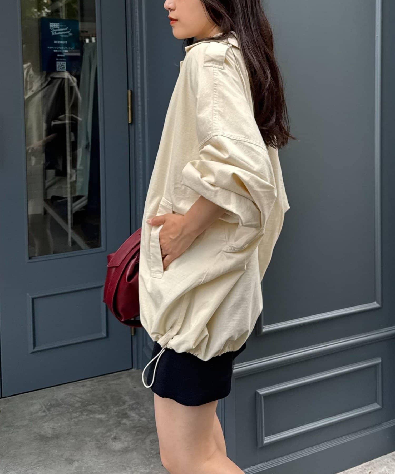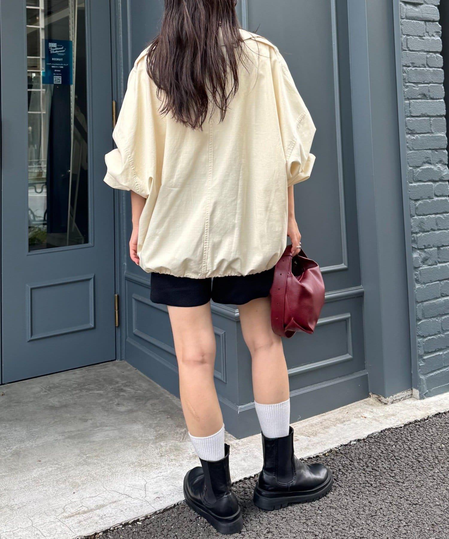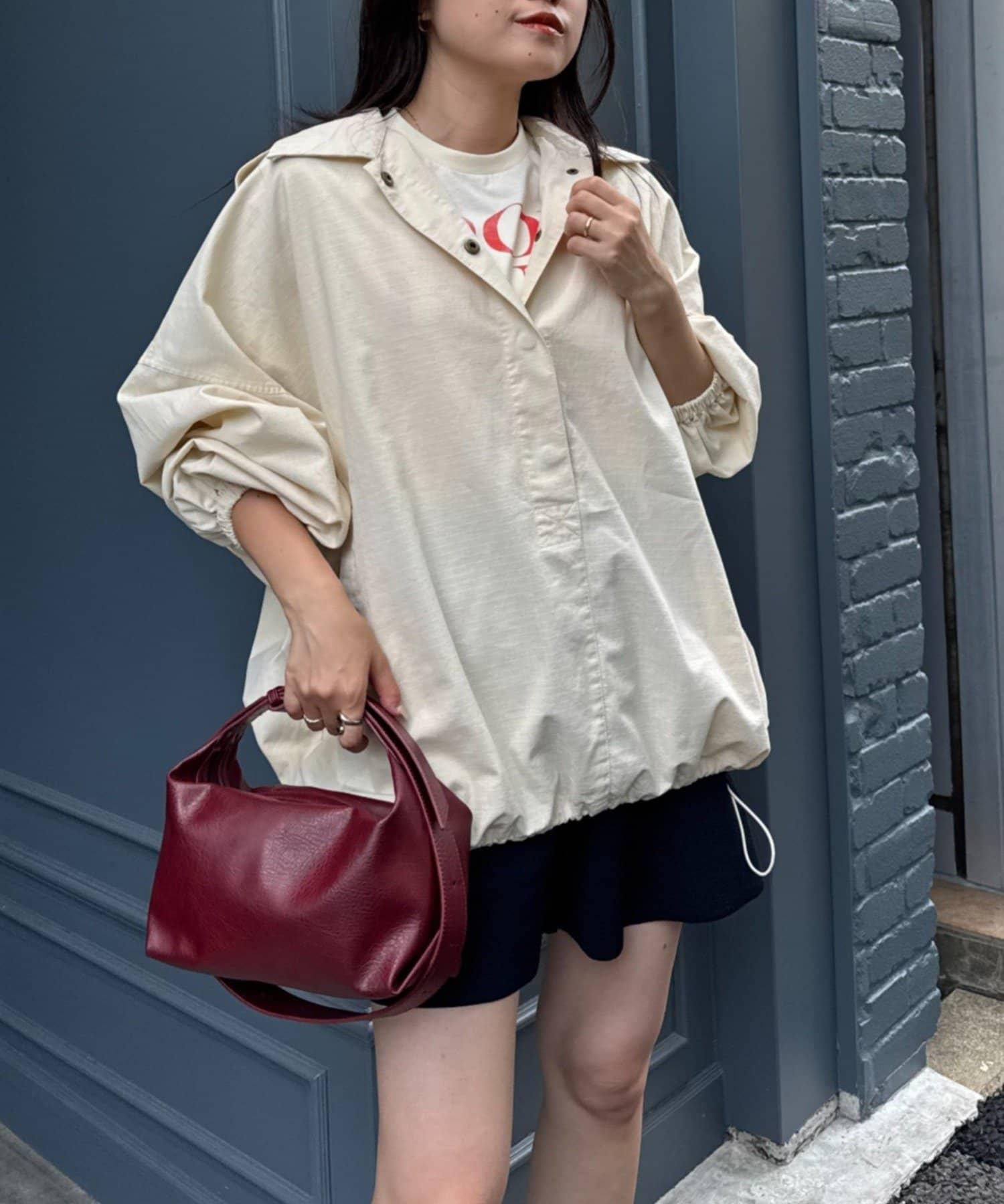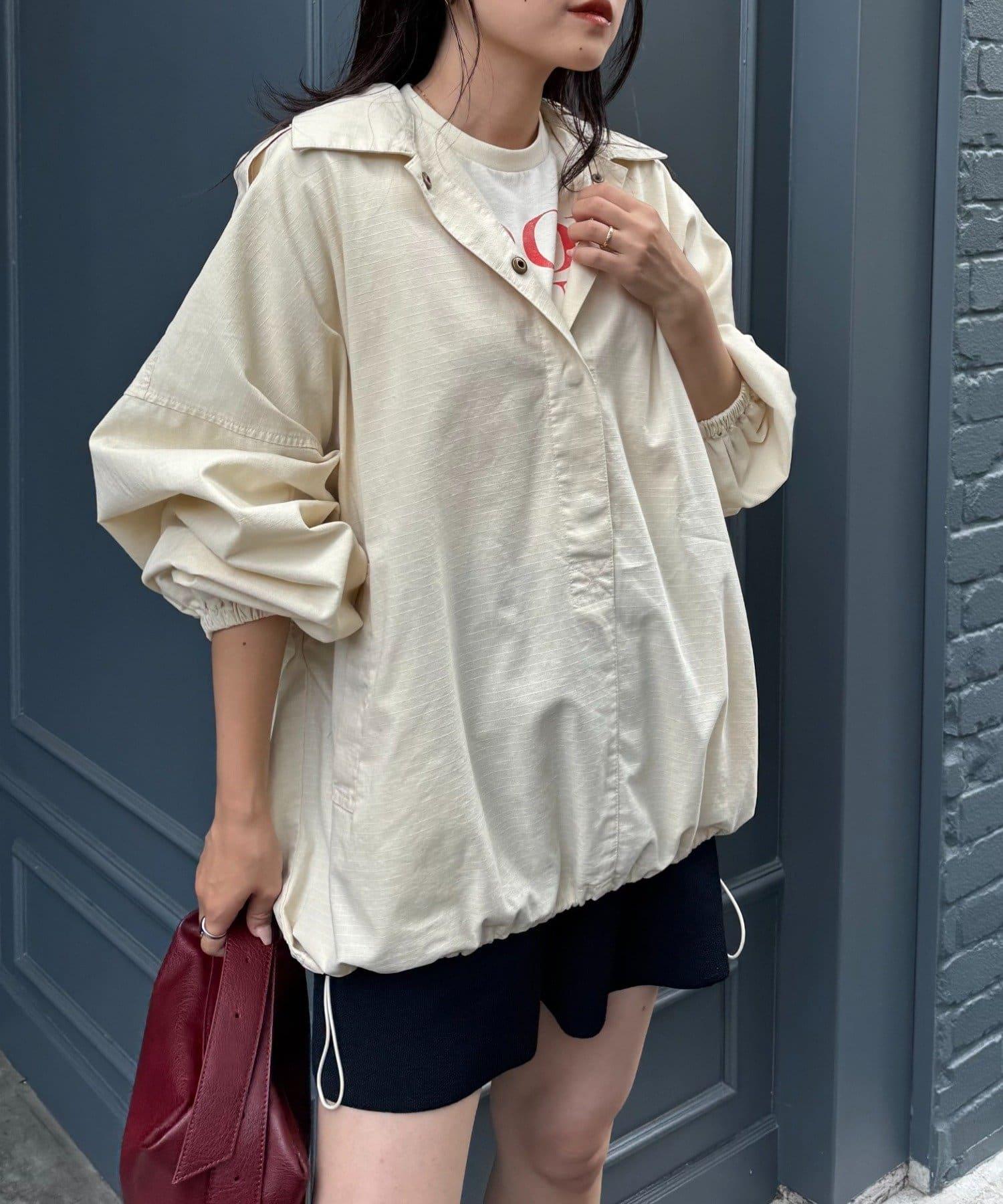 寬鬆的剪裁和攏起的袖口營造出柔軟蓬鬆的體積感,營造出舒適的氛圍。