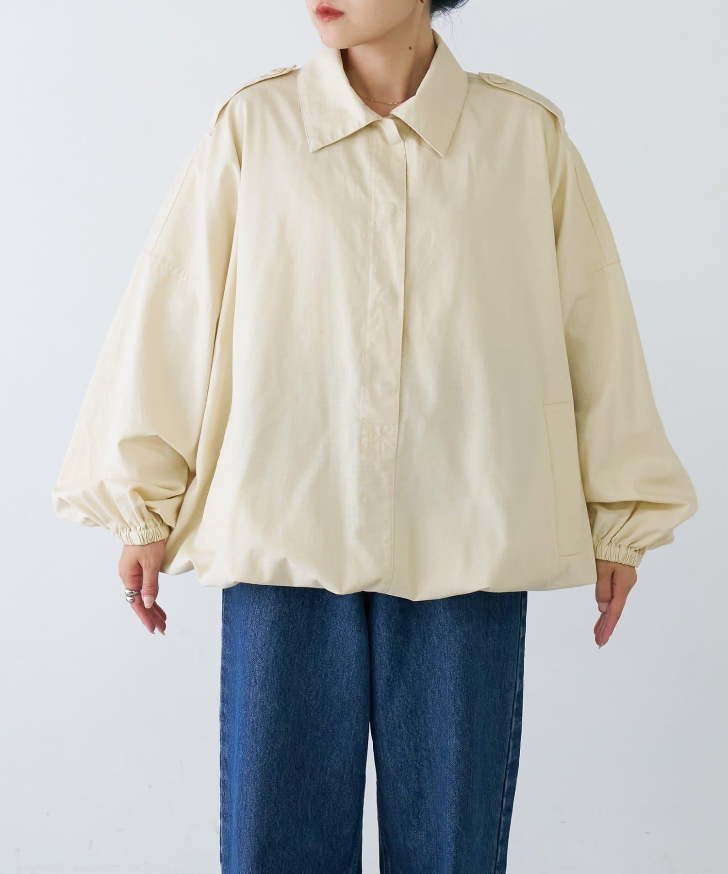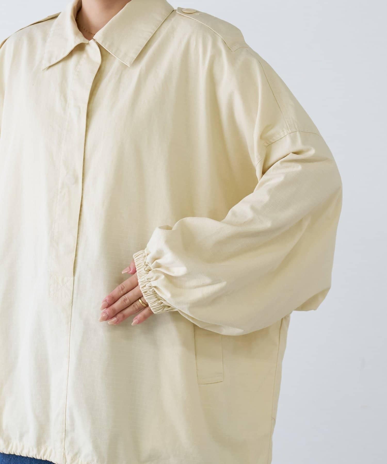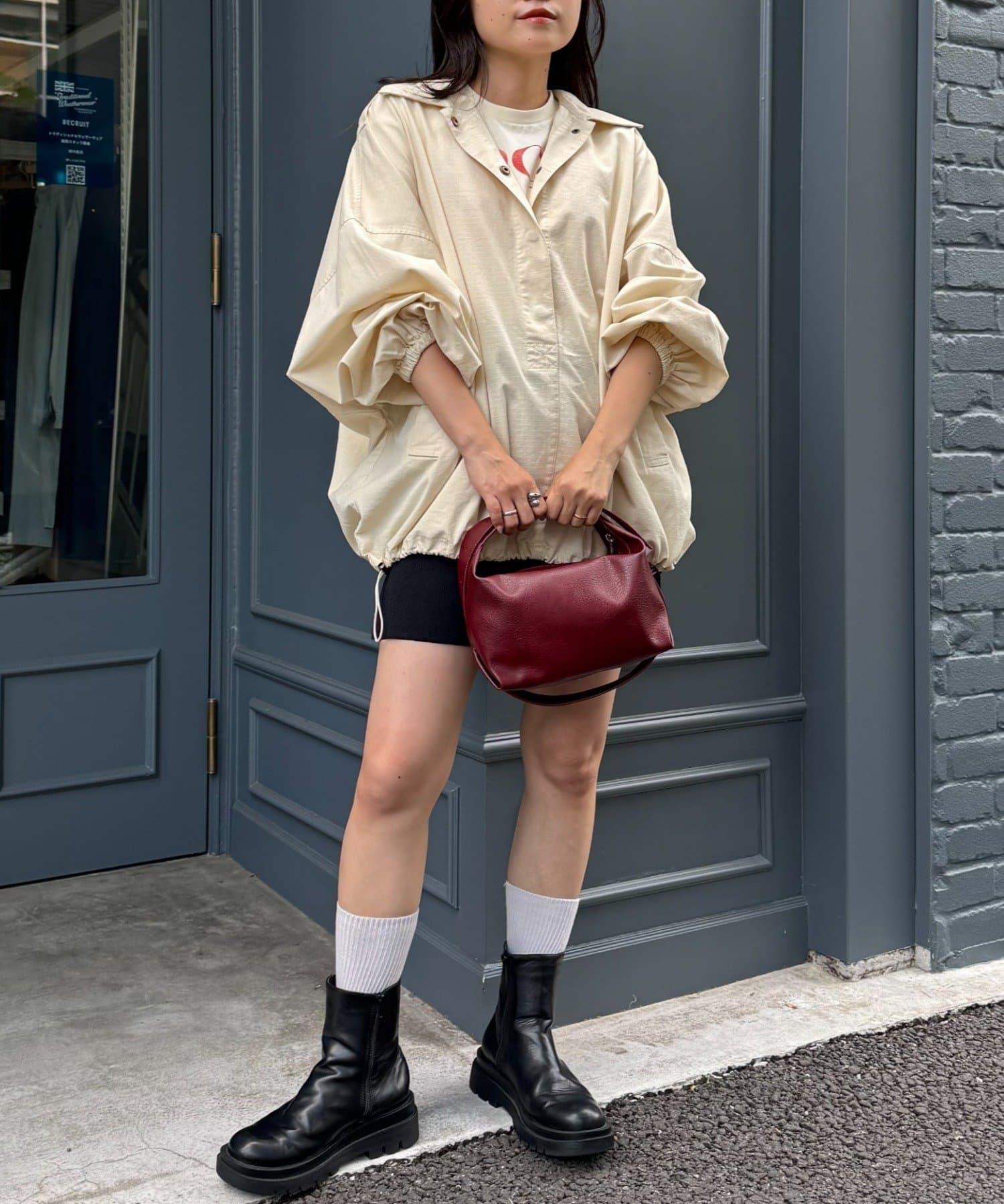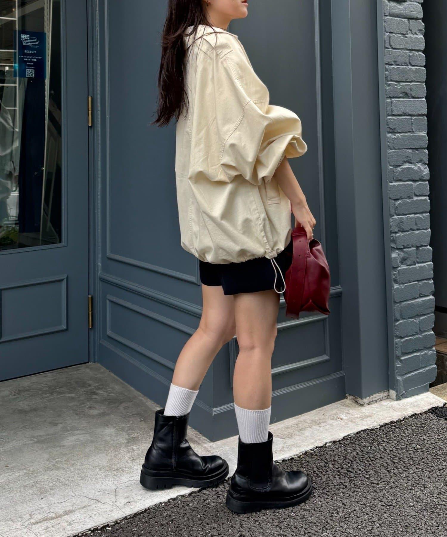 寬鬆的剪裁和攏起的袖口營造出柔軟蓬鬆的體積感,營造出舒適的氛圍。
