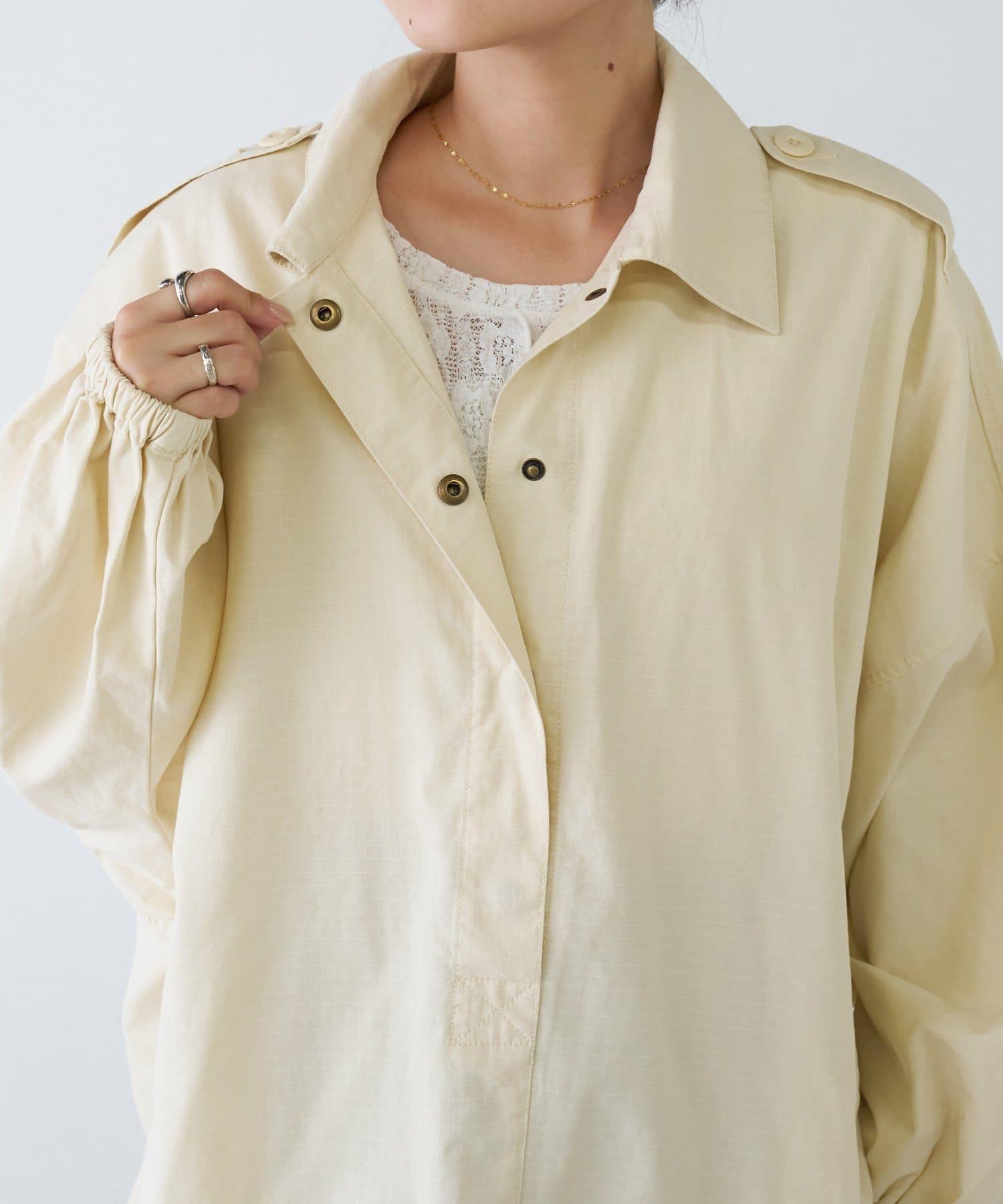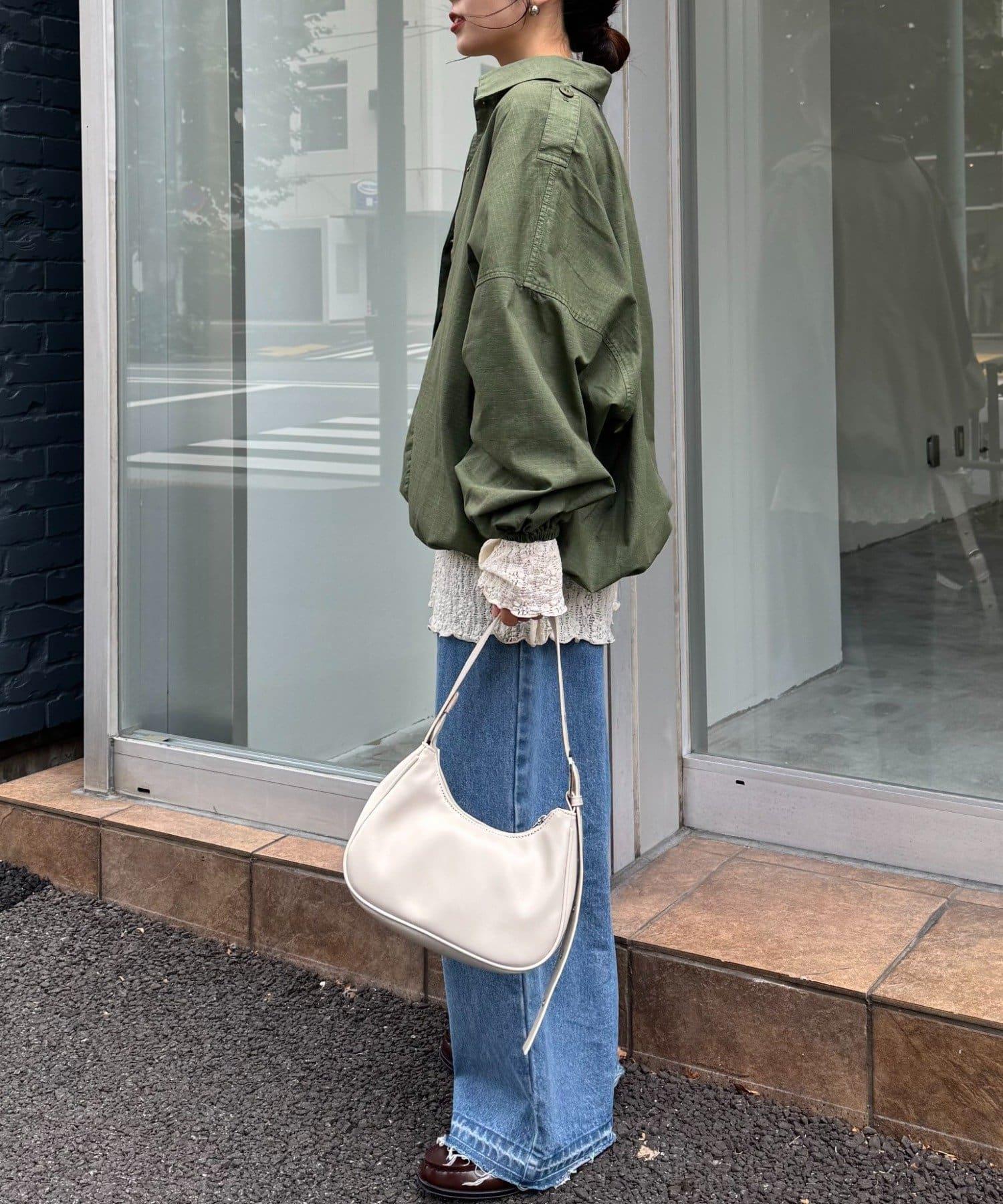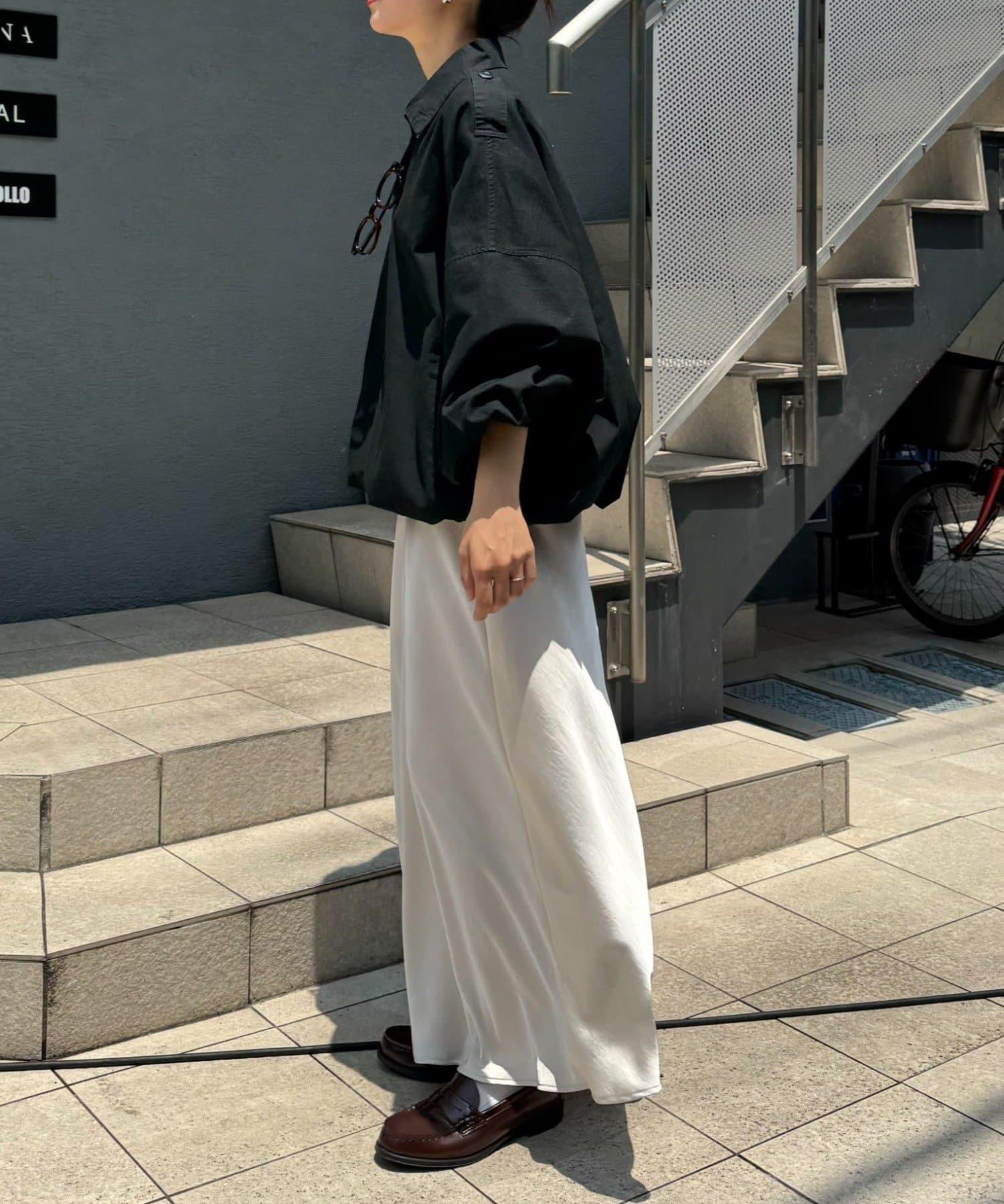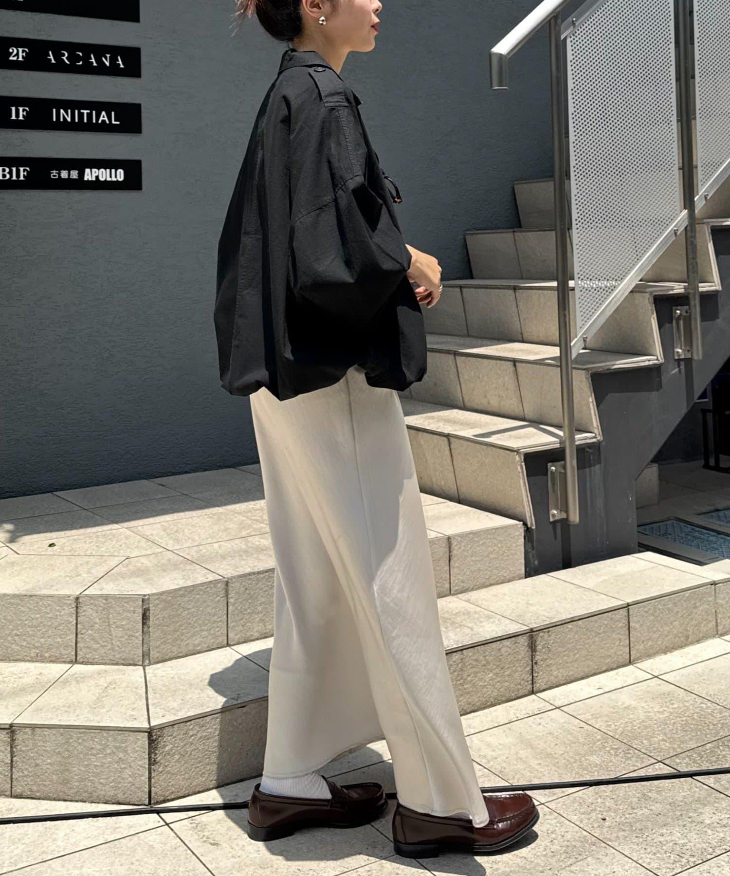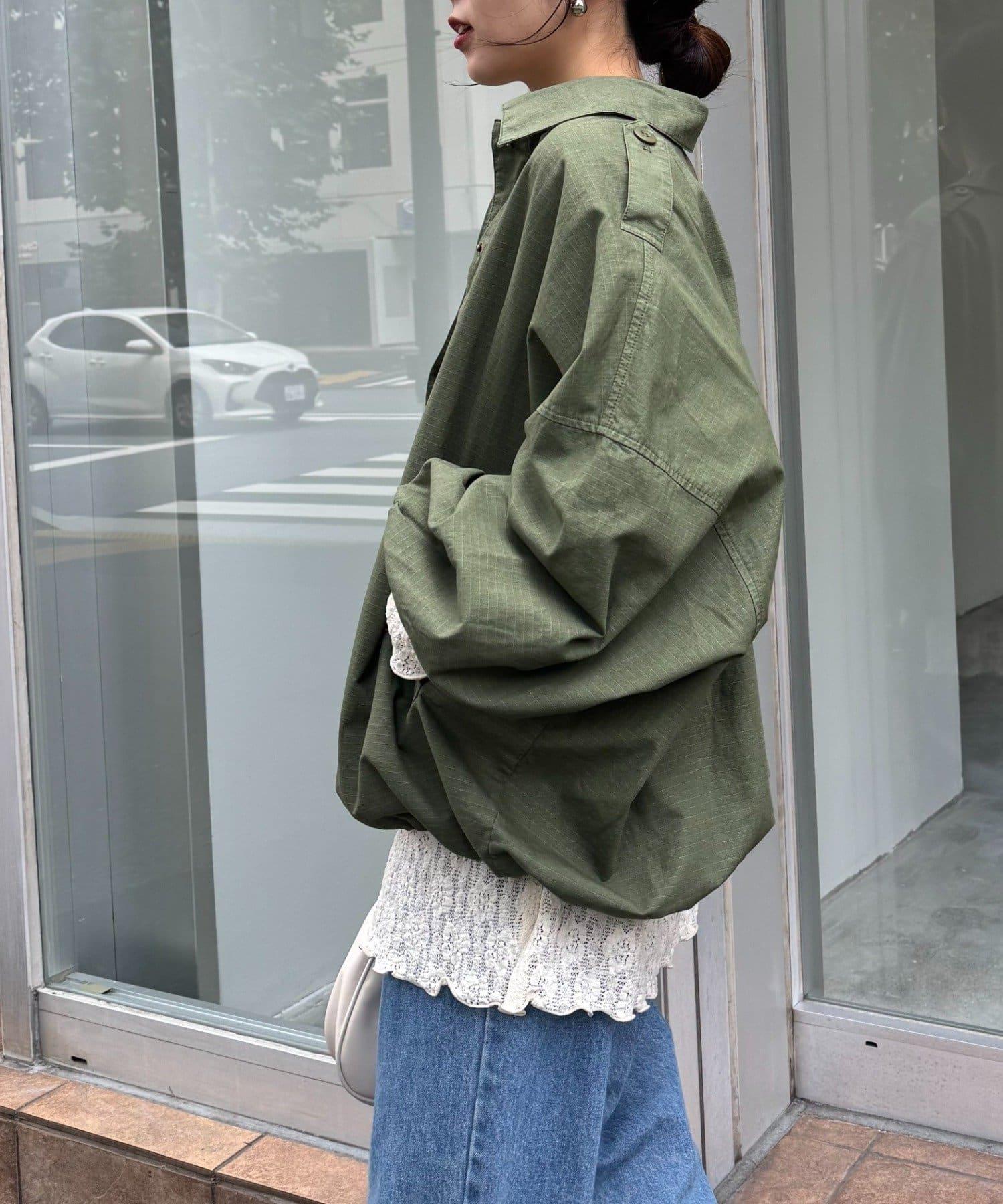 寬鬆的剪裁和攏起的袖口營造出柔軟蓬鬆的體積感,營造出舒適的氛圍。