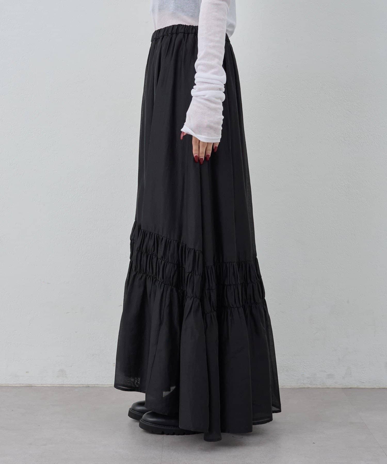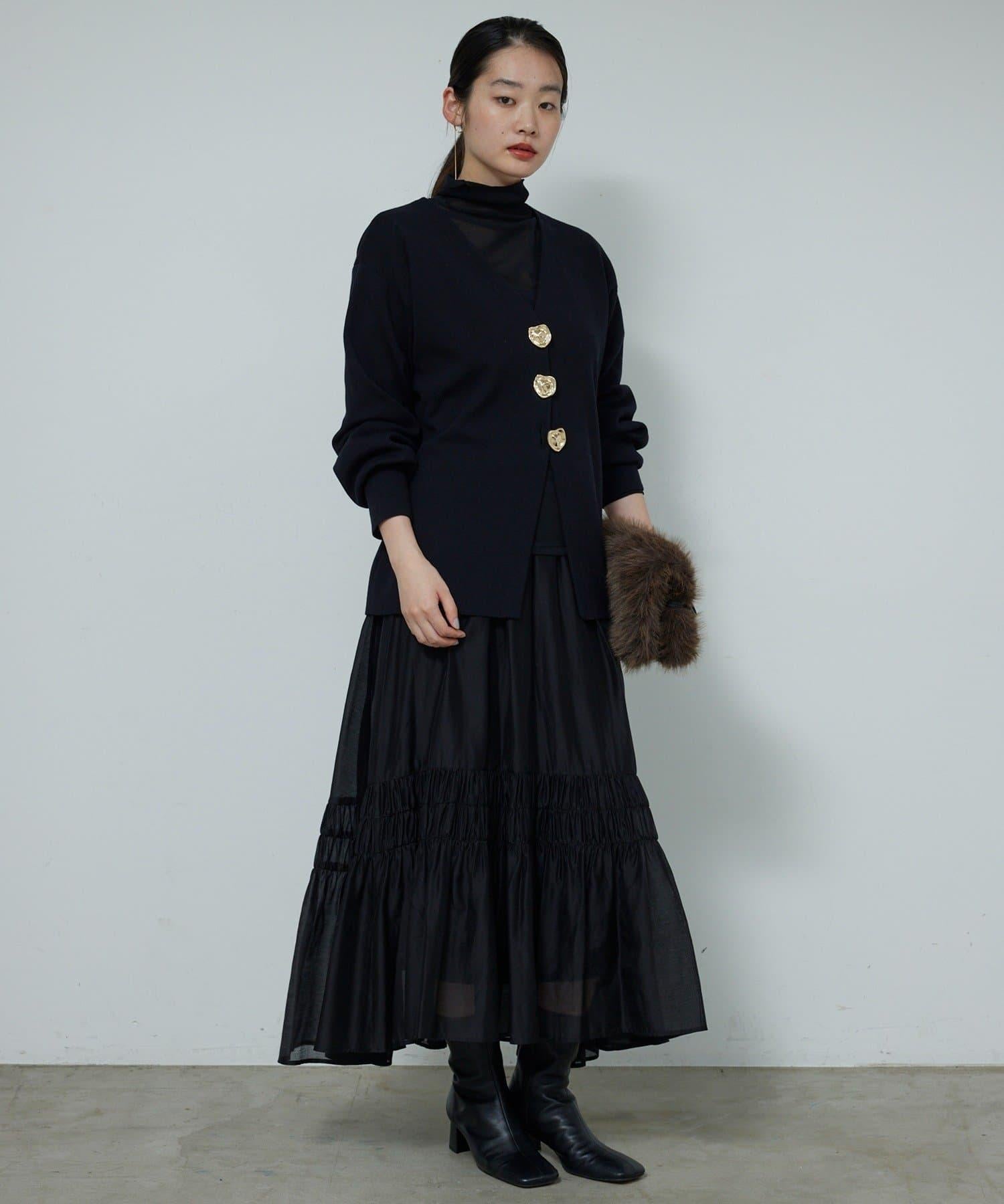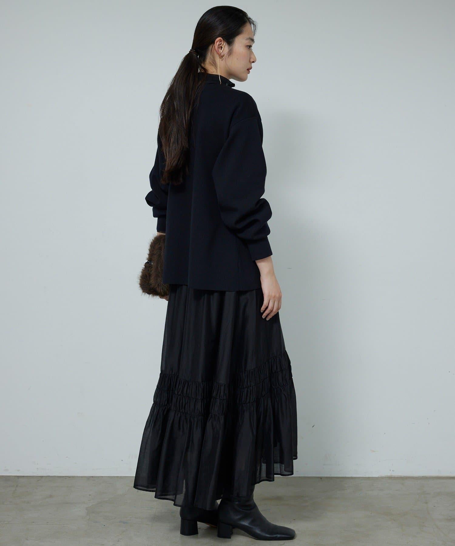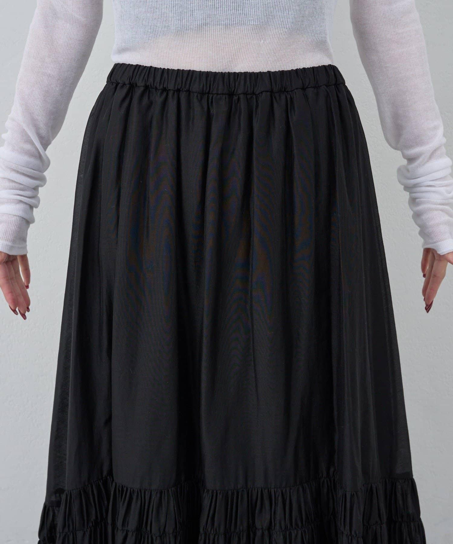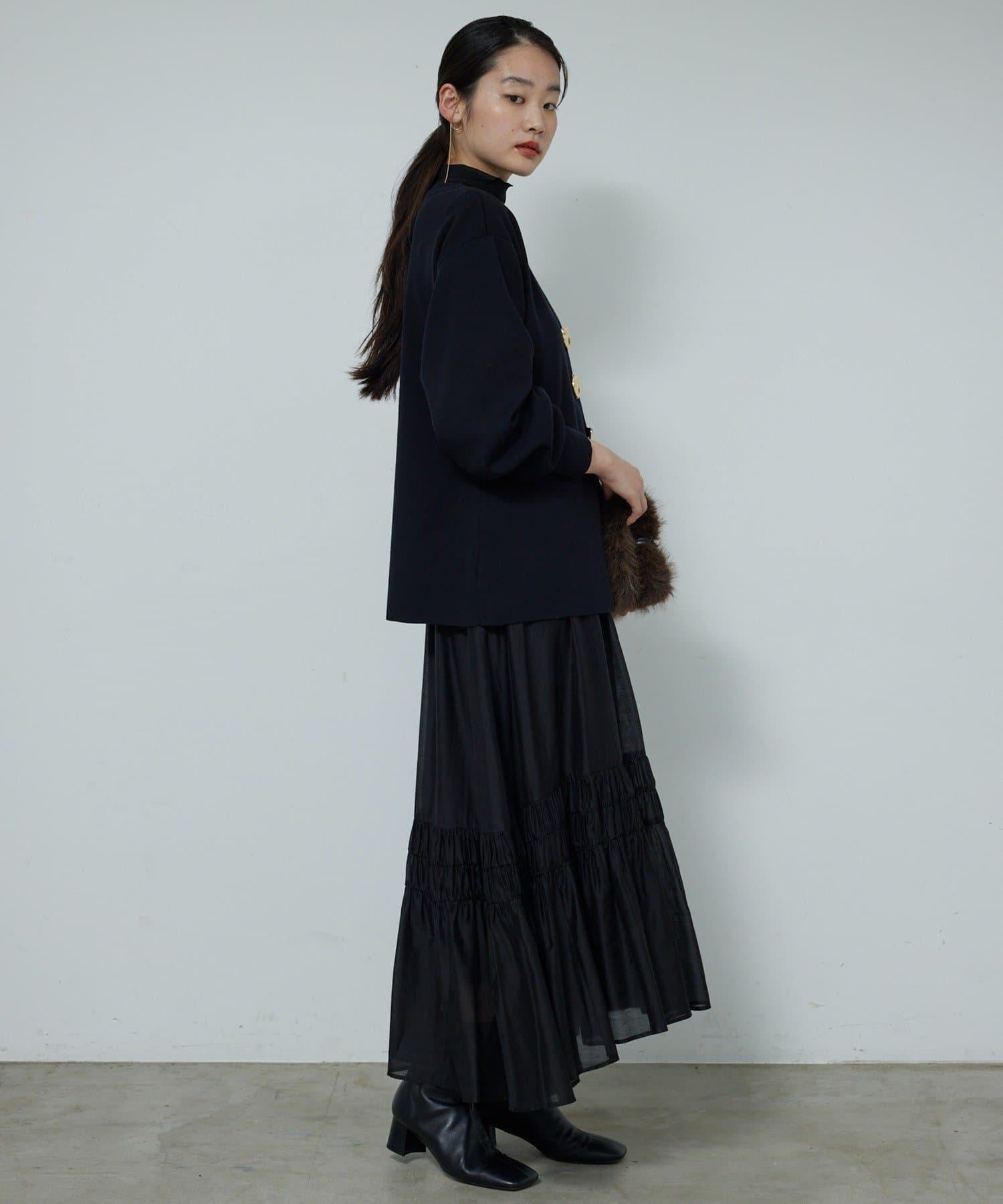 女性化的聚攏裙襬,輕盈的薄紗質感。