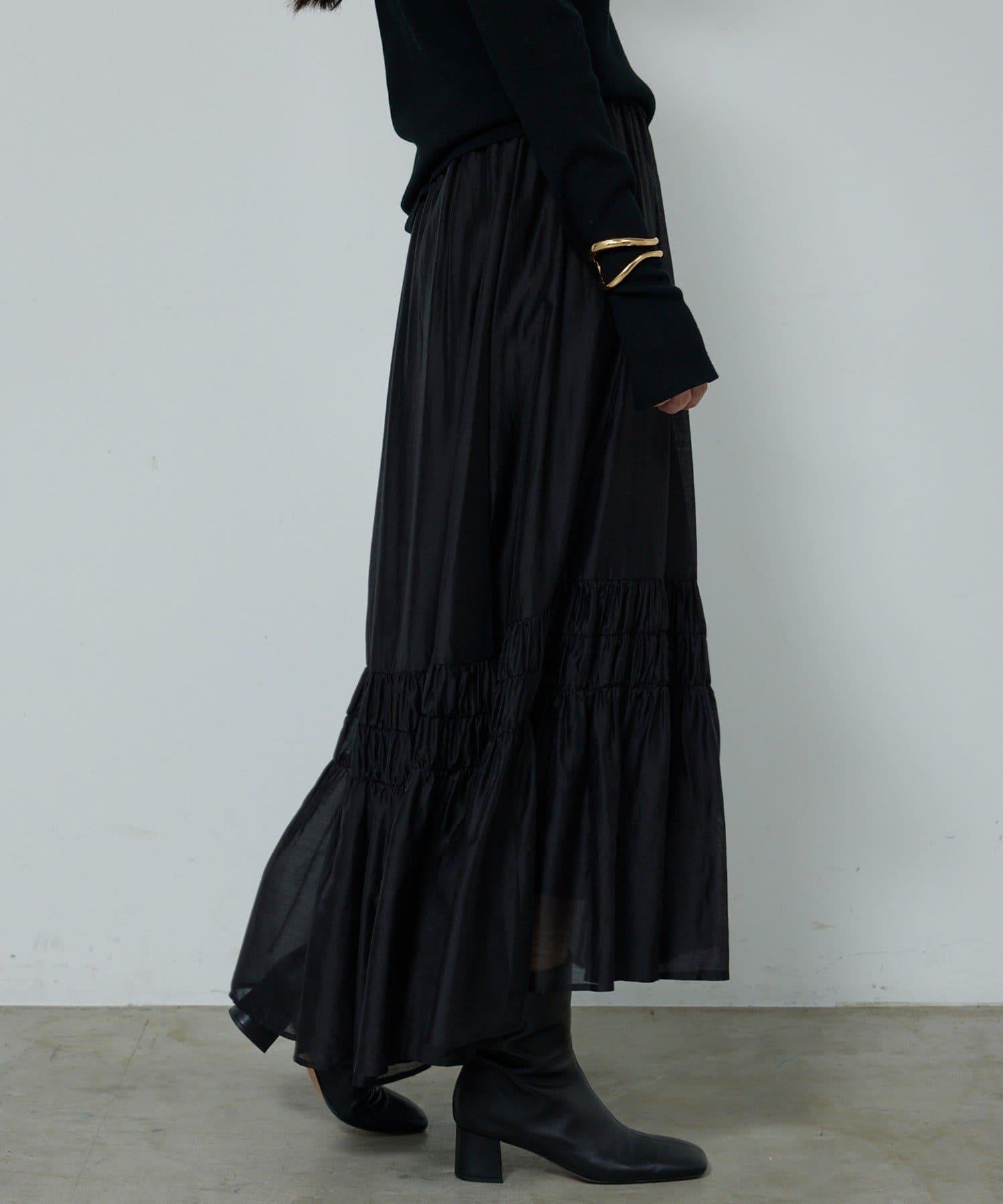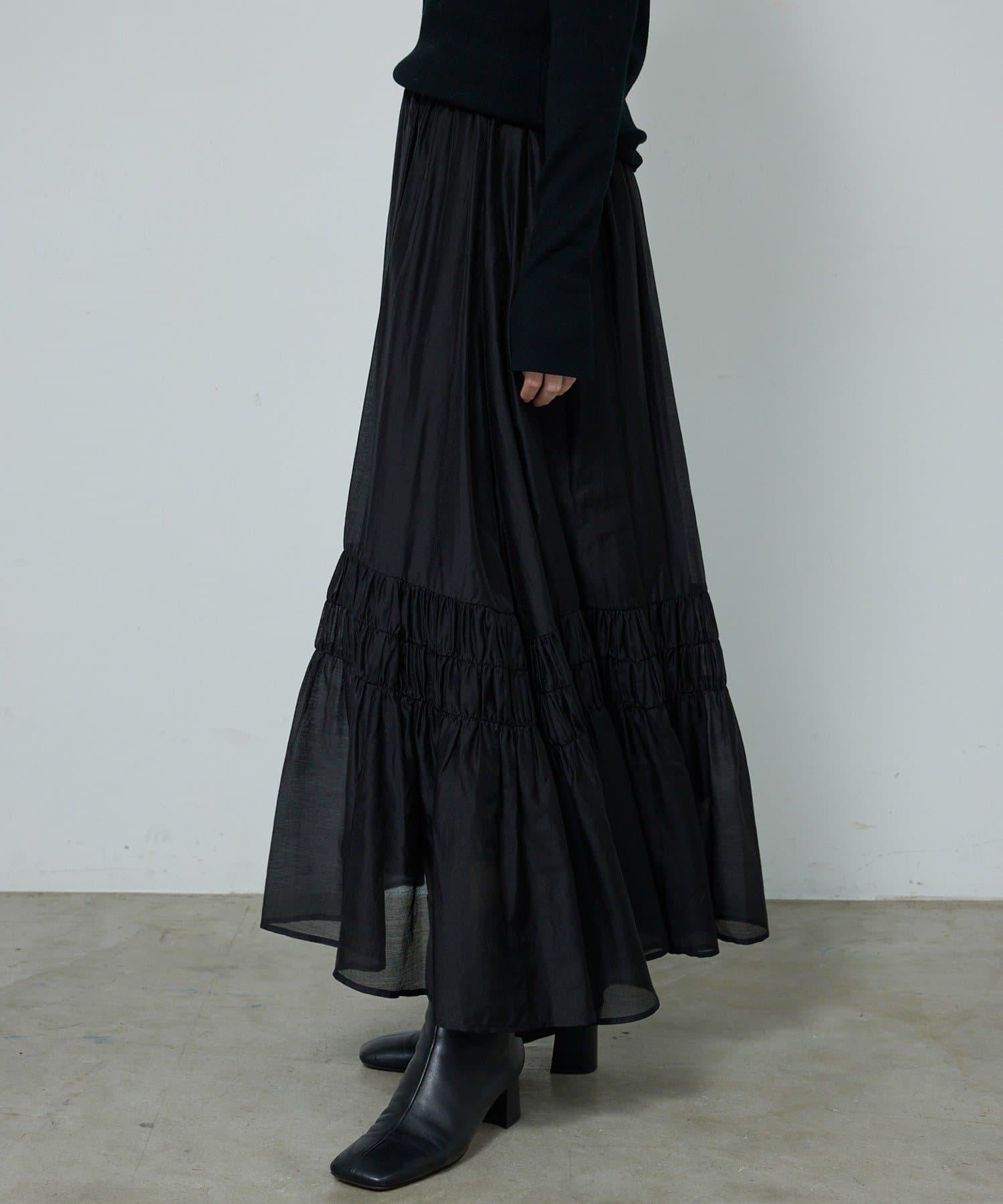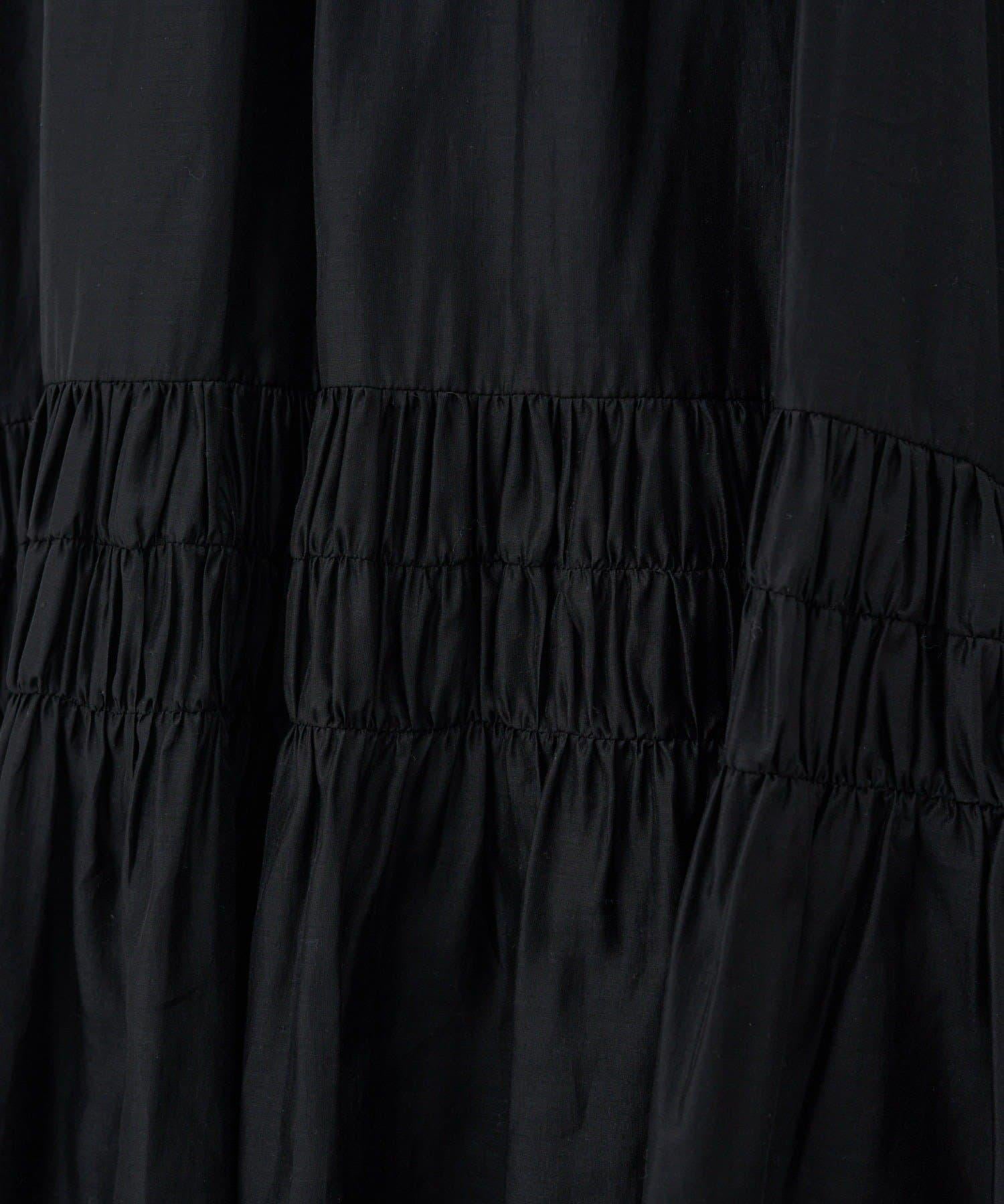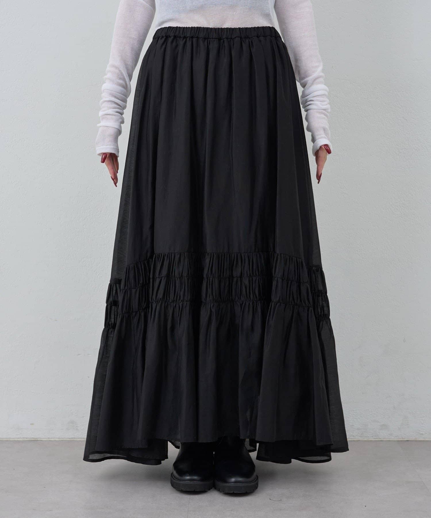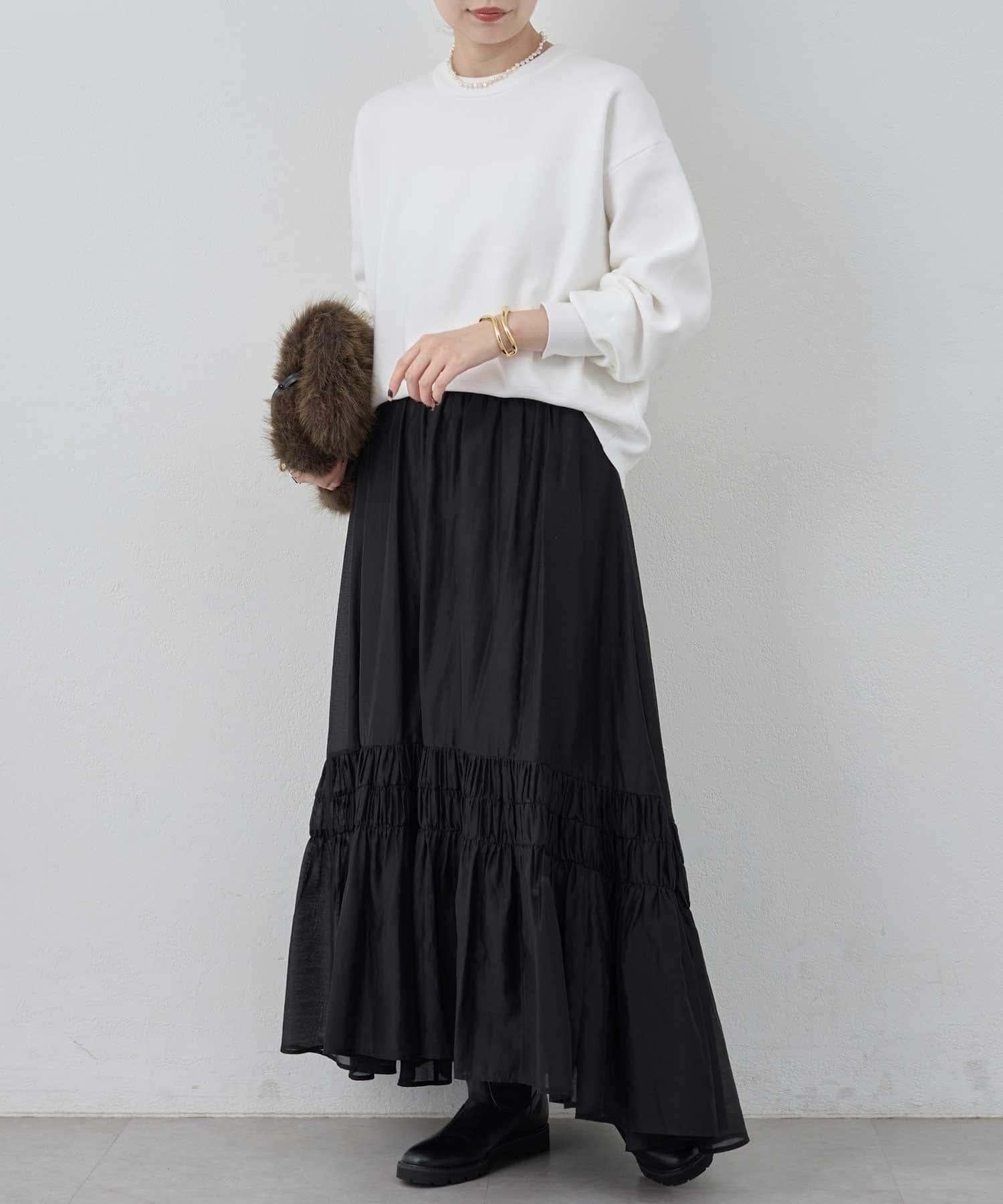 女性化的聚攏裙襬,輕盈的薄紗質感。