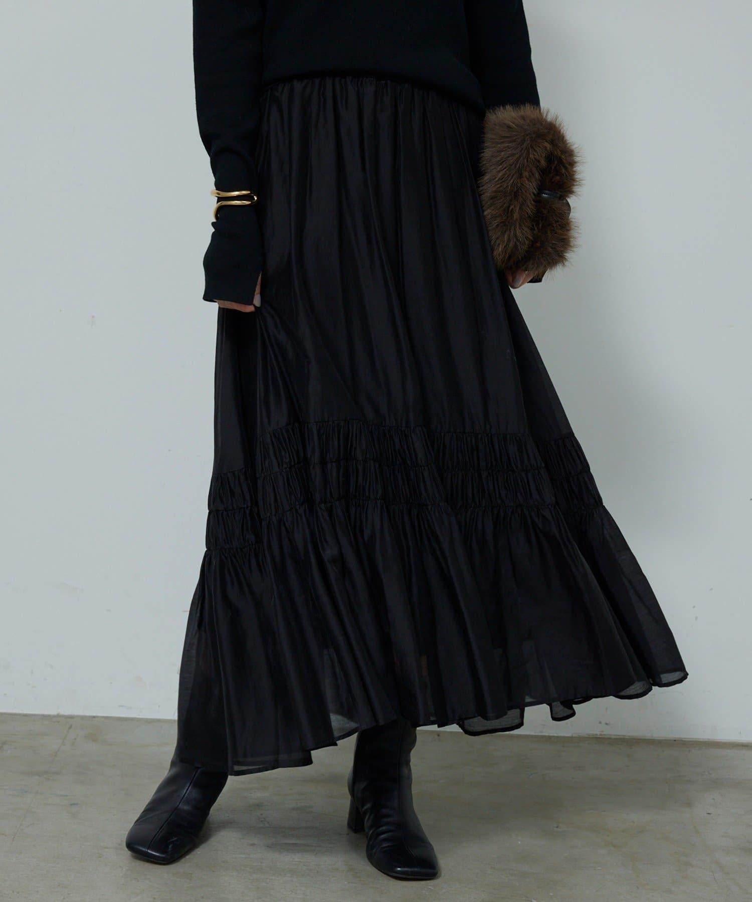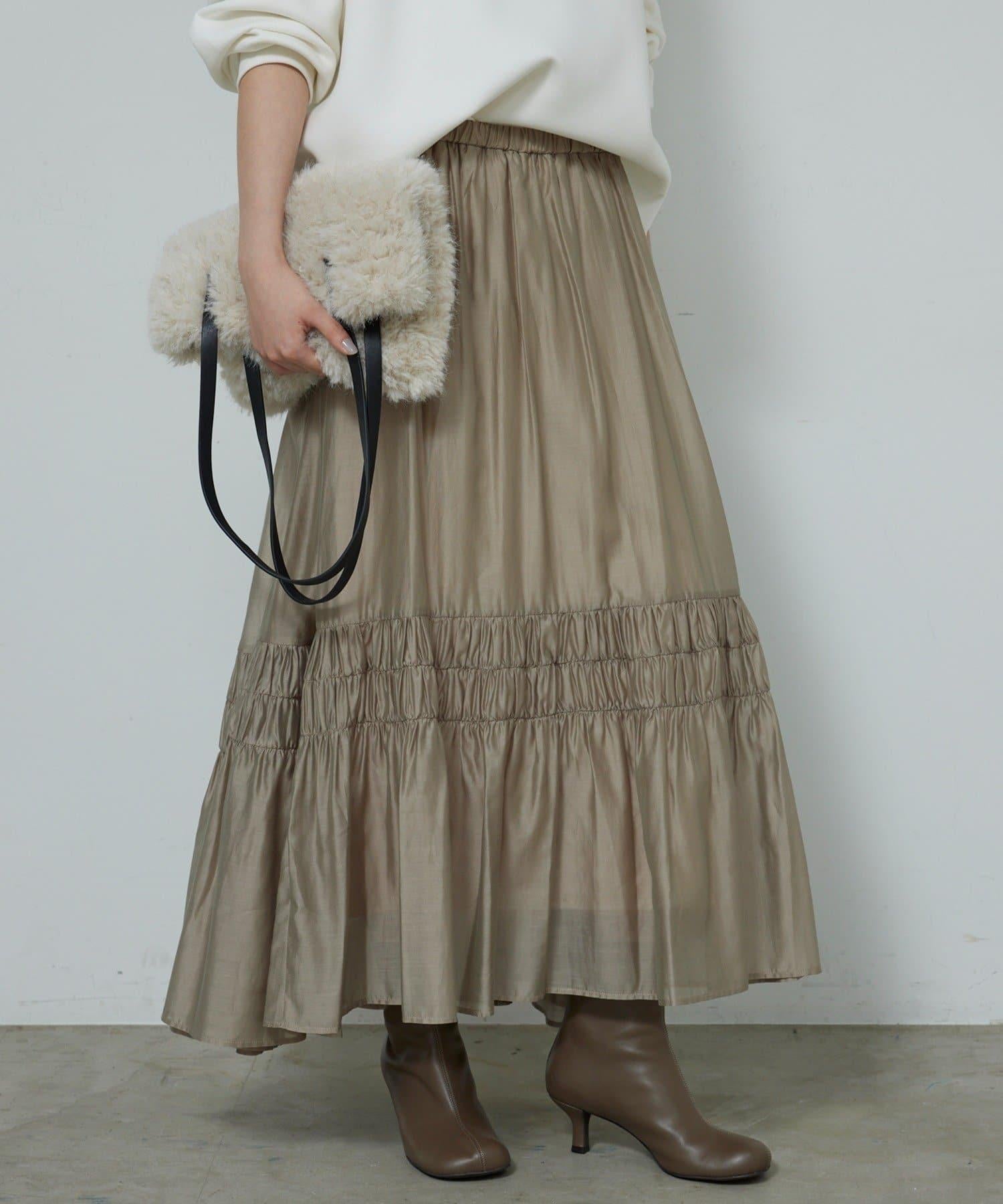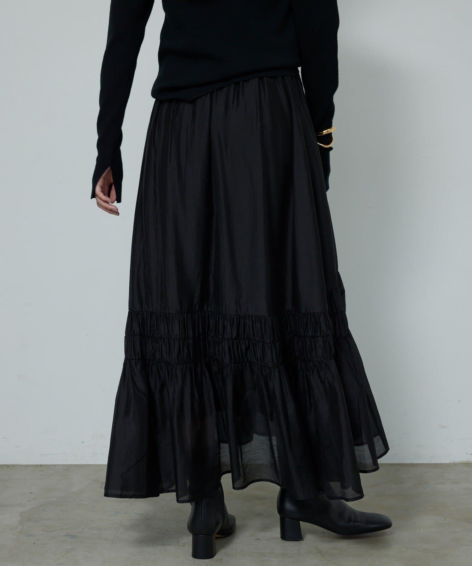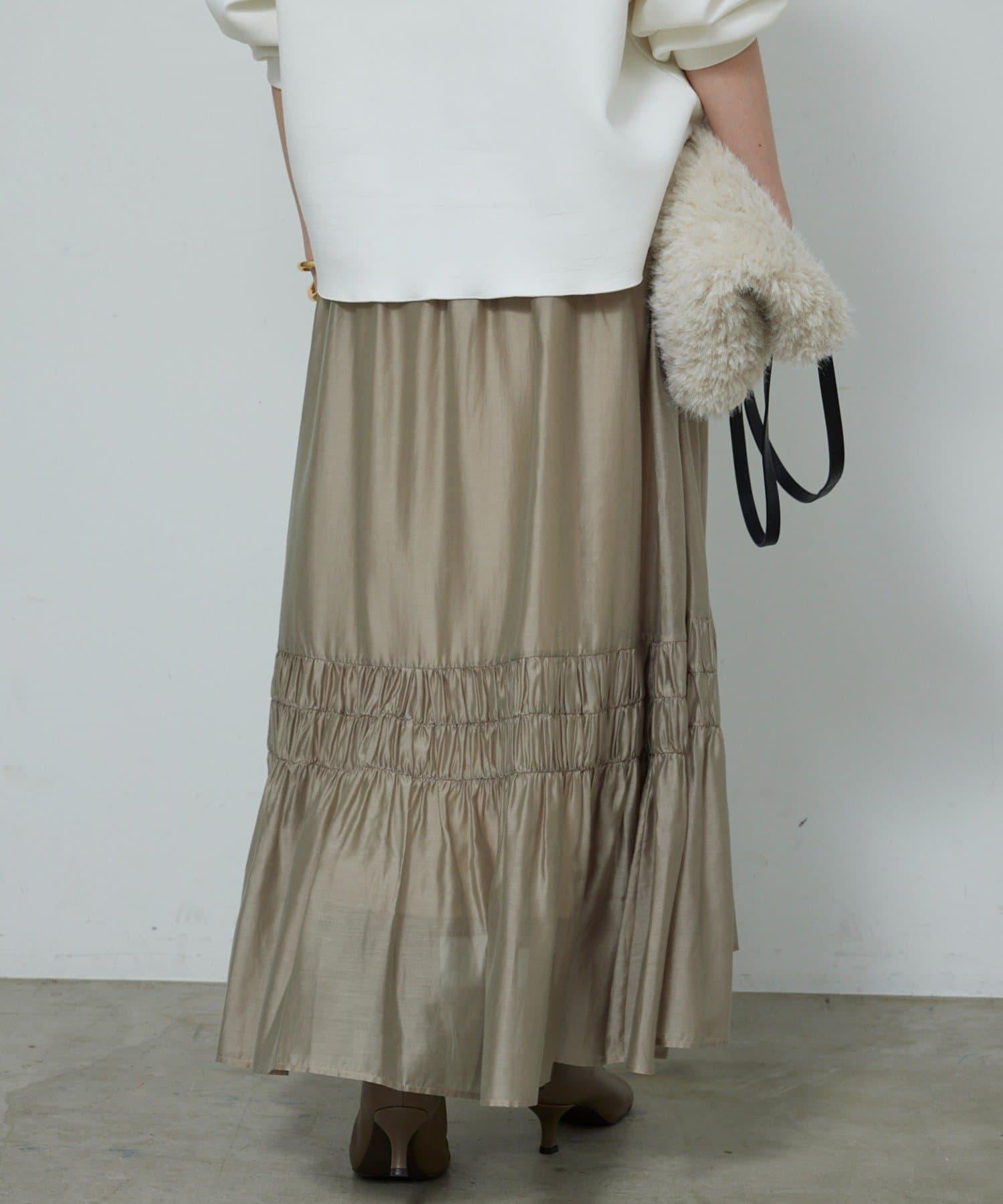女性化的聚攏裙襬,輕盈的薄紗質感。