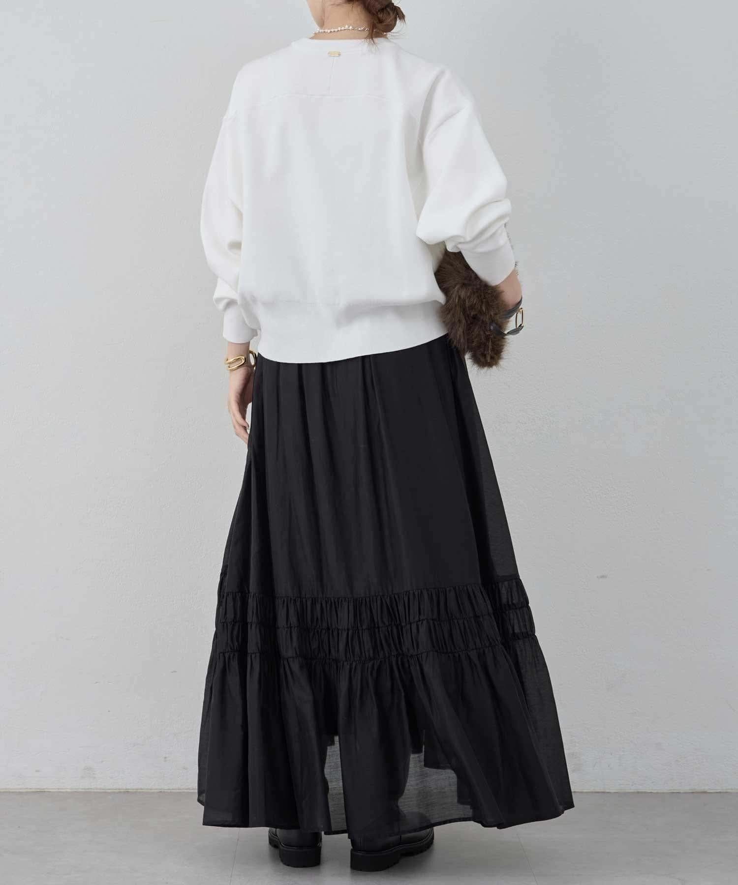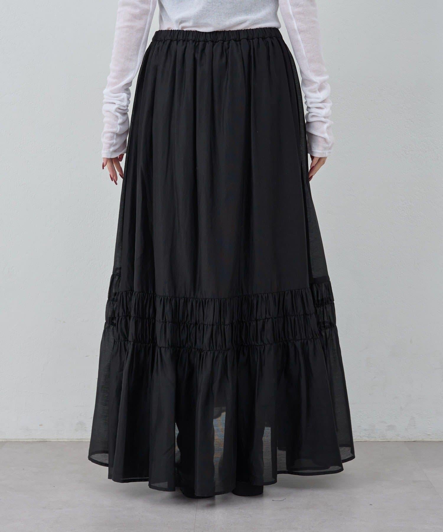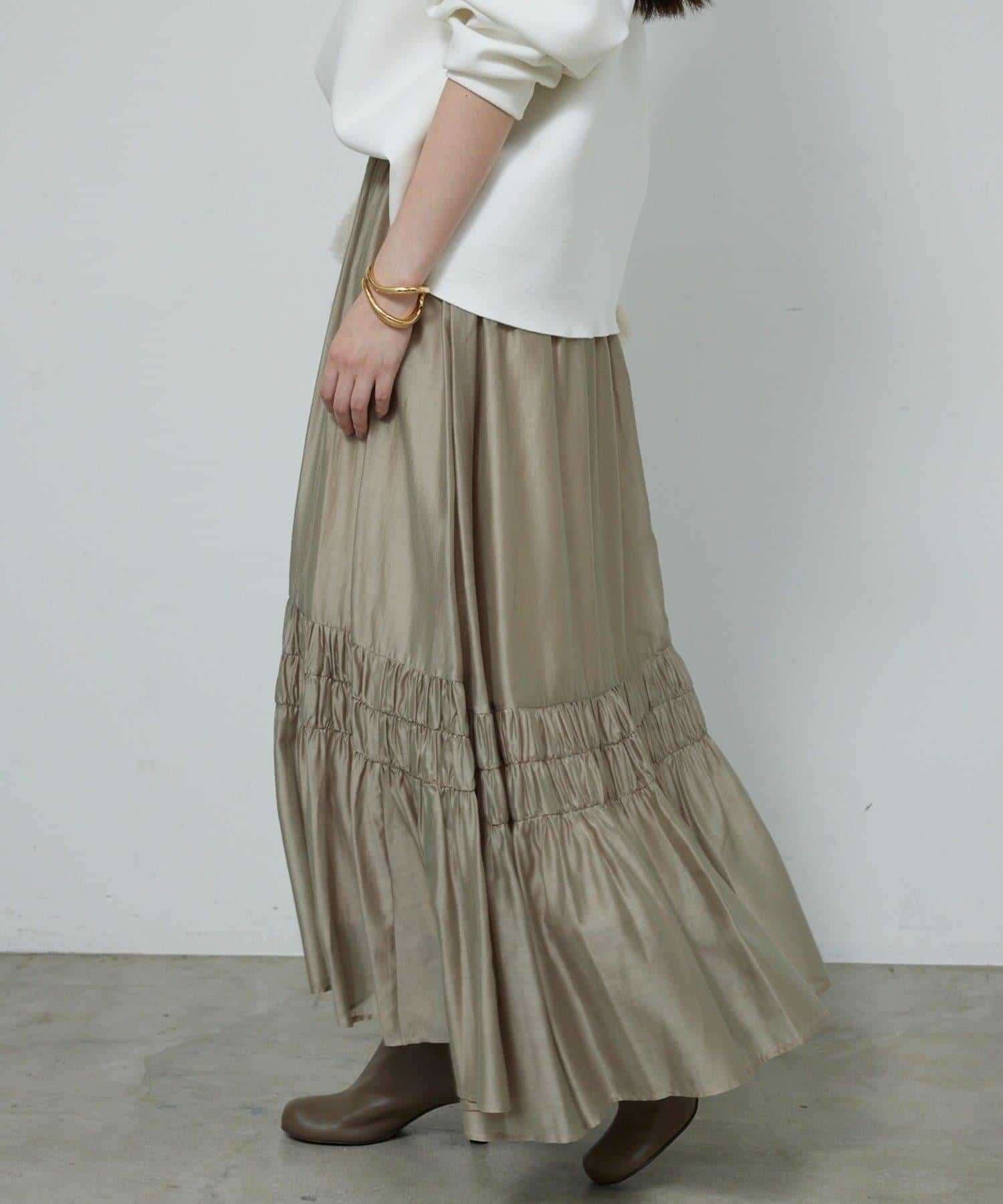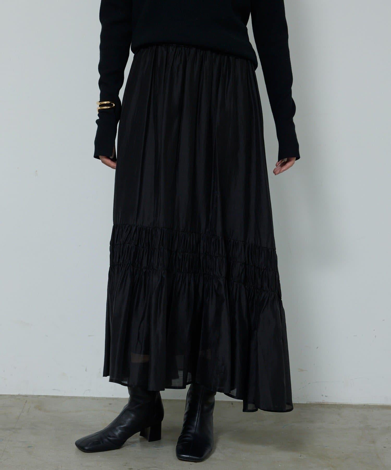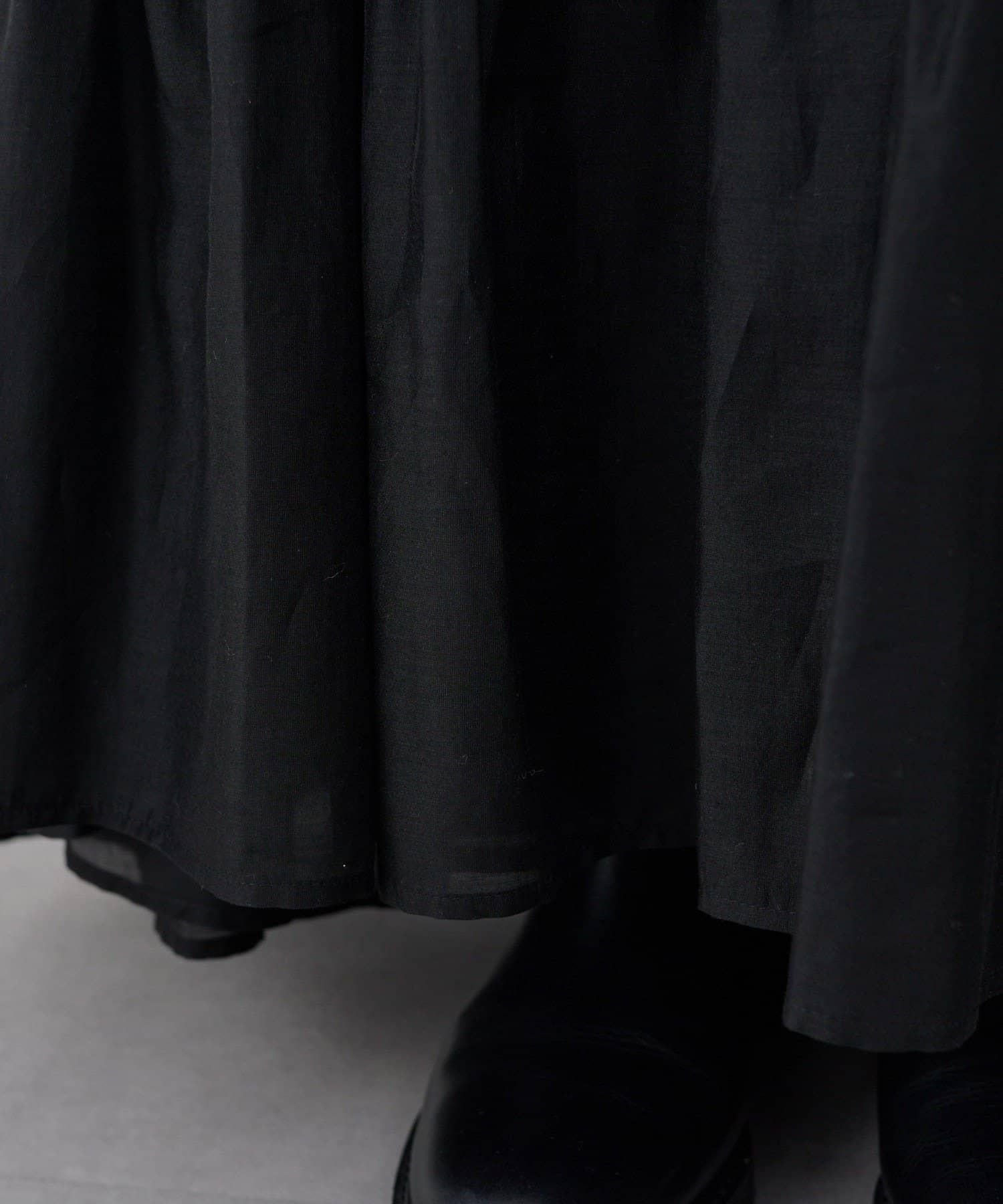 女性化的聚攏裙襬,輕盈的薄紗質感。