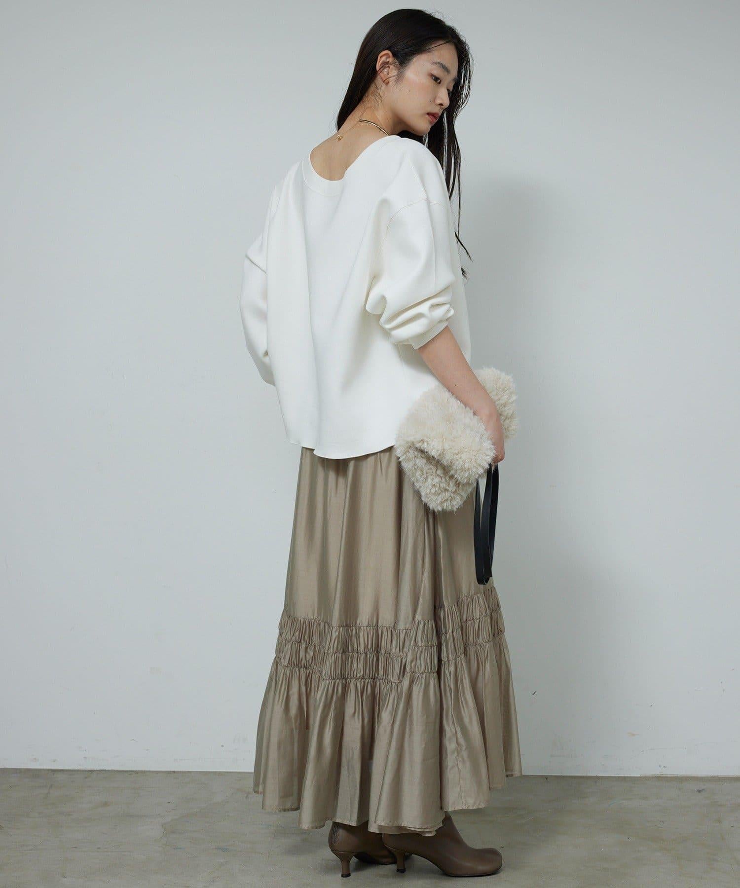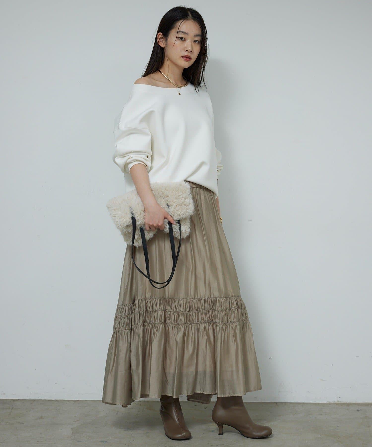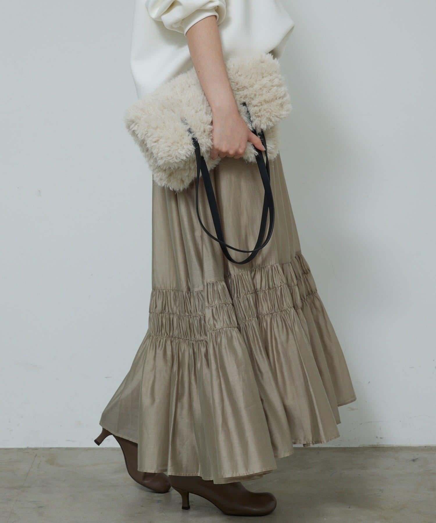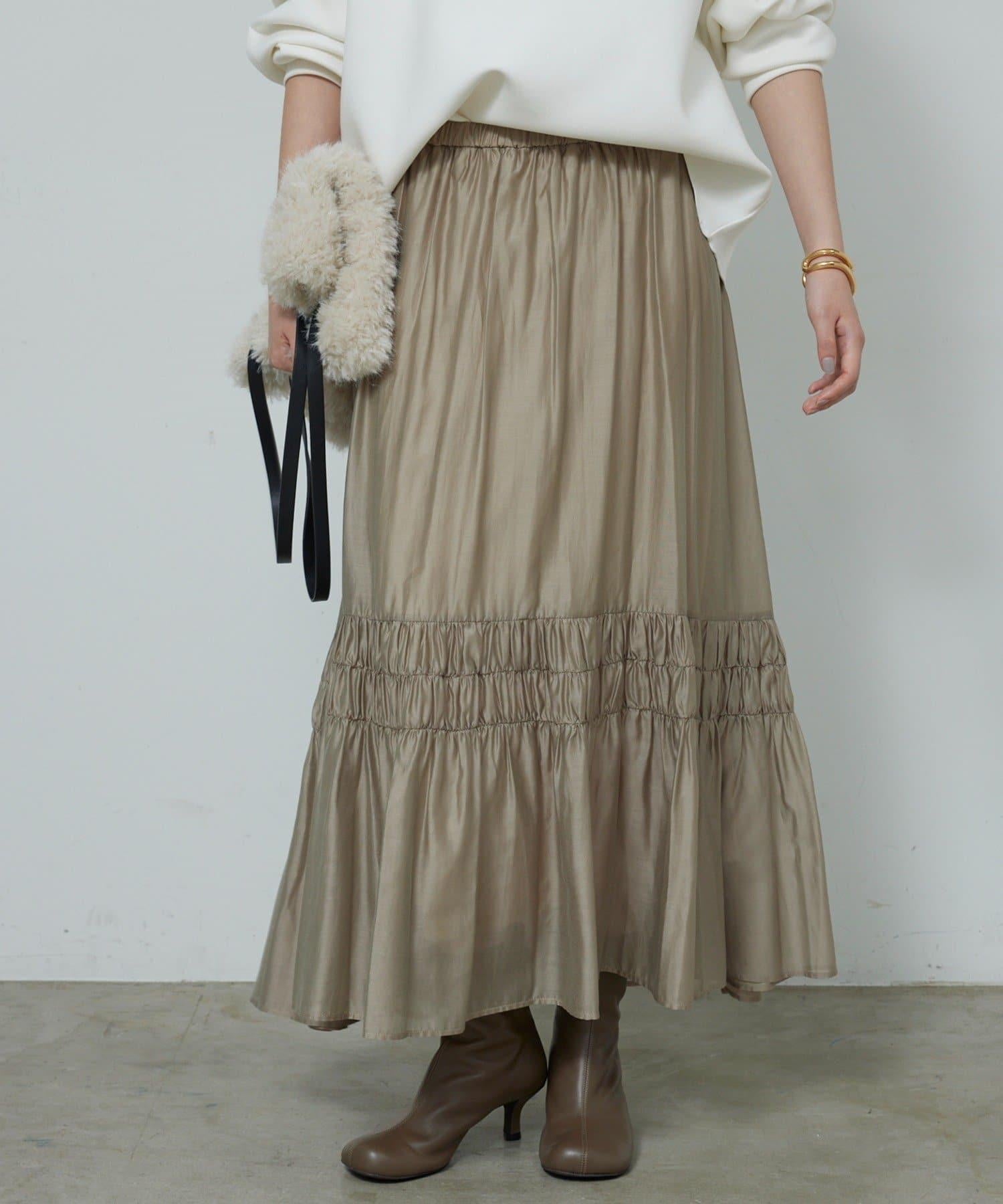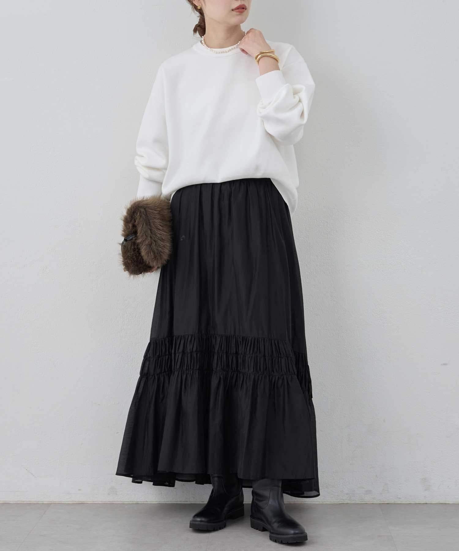 女性化的聚攏裙襬,輕盈的薄紗質感。