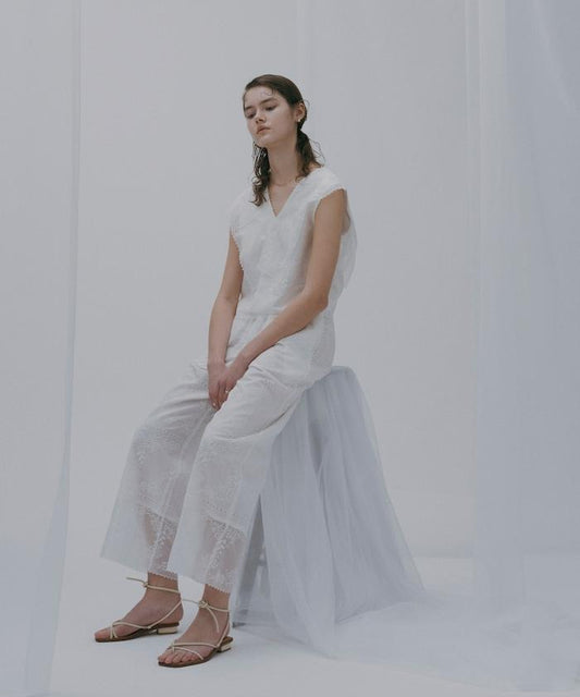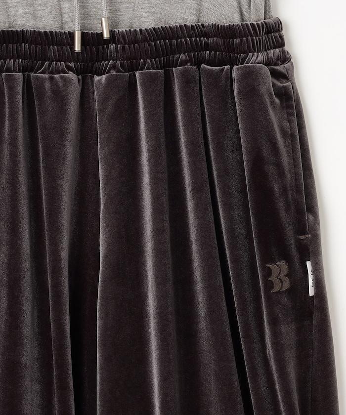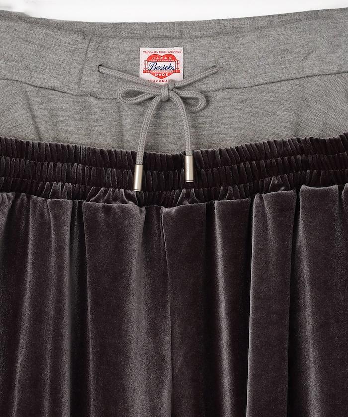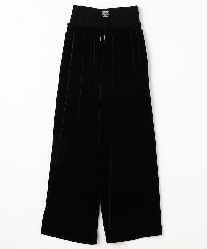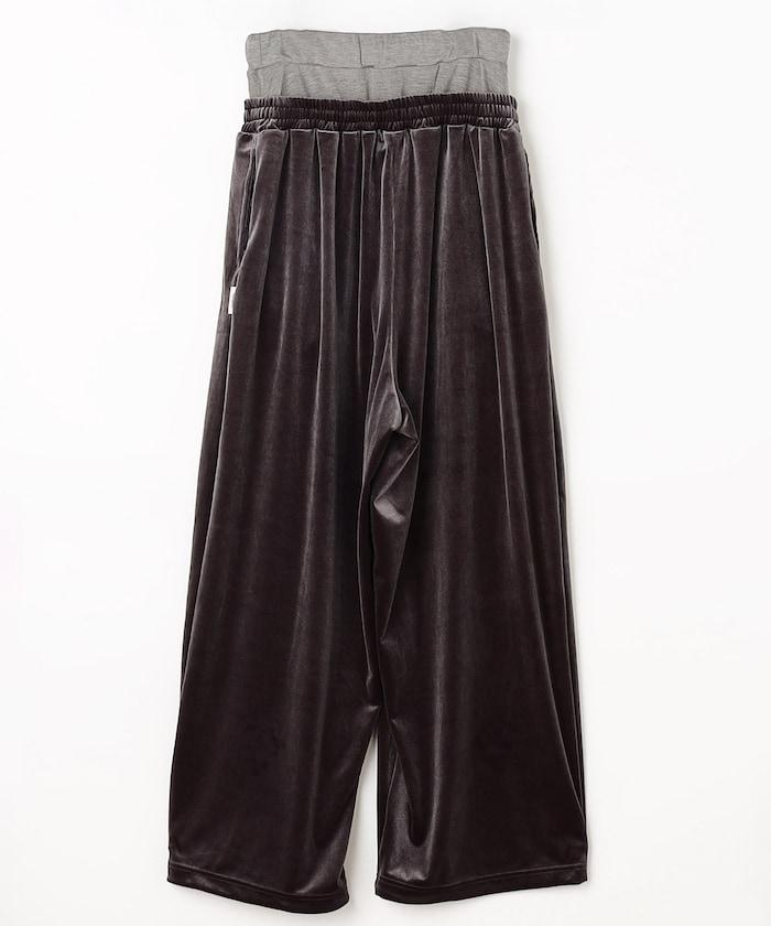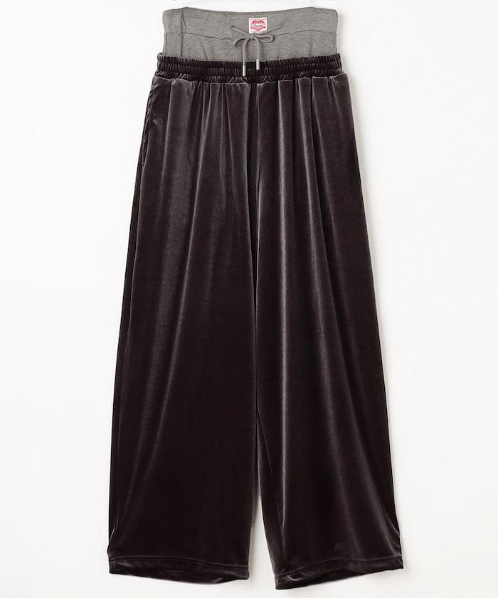 寬鬆長褲採用對接式分層設計,就像在運動褲外穿了一條絲絨長褲。