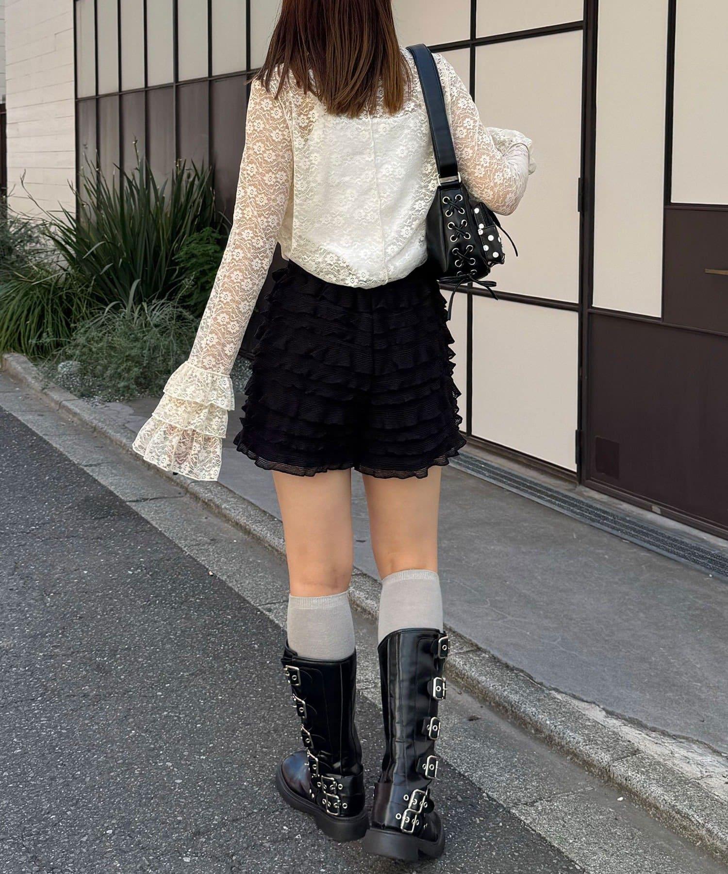 這款短褲非常華麗,層層荷葉邊柔美舒展,看起來就像裙子一樣。