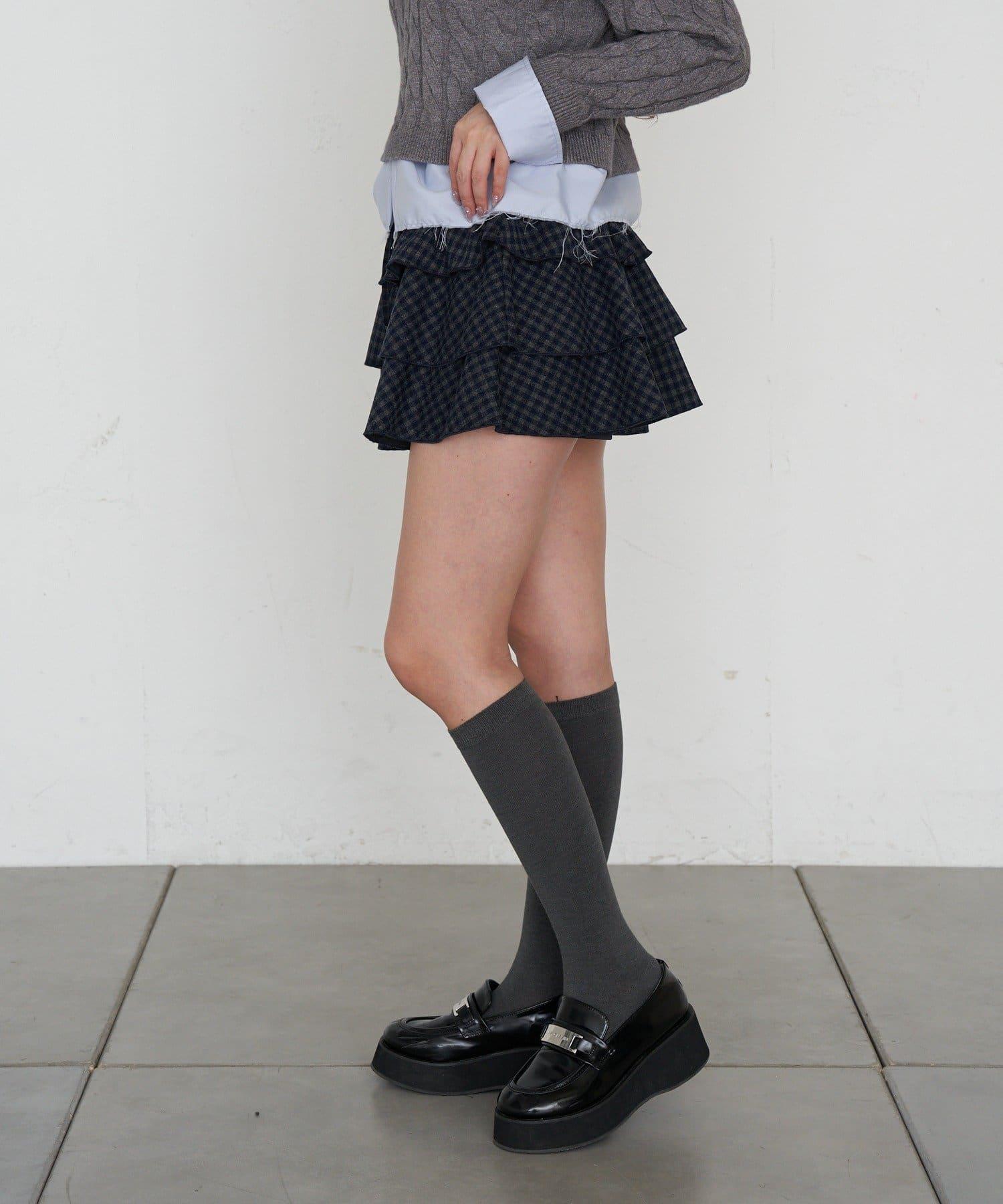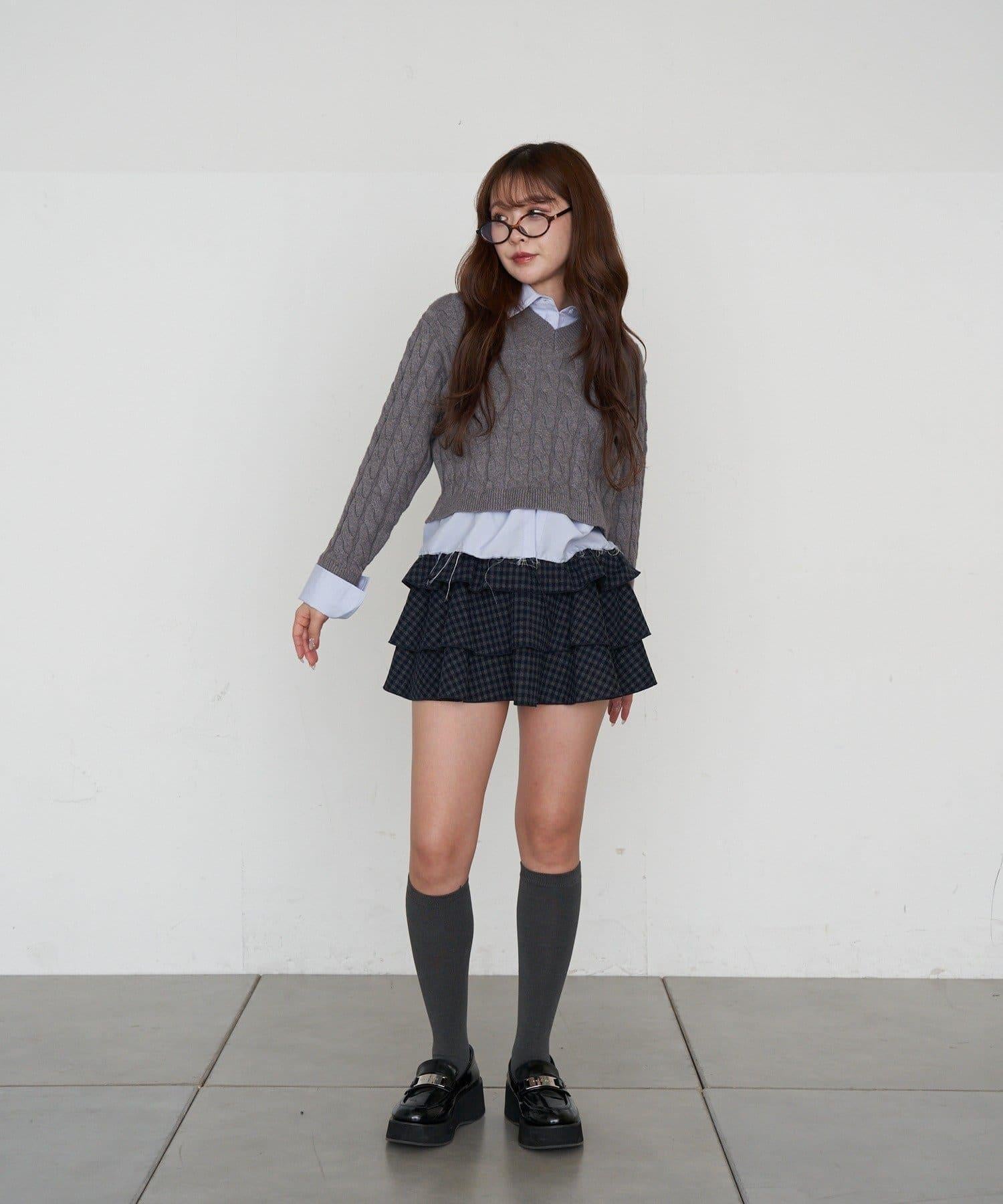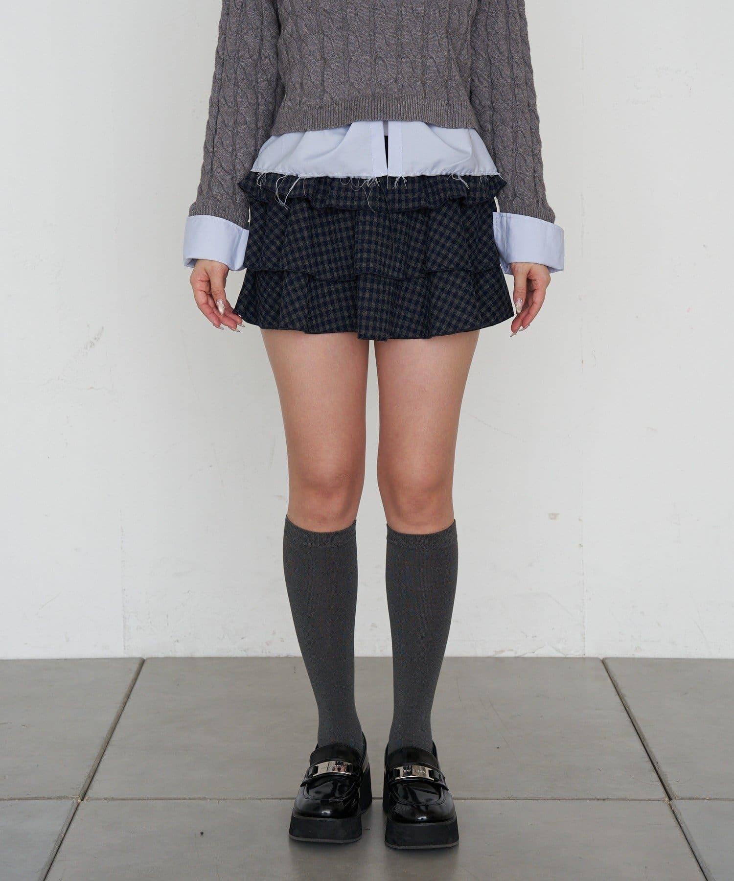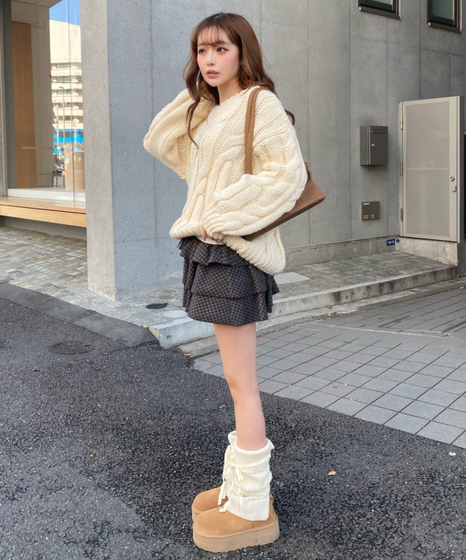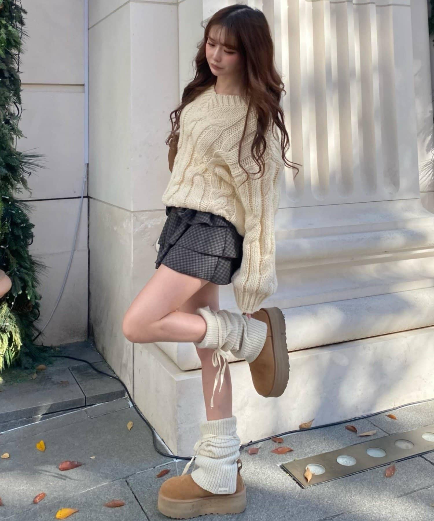 裙子雖是迷你長度,但配有打底褲,可以放心穿著。