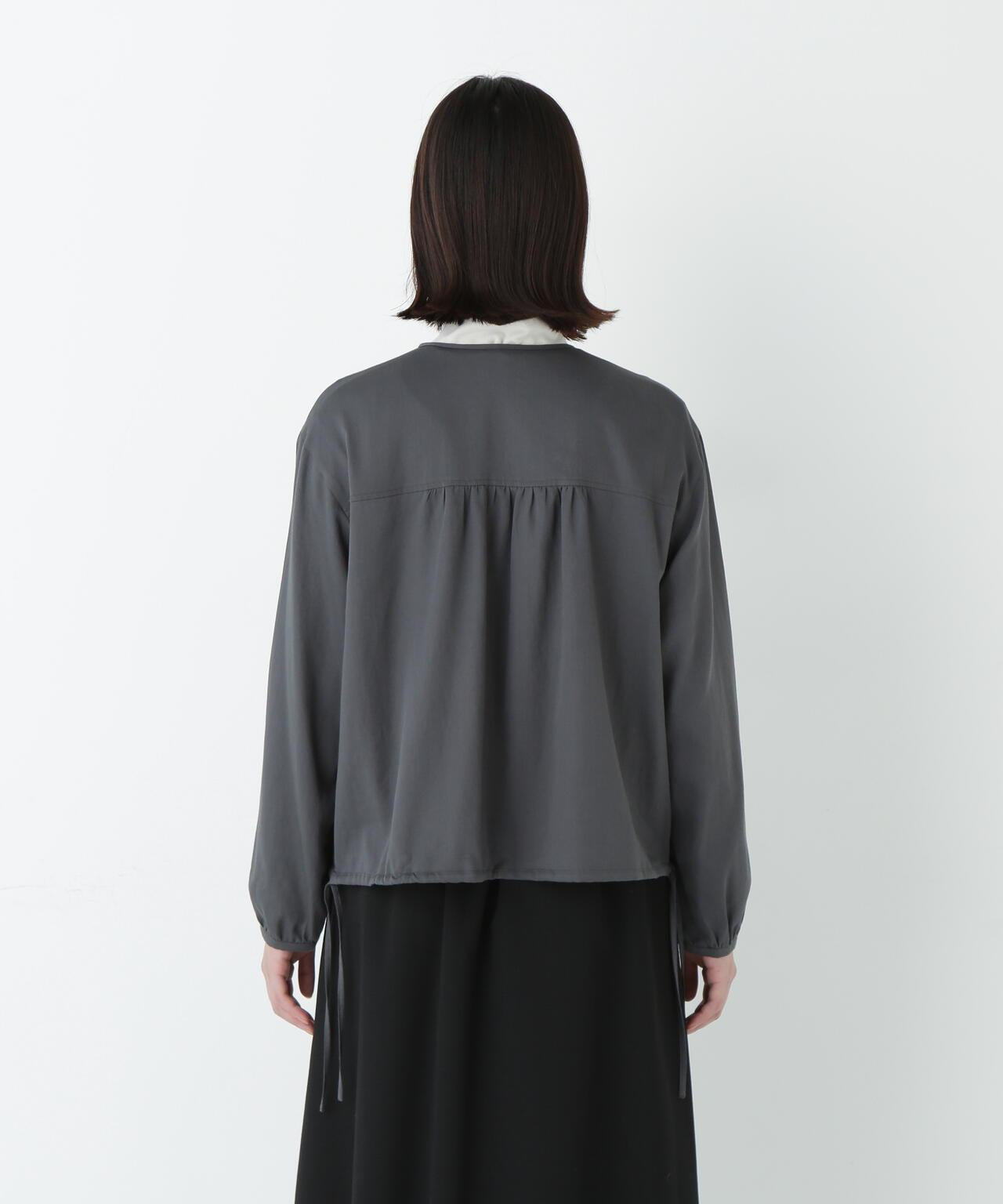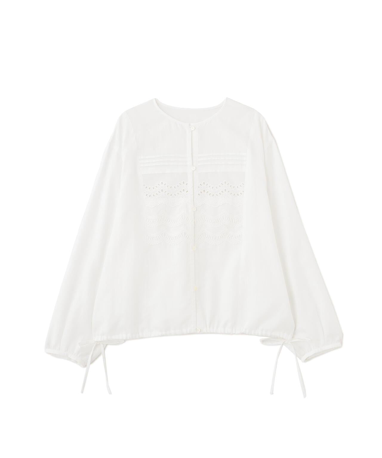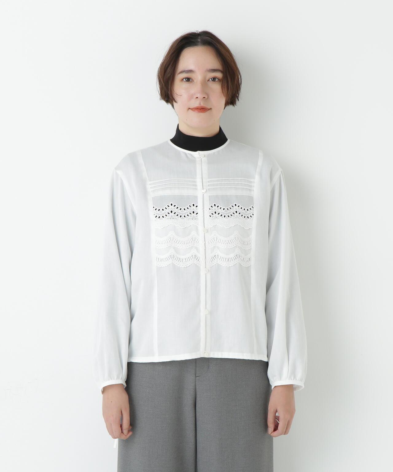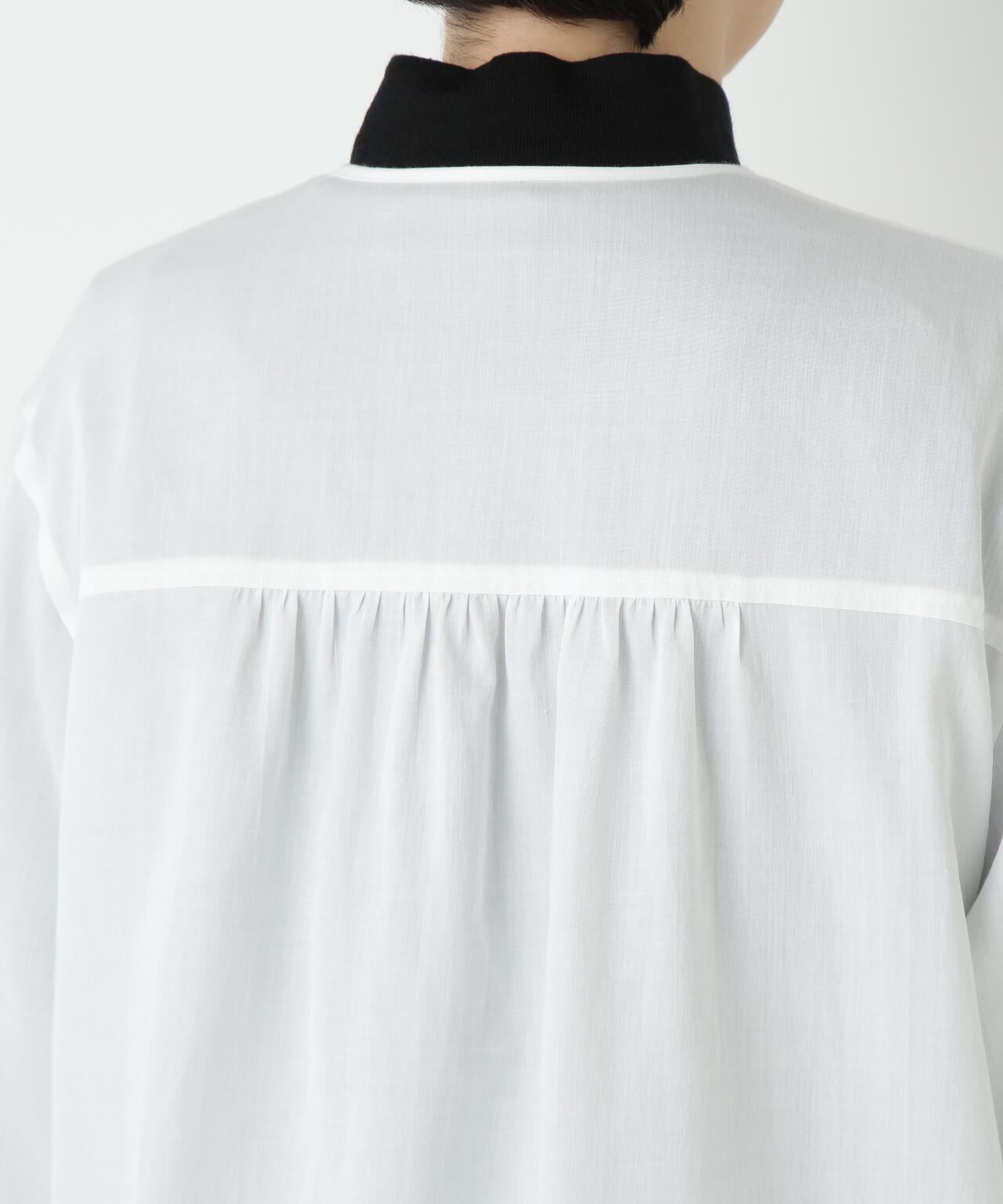 輕柔質感設計的襯衫,配以奢華的棉質蕾絲 [設計特色] 這是一款外觀華麗的襯衫,配以奢華的棉質蕾絲。襯衫下襬有抽繩設計,前襟可敞開穿著。上衣由 100% 純棉緞面製成,具有天然纖維特有的柔和質感和手感。蕾絲則採用兩種按需染色的蕾絲,盡顯奢華。推薦搭配】袖口稍寬,專為疊穿設計,是一款易於疊穿的單品。可與龜毛衫或長 T 進行疊穿,適合長季節穿著。