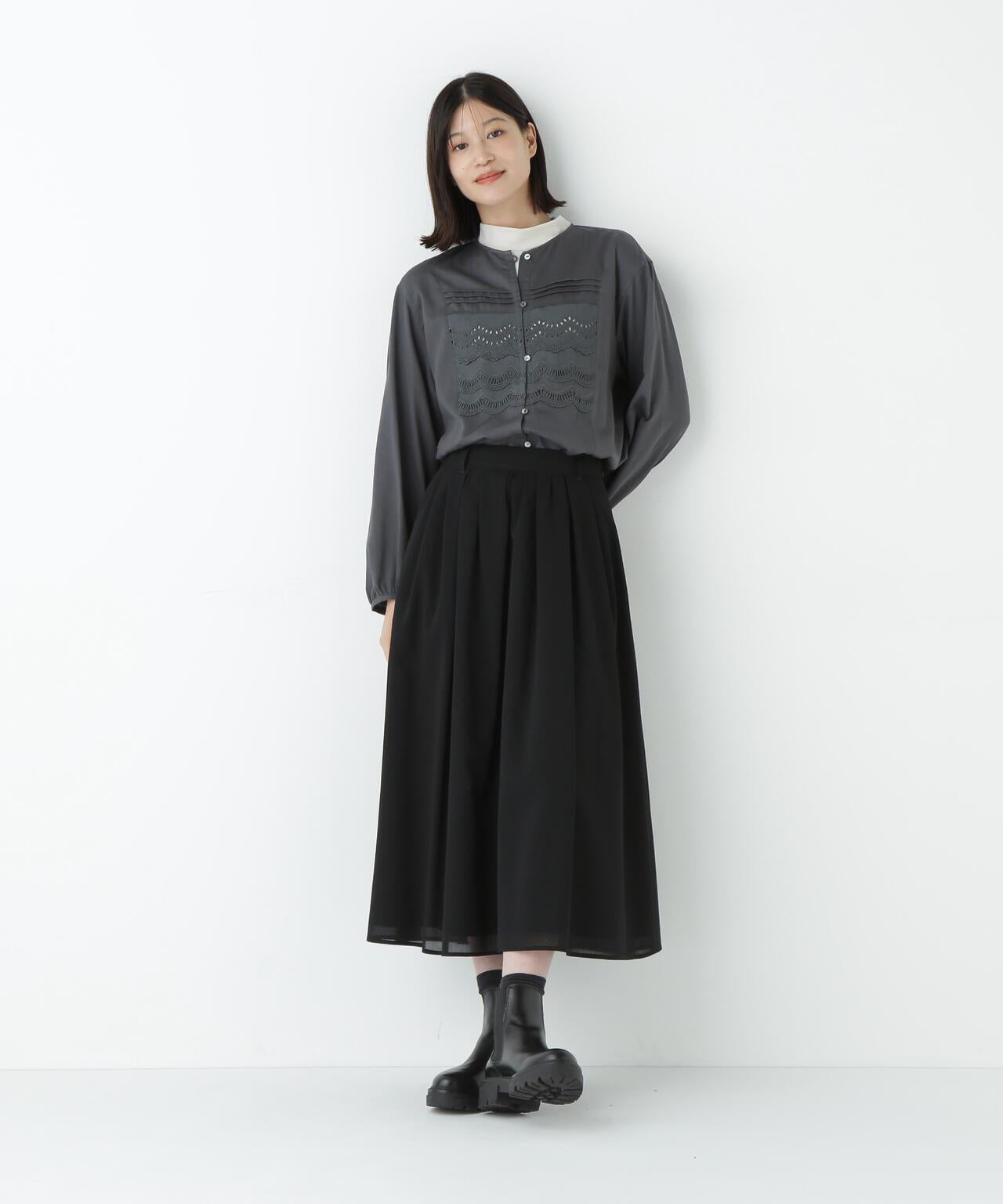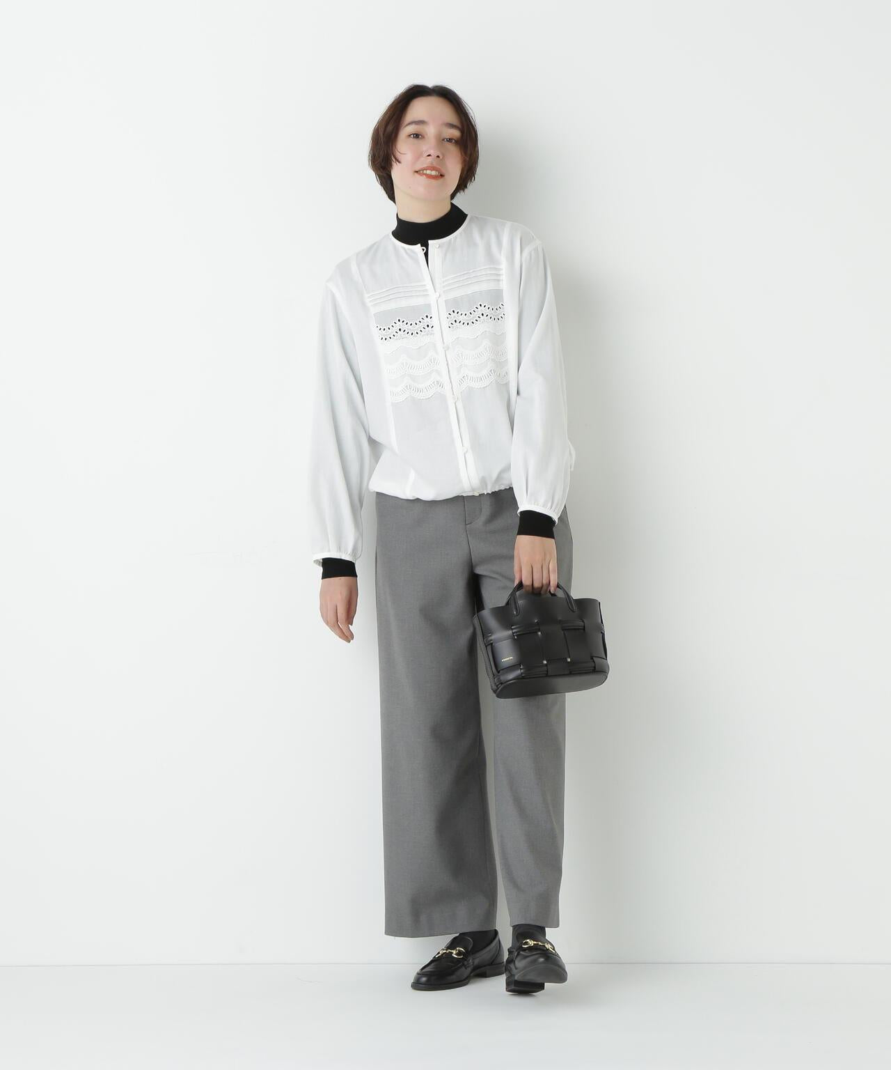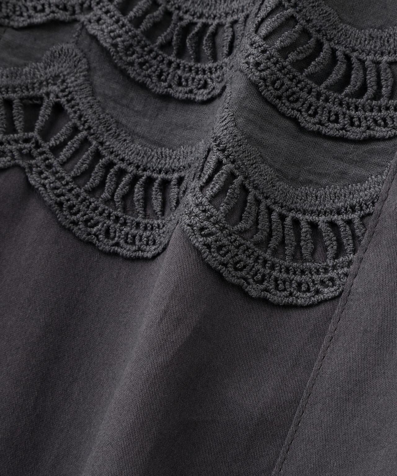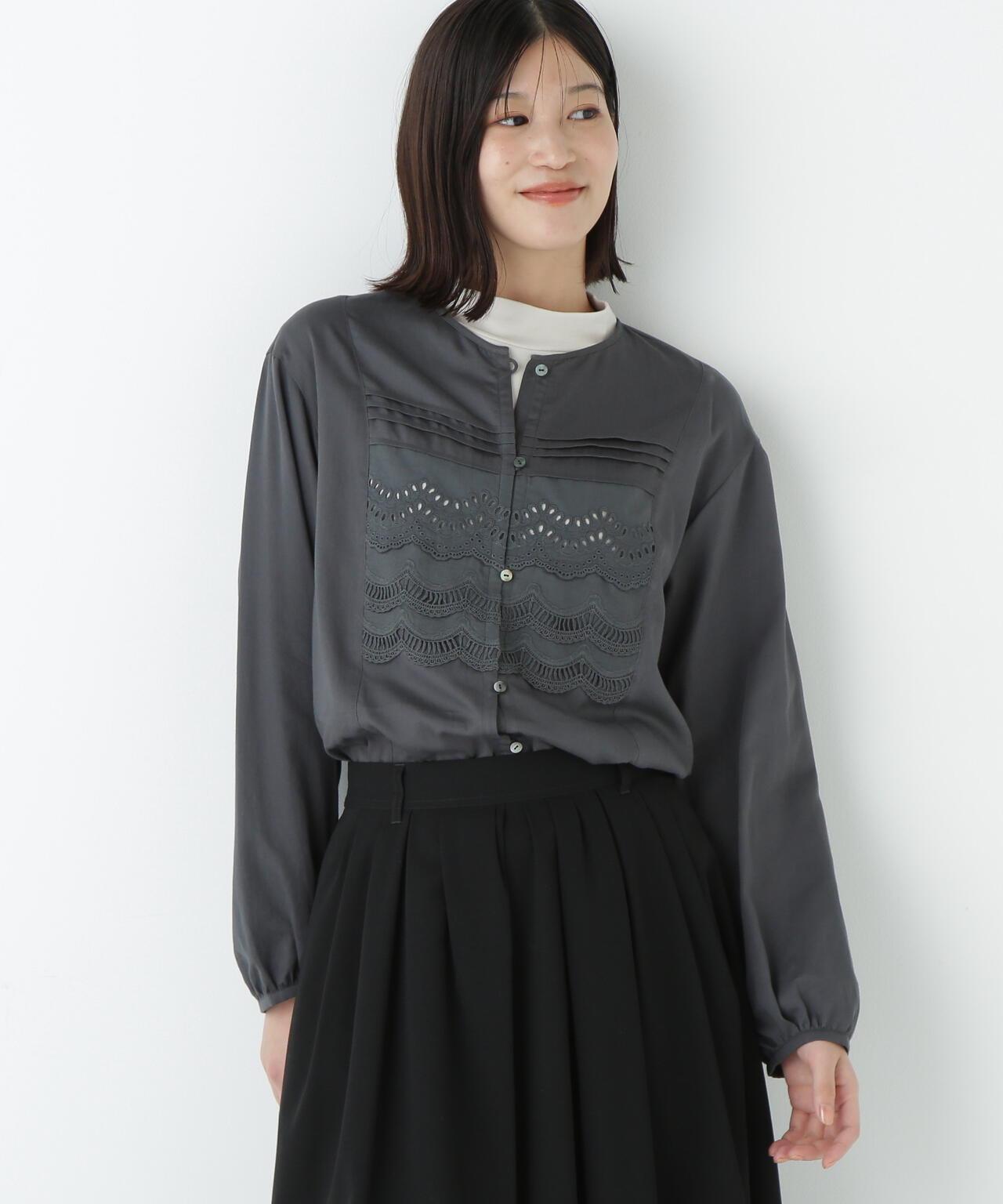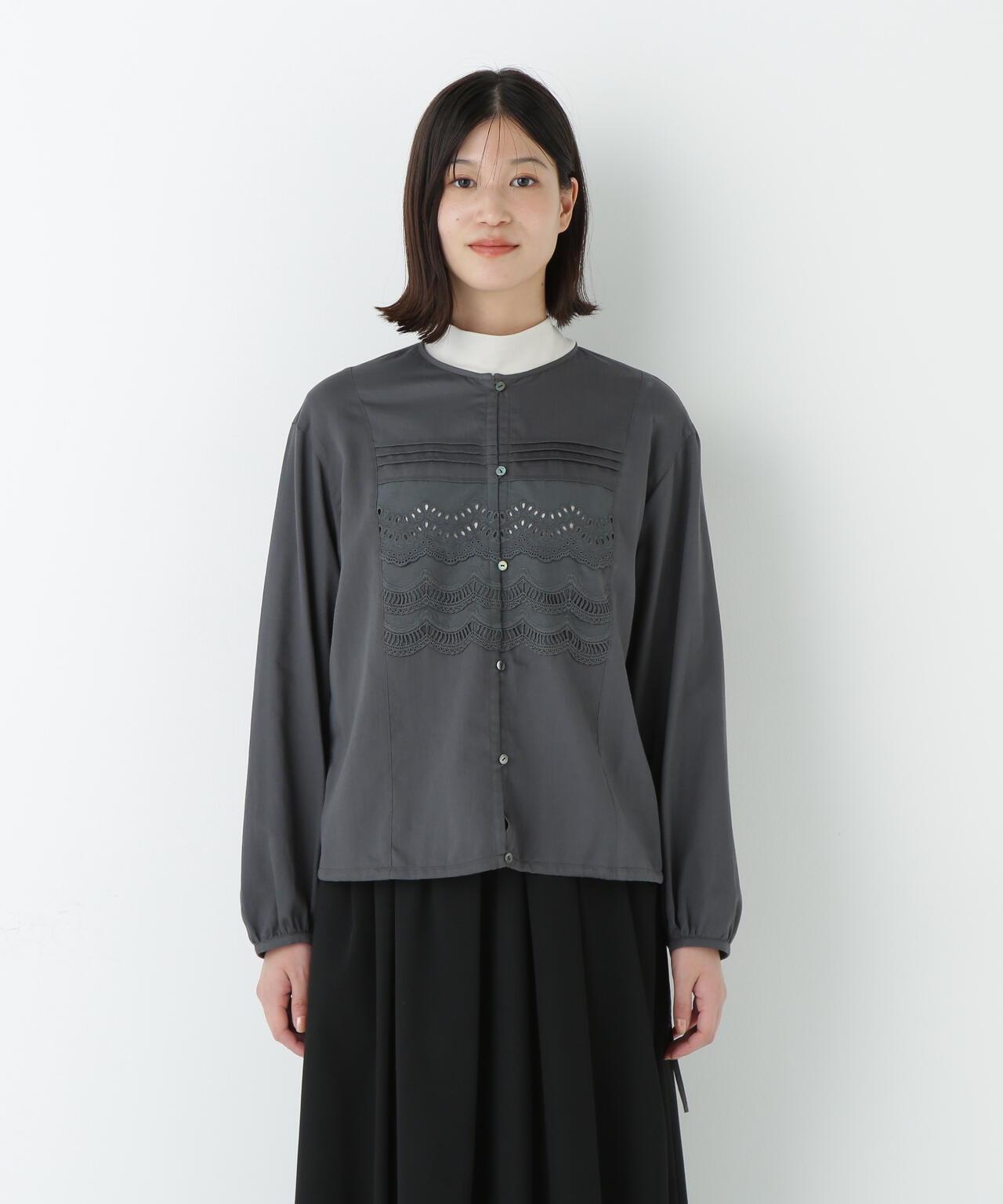 輕柔質感設計的襯衫,配以奢華的棉質蕾絲 [設計特色] 這是一款外觀華麗的襯衫,配以奢華的棉質蕾絲。襯衫下襬有抽繩設計,前襟可敞開穿著。上衣由 100% 純棉緞面製成,具有天然纖維特有的柔和質感和手感。蕾絲則採用兩種按需染色的蕾絲,盡顯奢華。推薦搭配】袖口稍寬,專為疊穿設計,是一款易於疊穿的單品。可與龜毛衫或長 T 進行疊穿,適合長季節穿著。