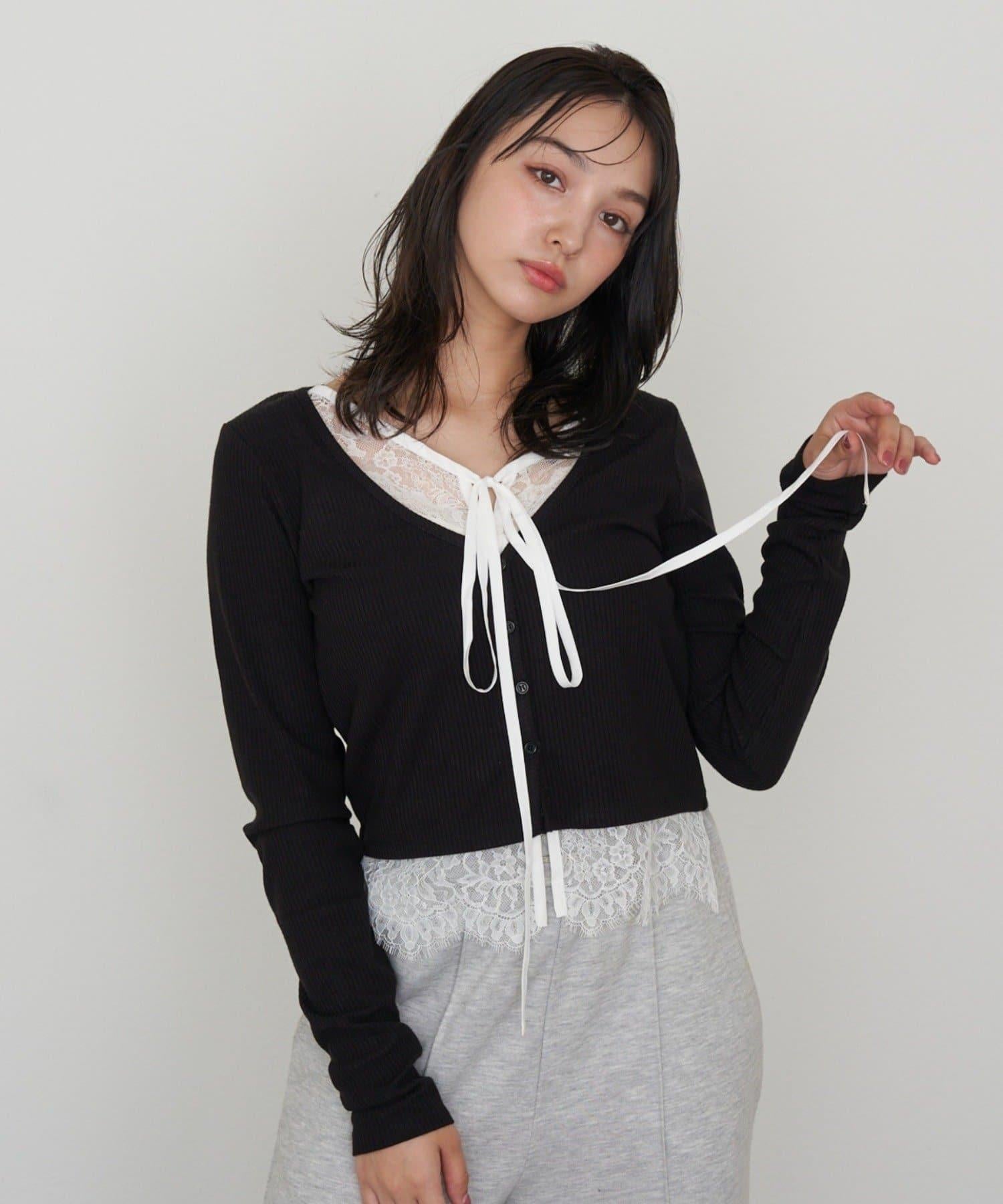 蕾絲只在前面有層次感,前面有紐扣,因此也可作為梭織裙穿著。