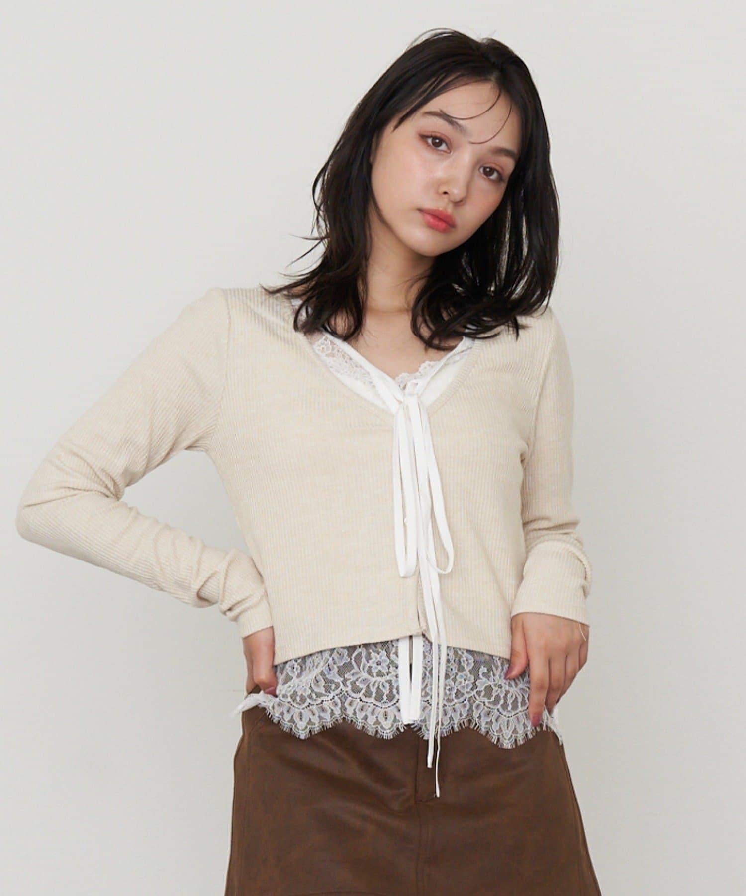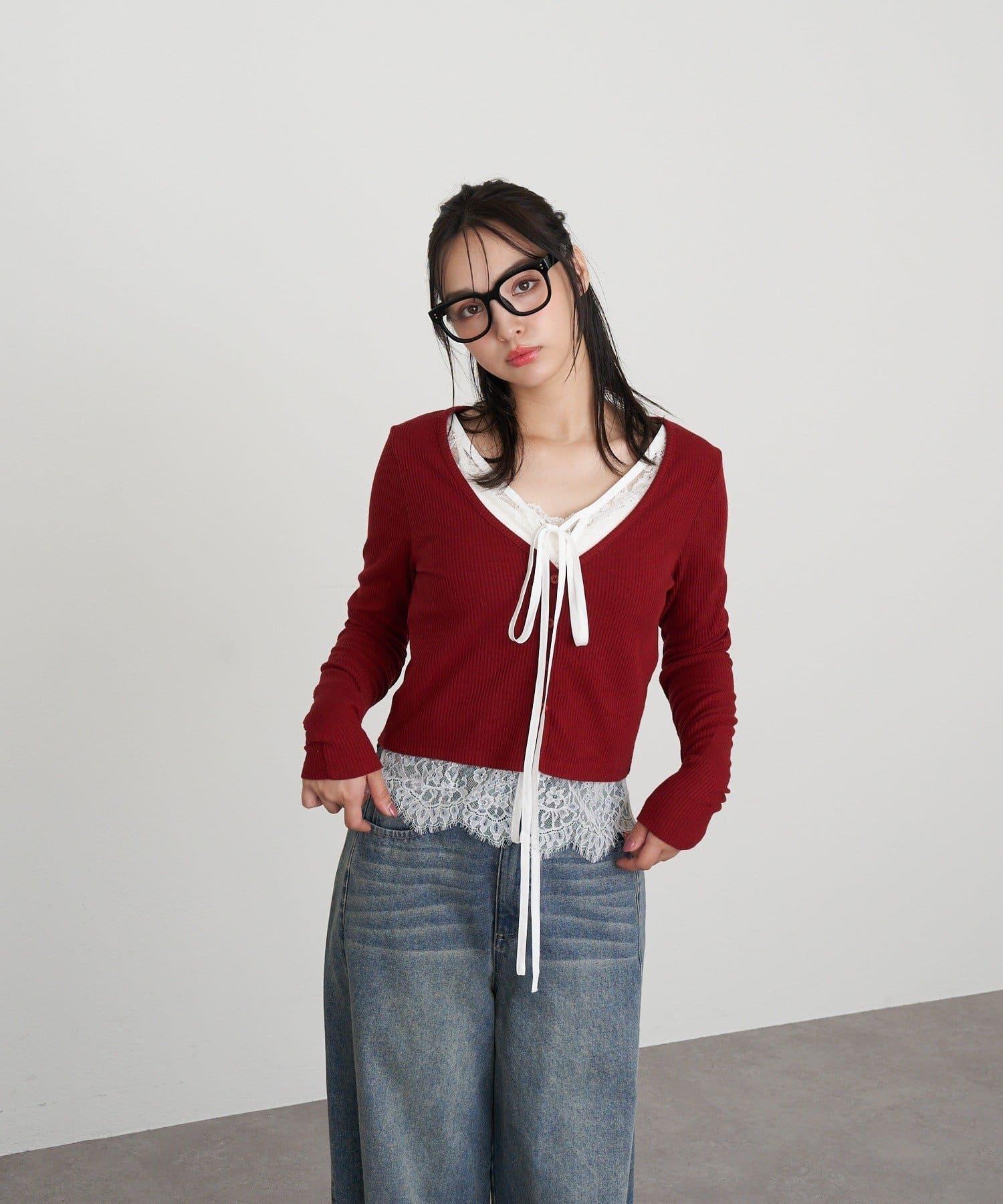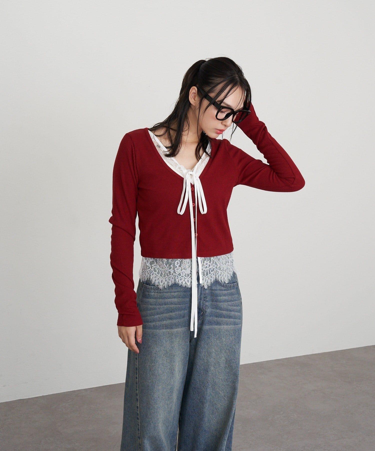 開襟羊毛衫/蕾絲/疊穿