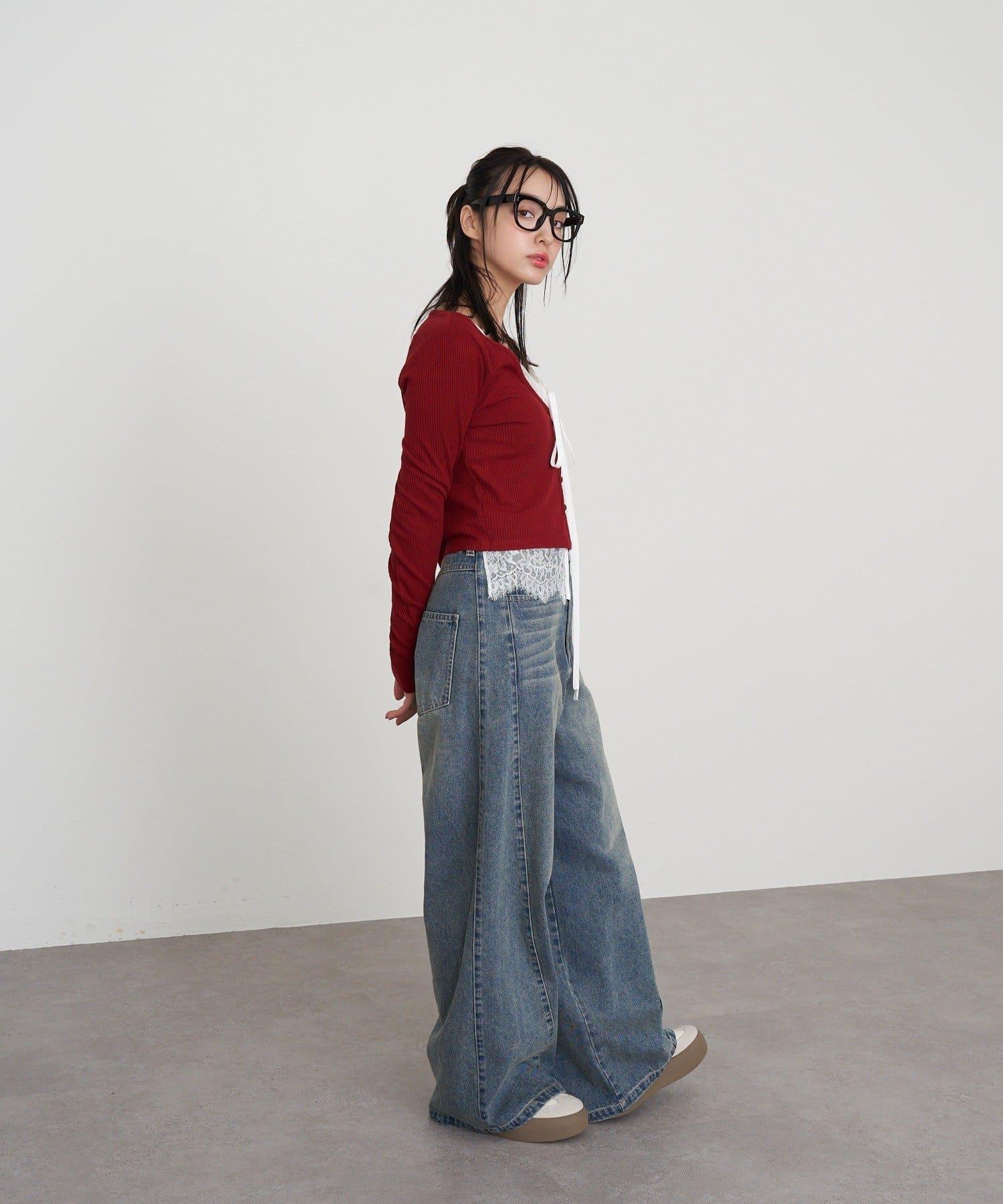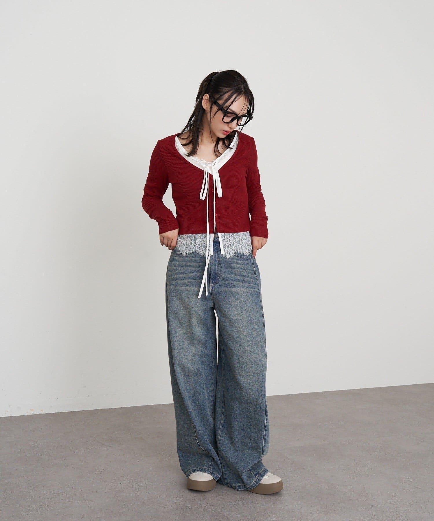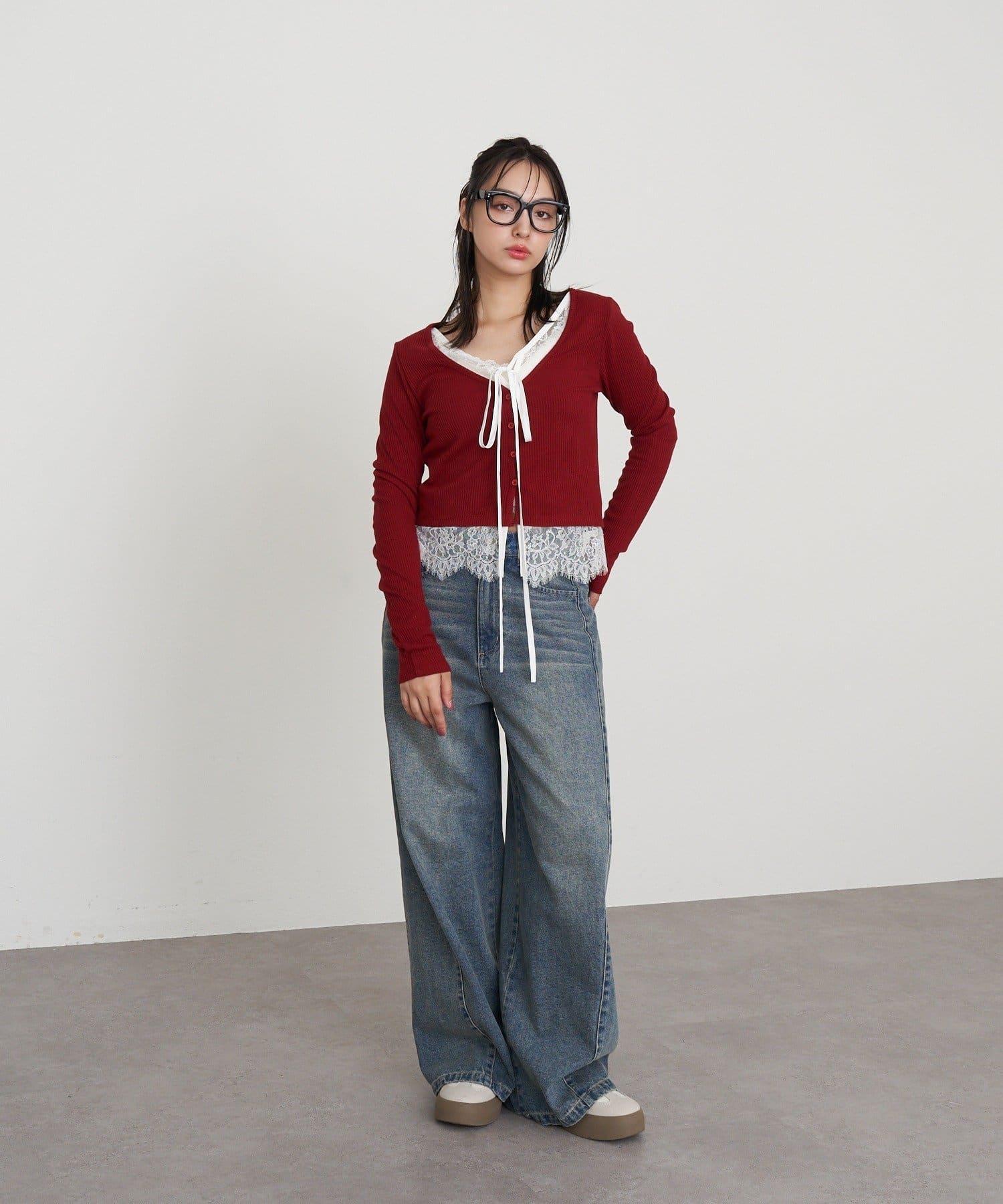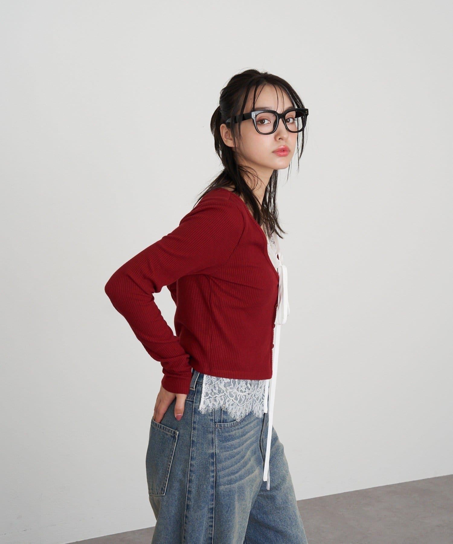 開襟羊毛衫/蕾絲/疊穿