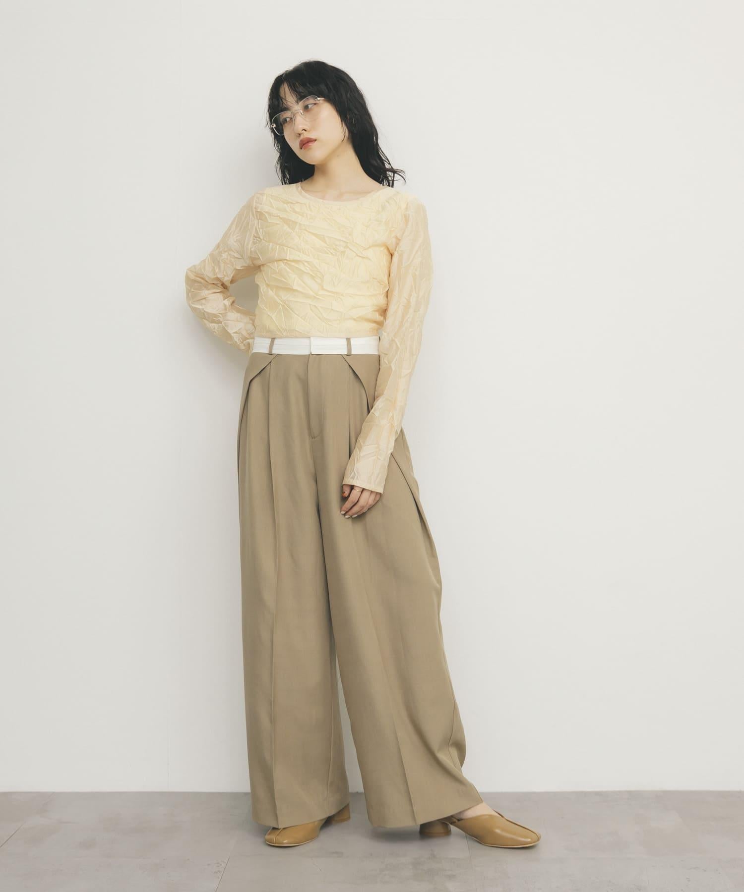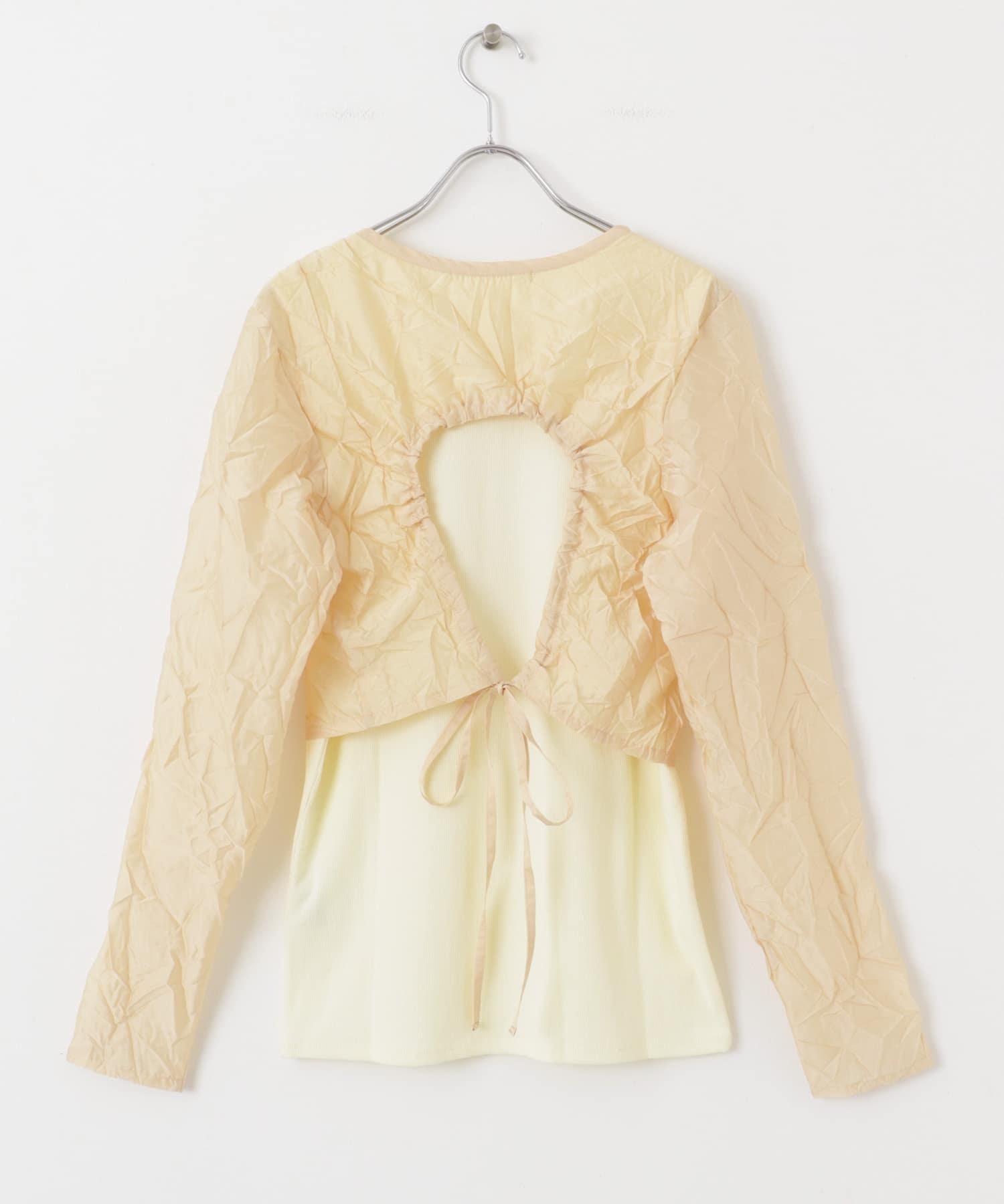 設計上衣包括一套帶墊圈的長 TEE 和一件背心。長款 TEE 透明度適中,背部有獨特的破洞設計。這款單品只需搭配基本款下裝,就能提升你的氣場。