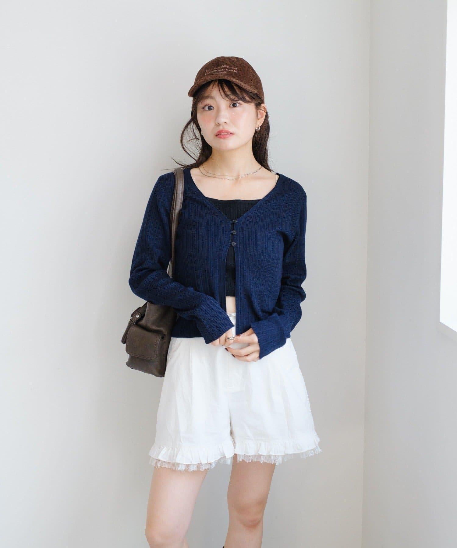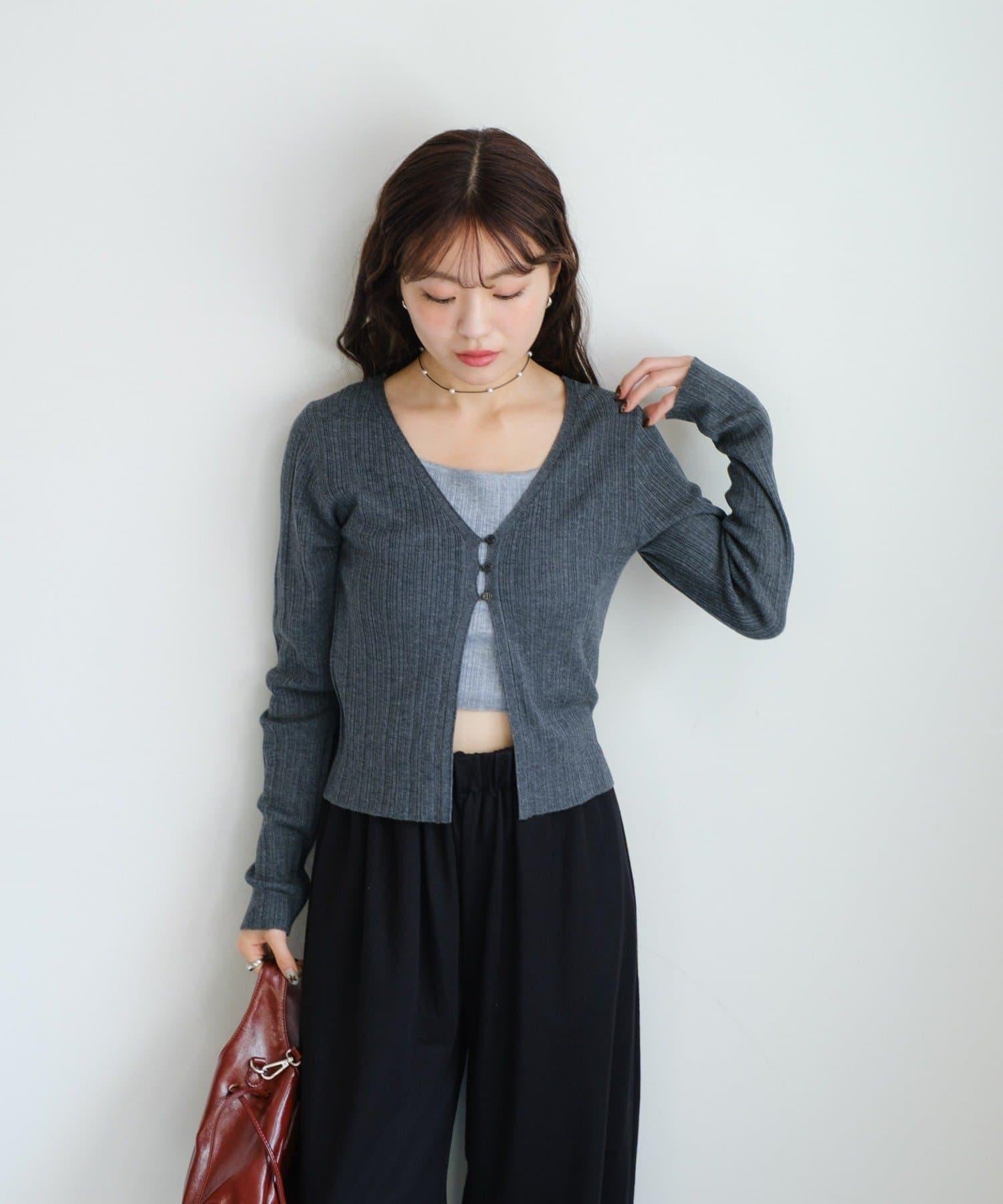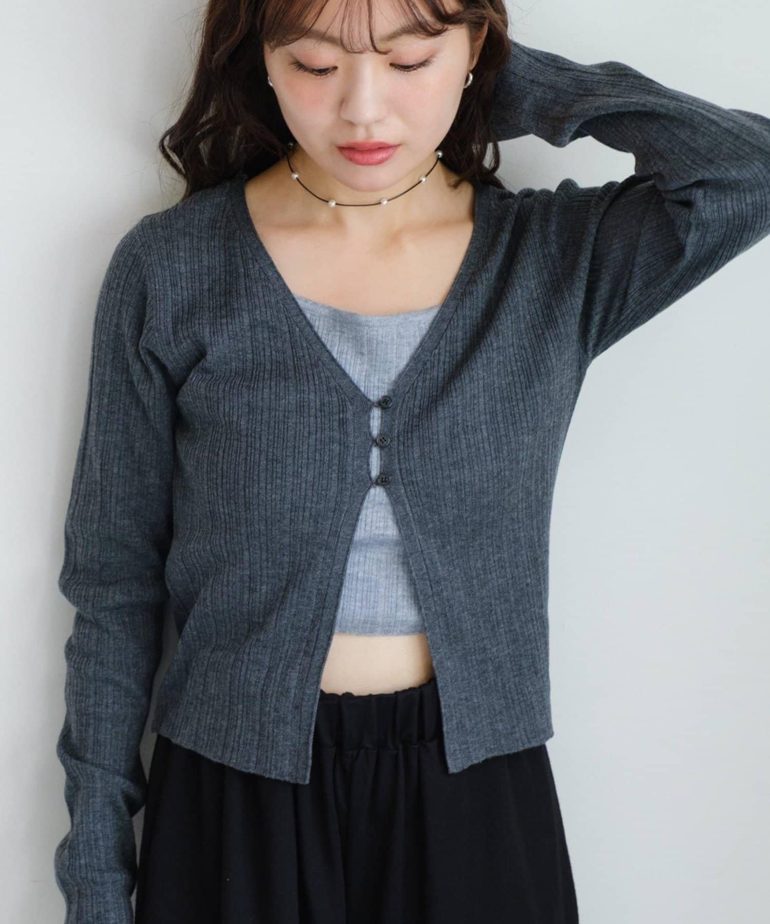 V 領針織開衫,採用多層次設計。