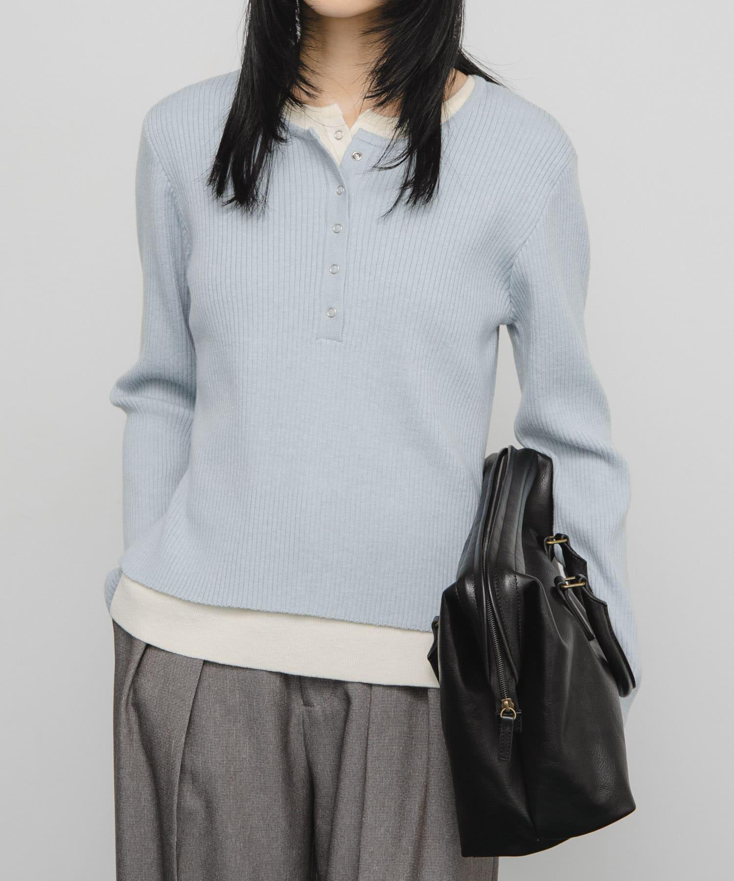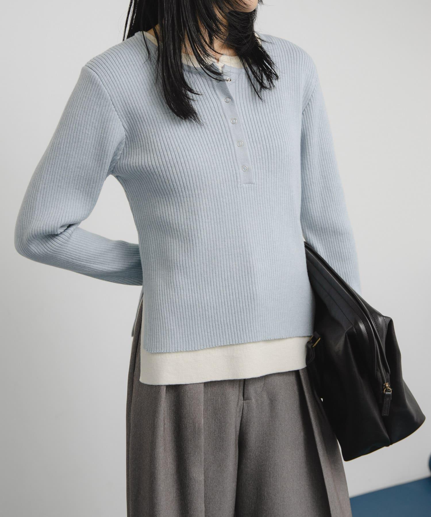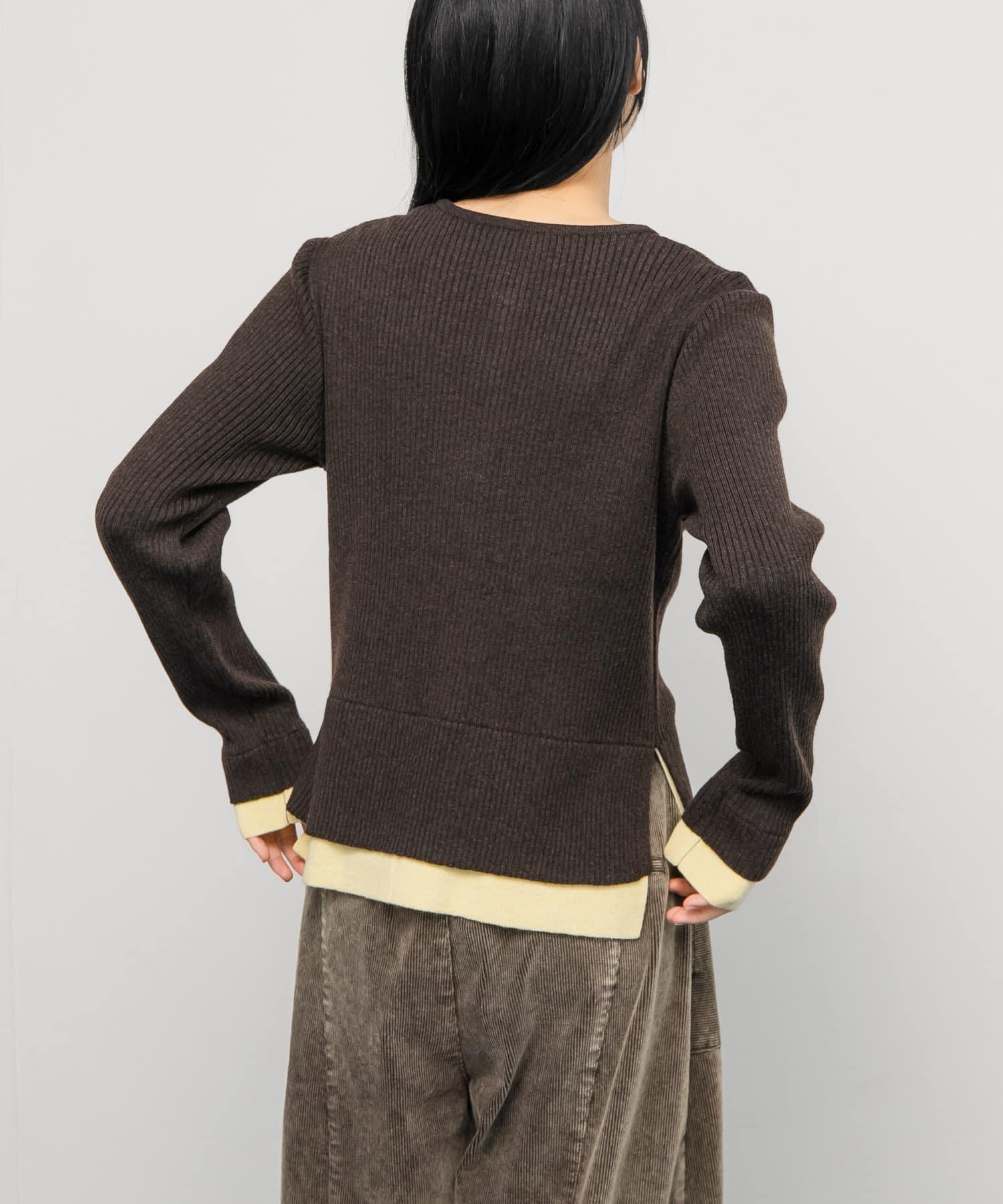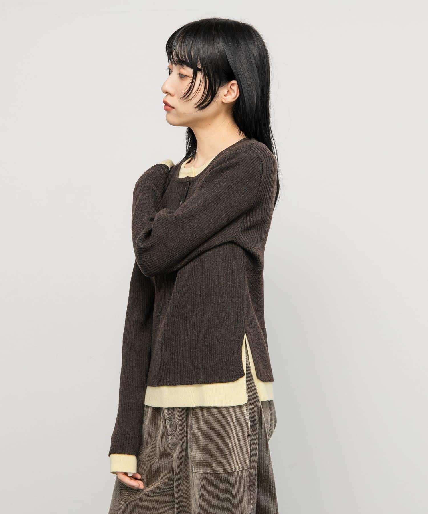 這款雞心領針織衫採用羅紋針織下襬,下襬處有一塊平針織物重疊在一起,正面由兩塊針織物組成,看上去層次感十足。它採用輕質面料,不會顯得臃腫,寬度適中,可作為連身裙的內搭。閃亮的配色增添了點睛之筆,因此搭配基本款下裝也很好看。