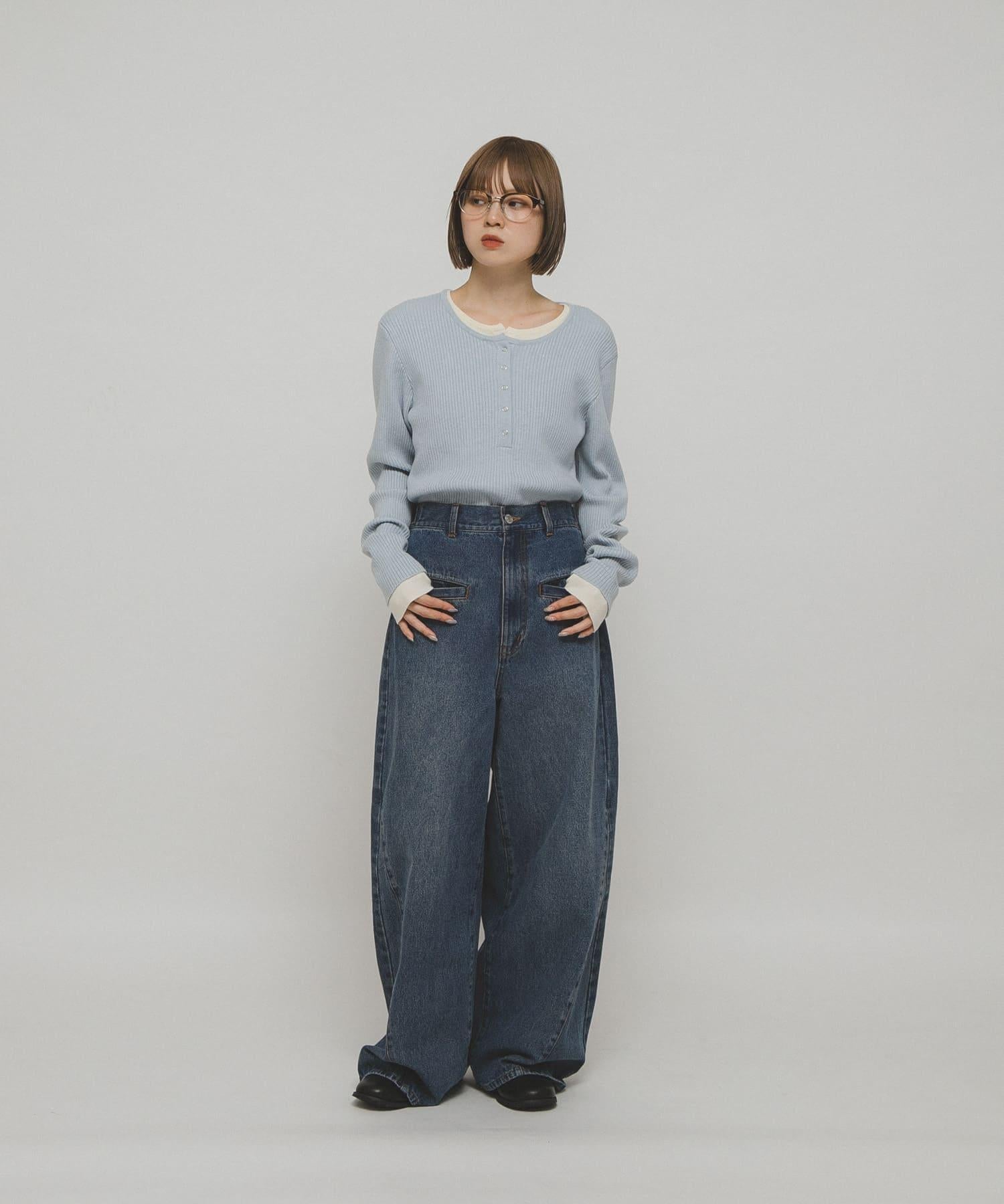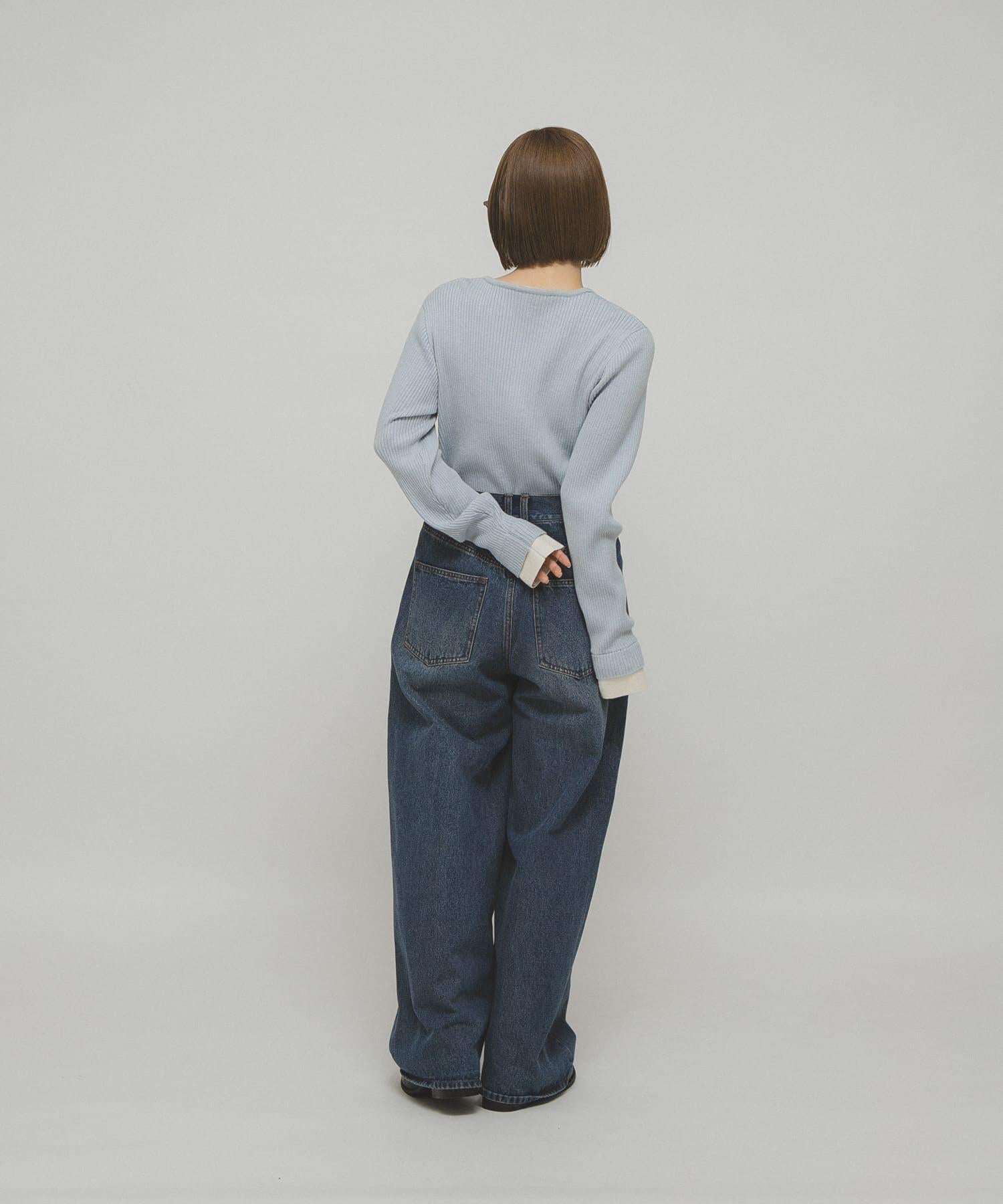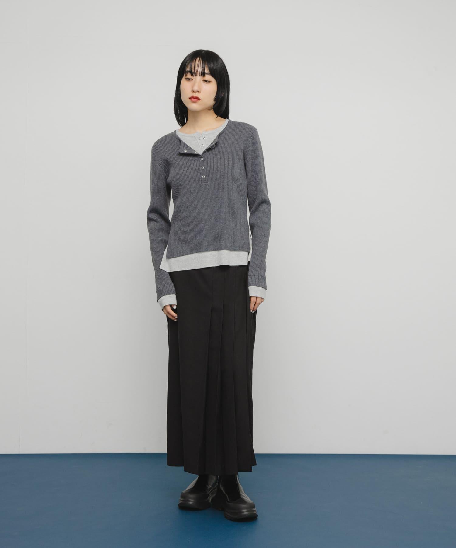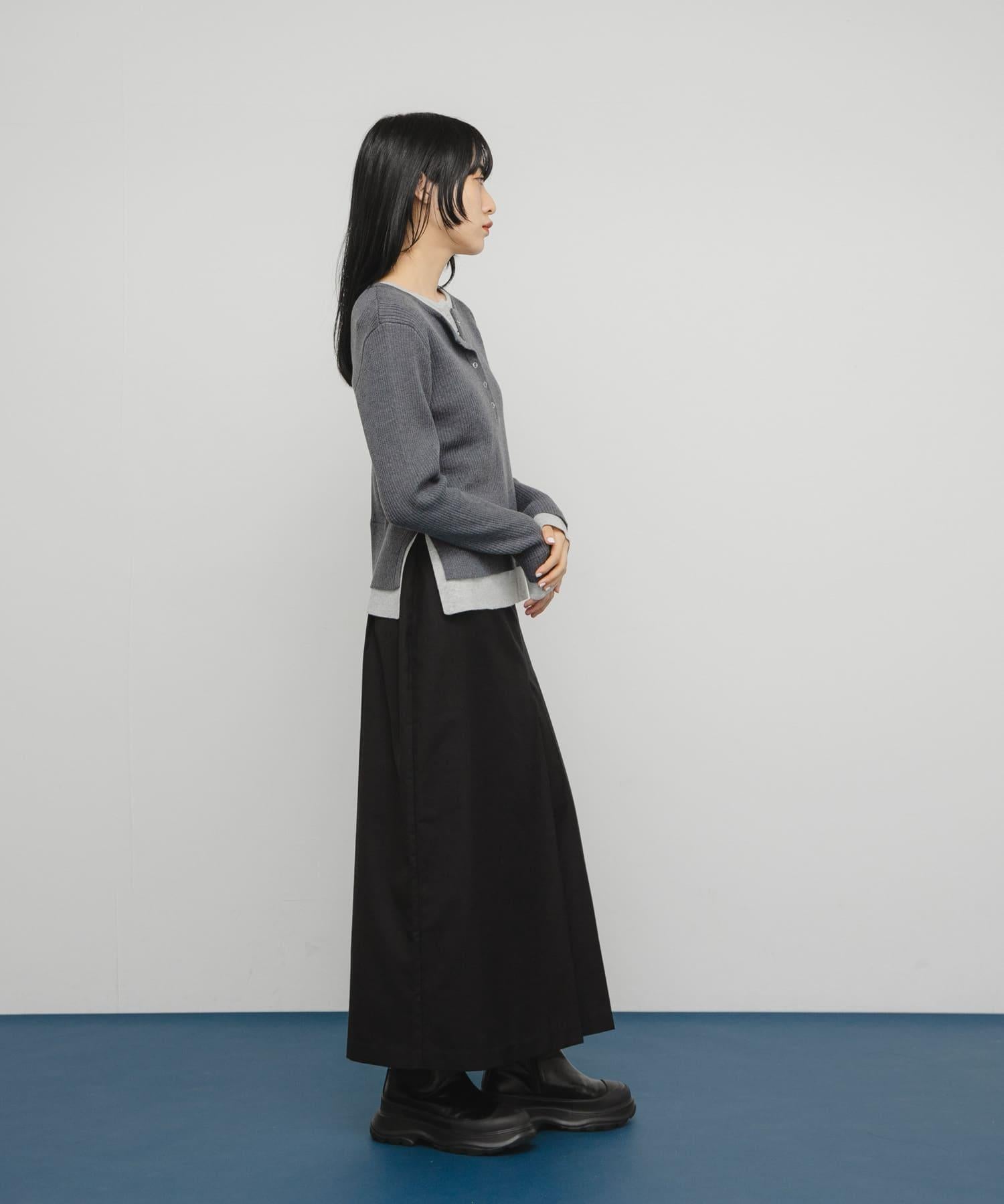 這款雞心領針織衫採用羅紋針織下襬,下襬處有一塊平針織物重疊在一起,正面由兩塊針織物組成,看上去層次感十足。它採用輕質面料,不會顯得臃腫,寬度適中,可作為連身裙的內搭。閃亮的配色增添了點睛之筆,因此搭配基本款下裝也很好看。