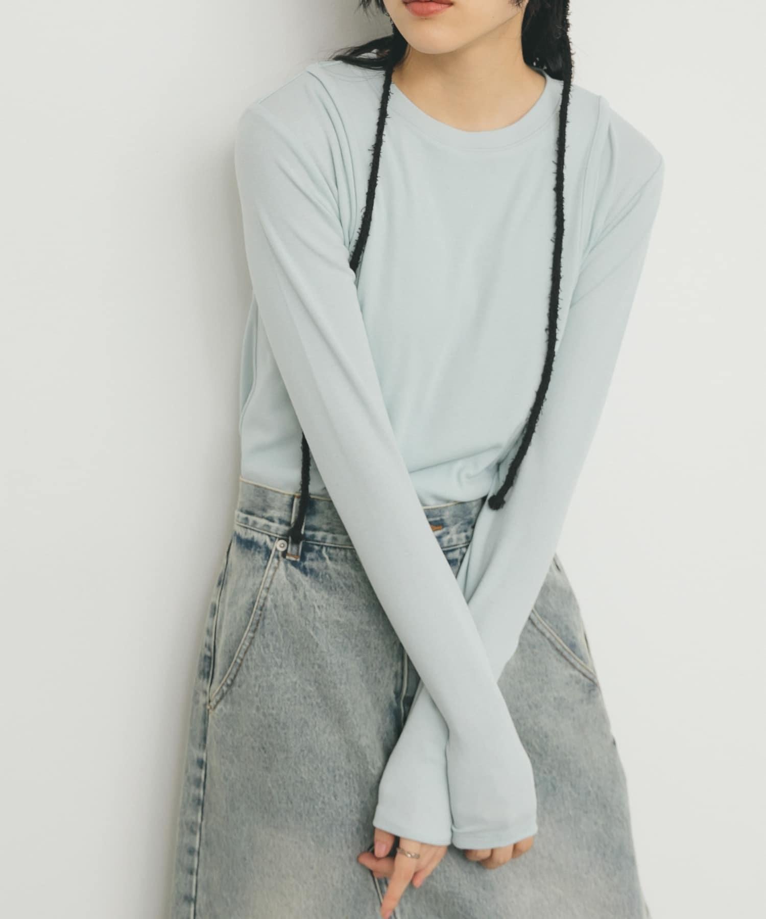 由於它是一件小巧的上衣,因此可以與體積較大的單品搭配。可搭配牛仔褲和軍褲等休閒單品。也適合作為外套的內搭。