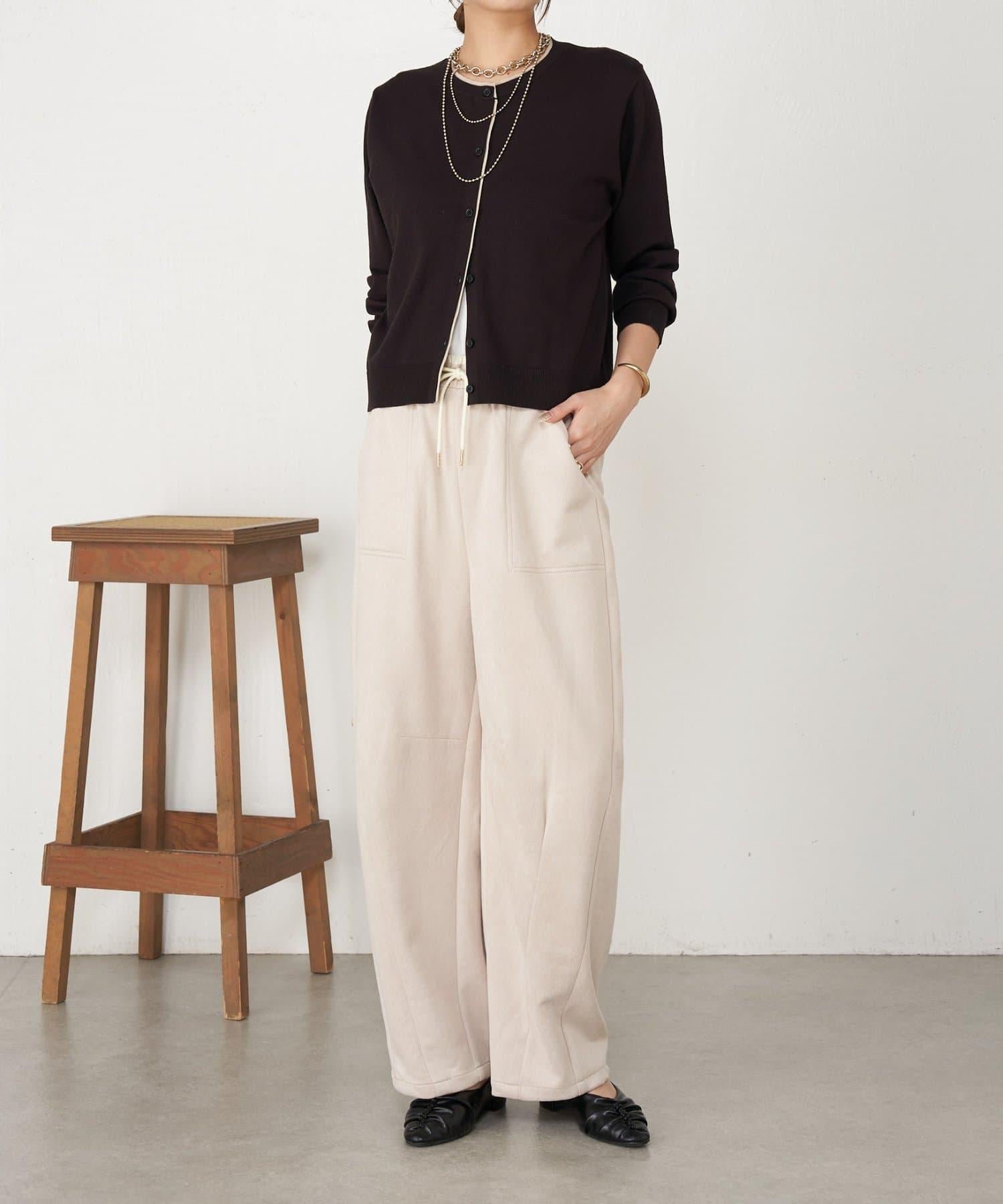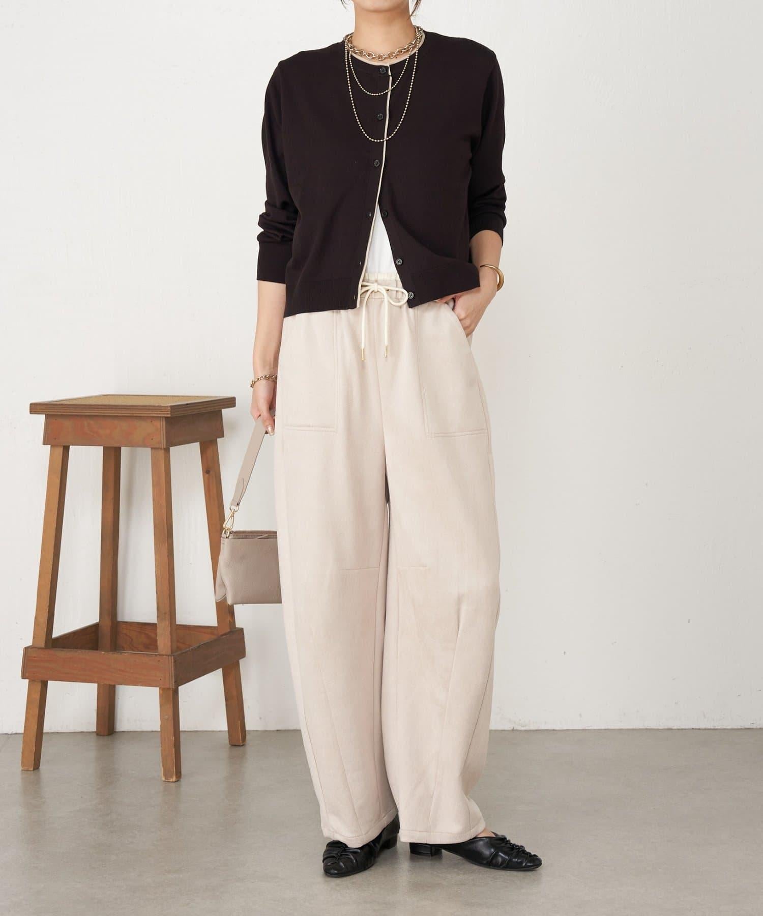 弧形剪裁在雙腿之間形成微妙的縫隙,營造出時尚的外觀。